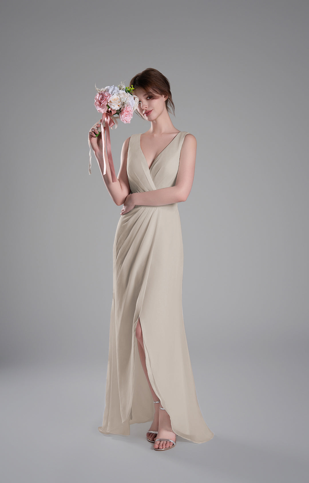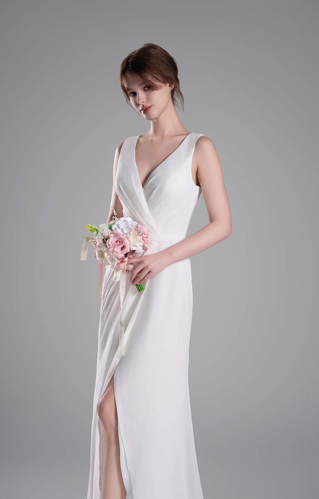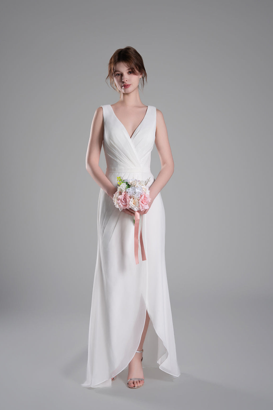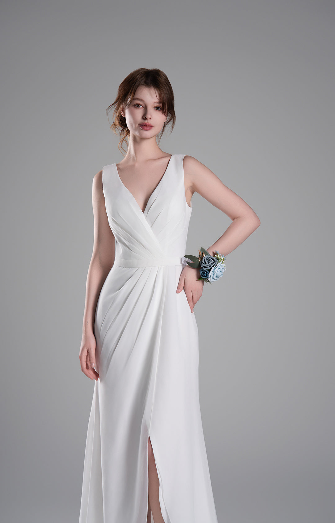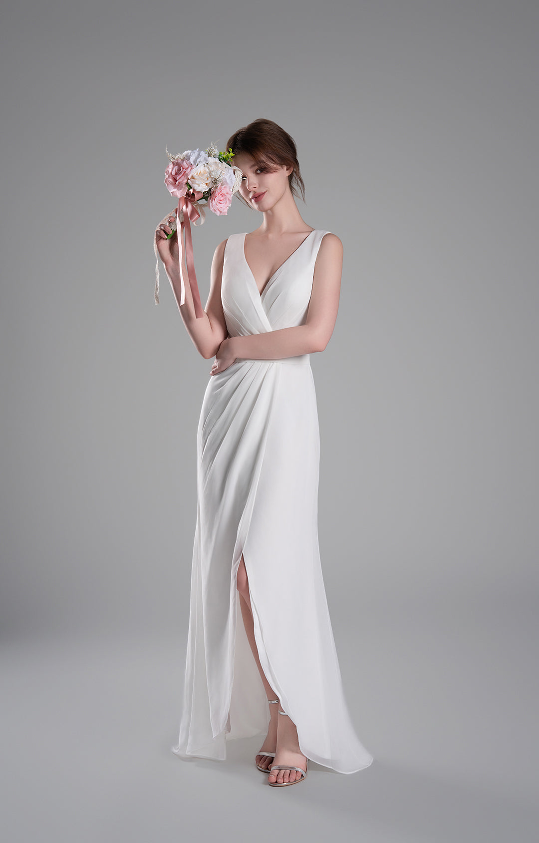 Ideal for weddings, bridal events, formal soirées, bridesmaids, and romantic celebrations, this chiffon gown exudes effortless sophistication. Whether walking down the aisle or attending an elegant evening affair, this dress ensures a timeless and graceful presence.
