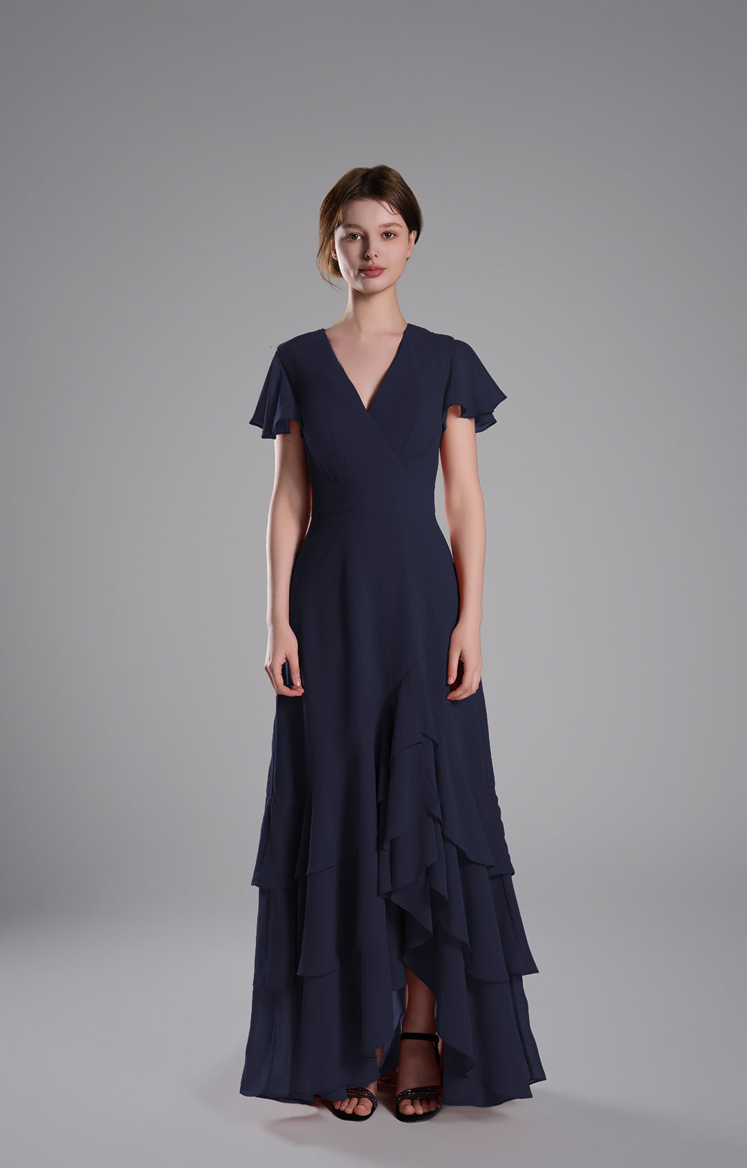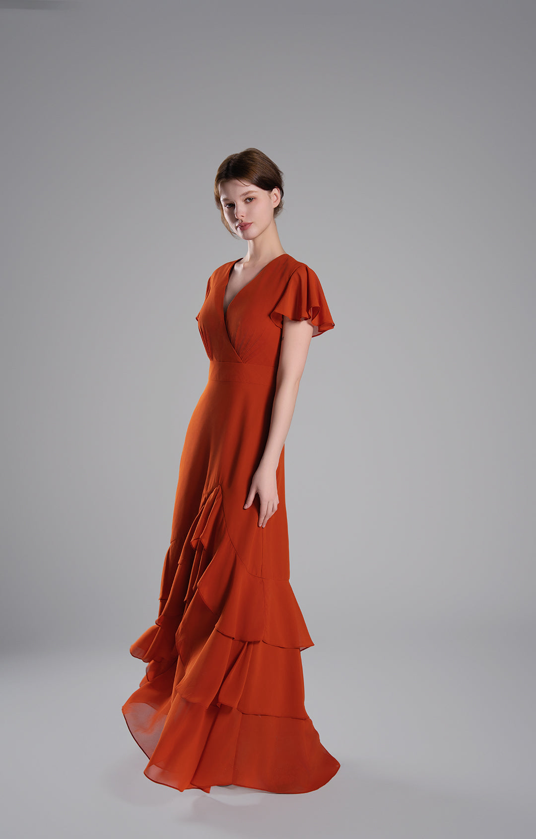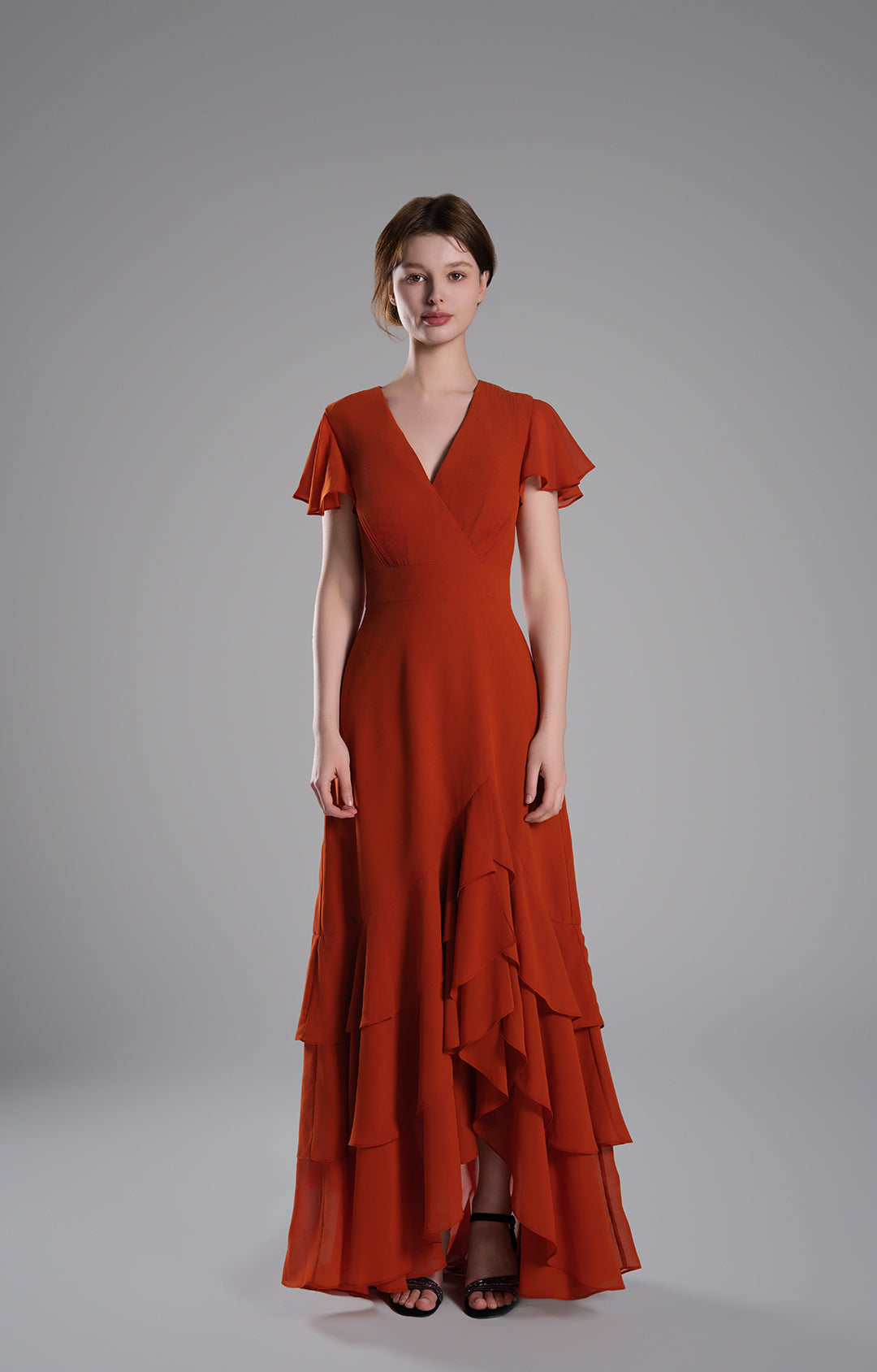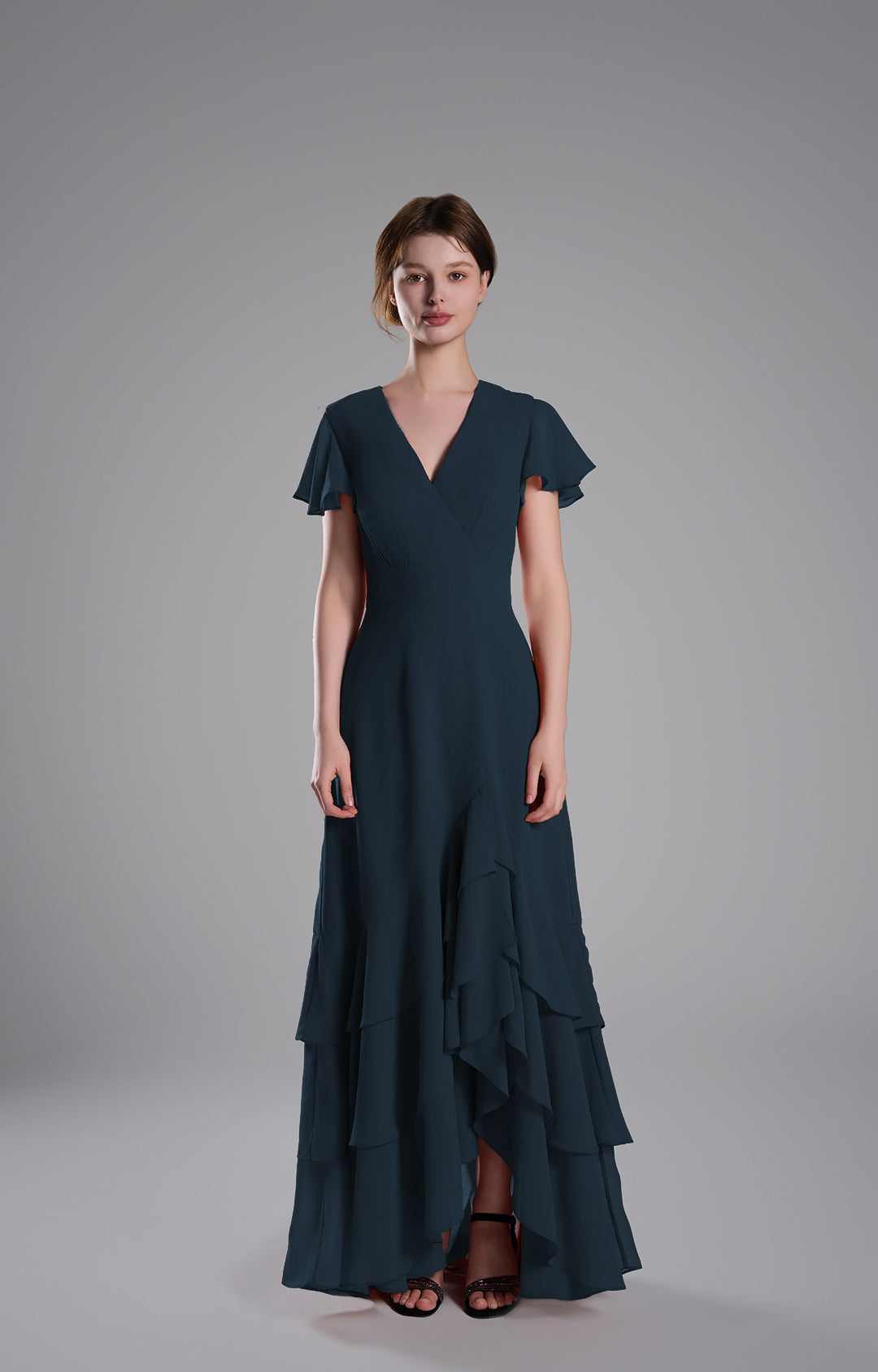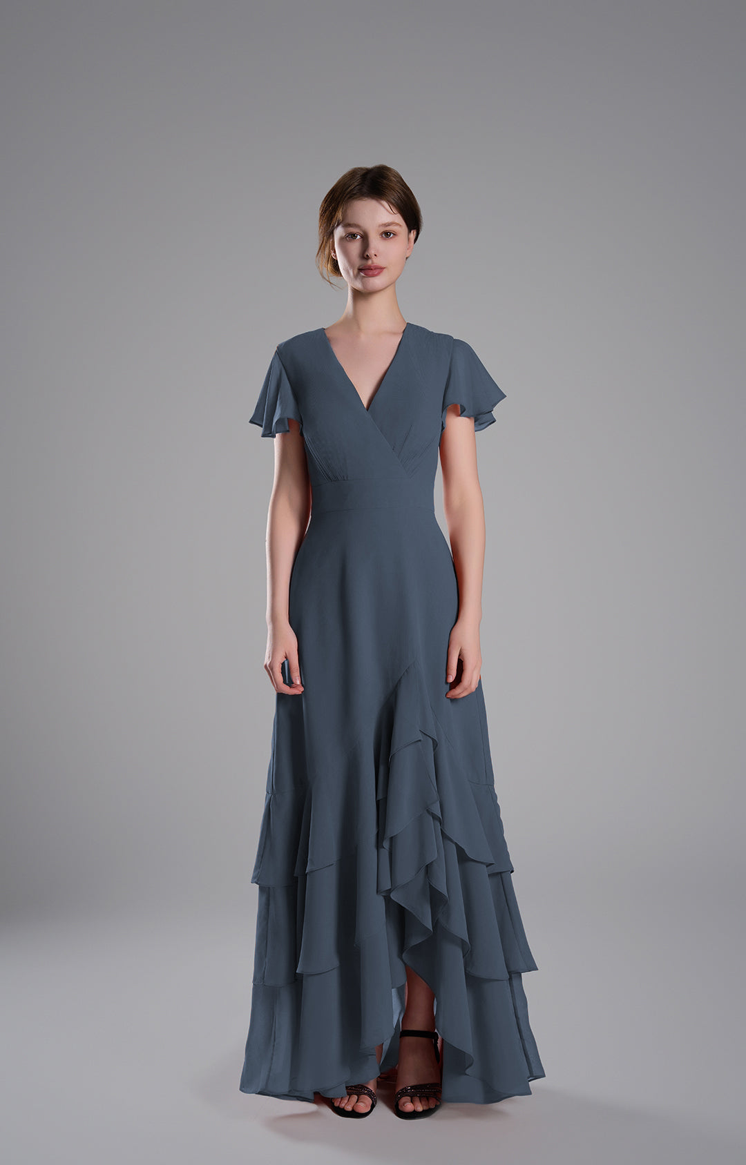 This chiffon gown is ideal for weddings, garden parties, evening events, and summer celebrations.