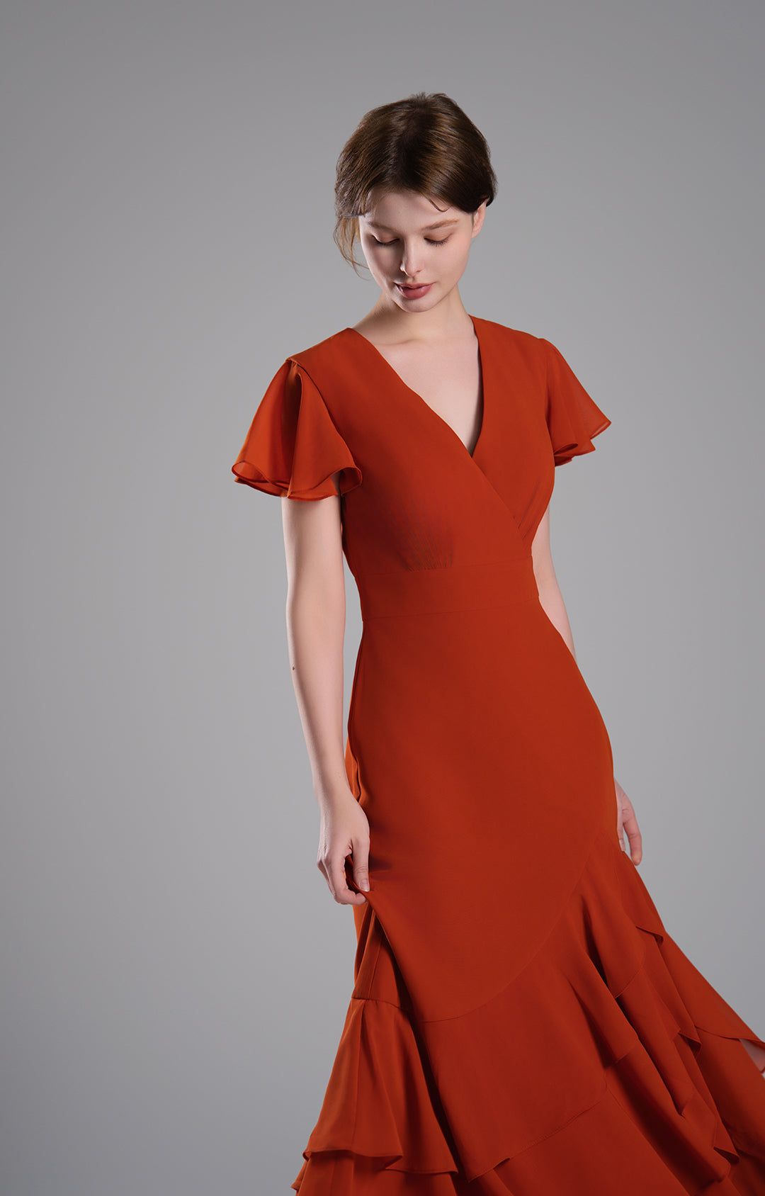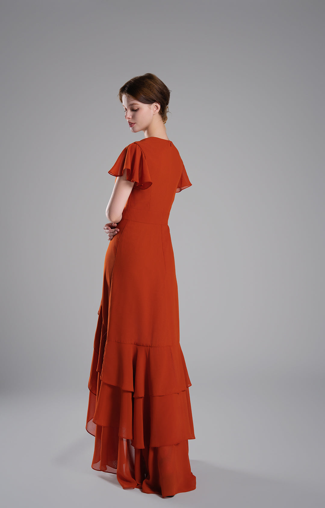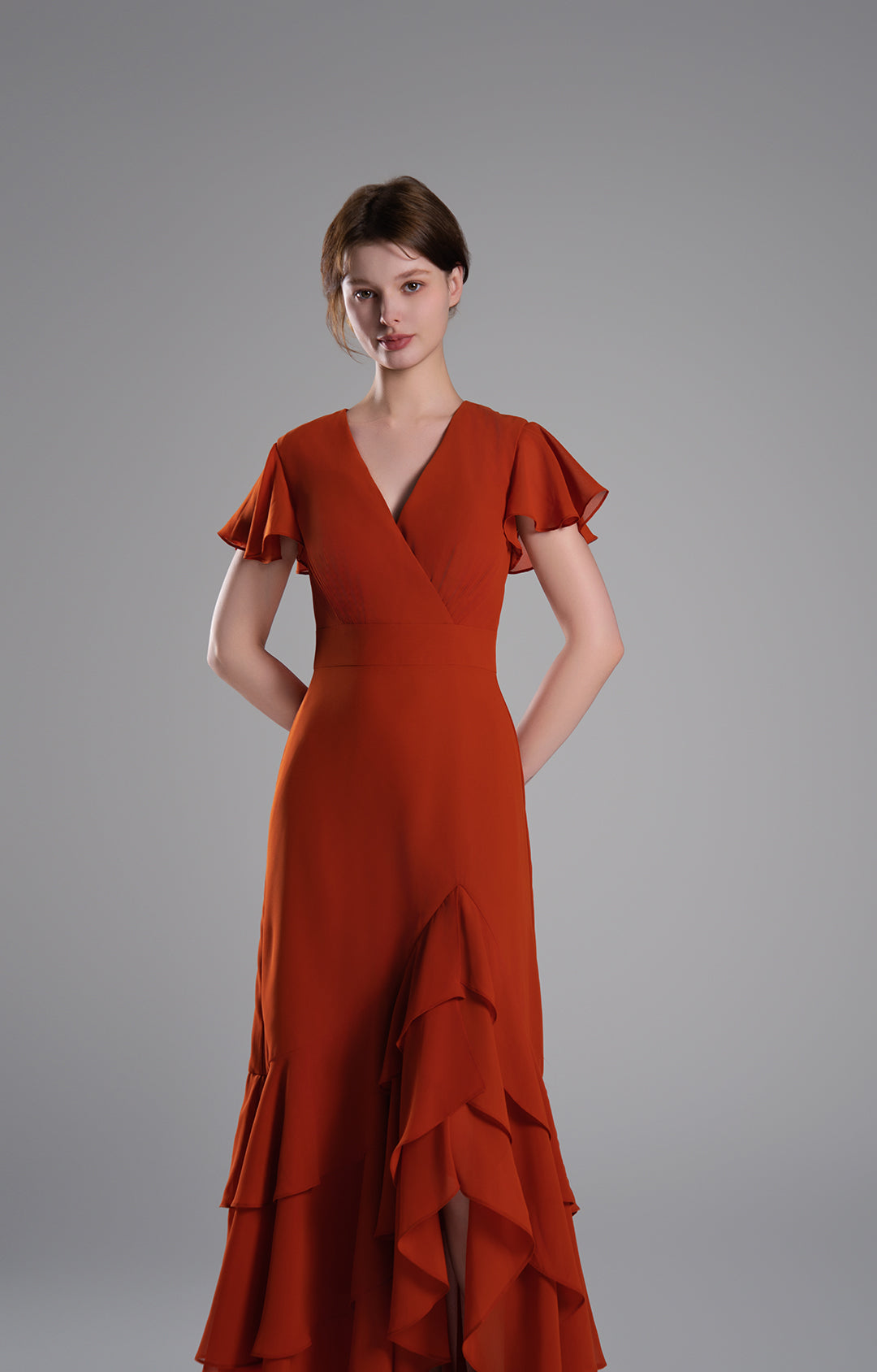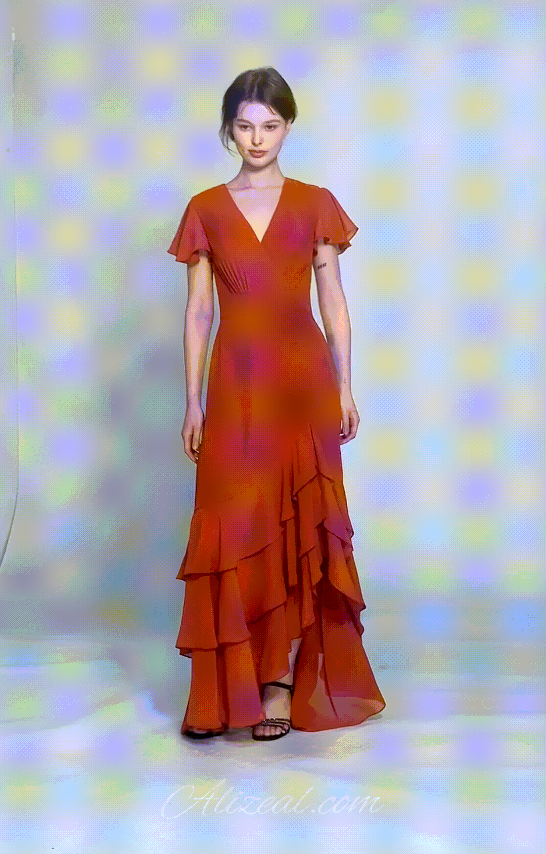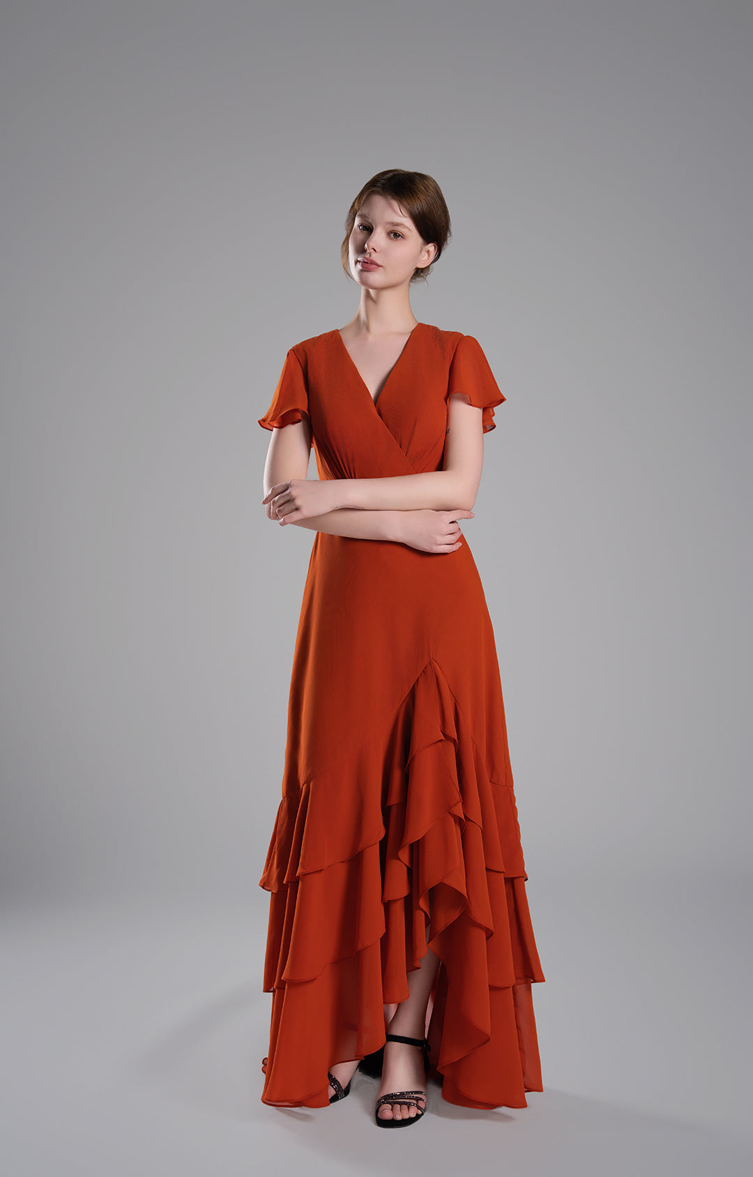 This chiffon gown is ideal for weddings, garden parties, evening events, and summer celebrations.