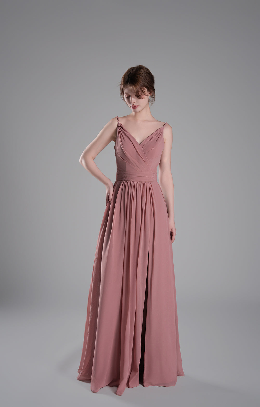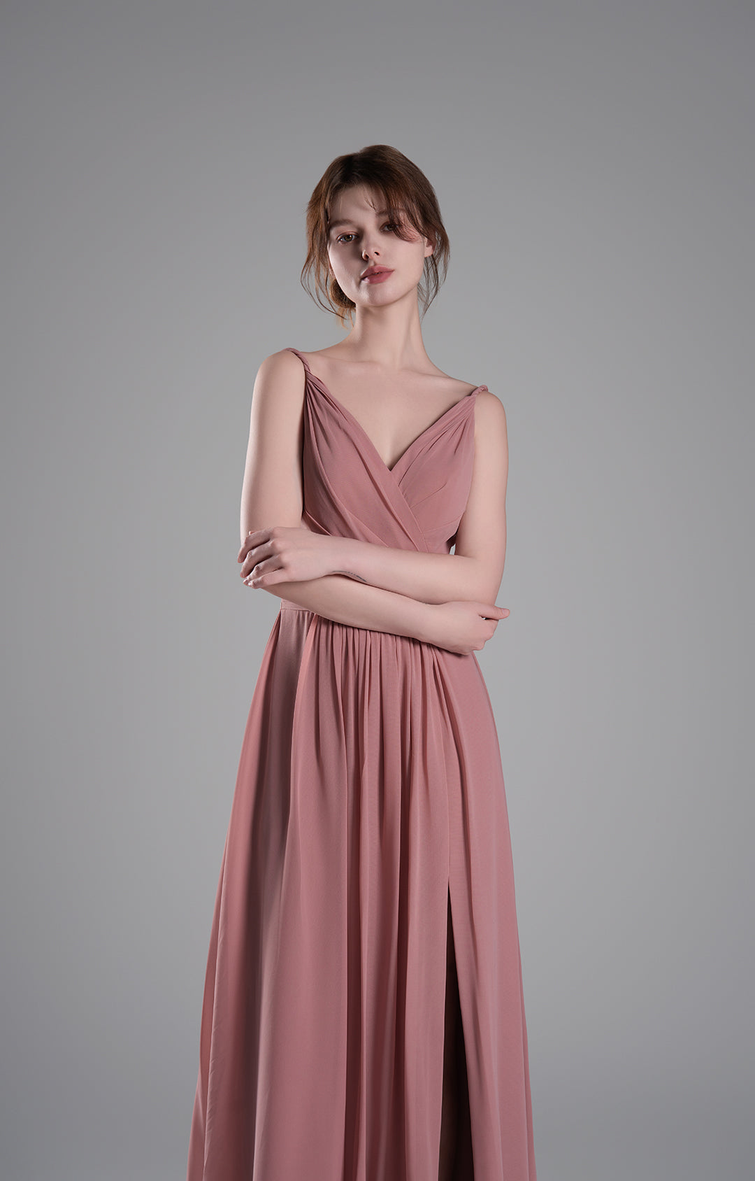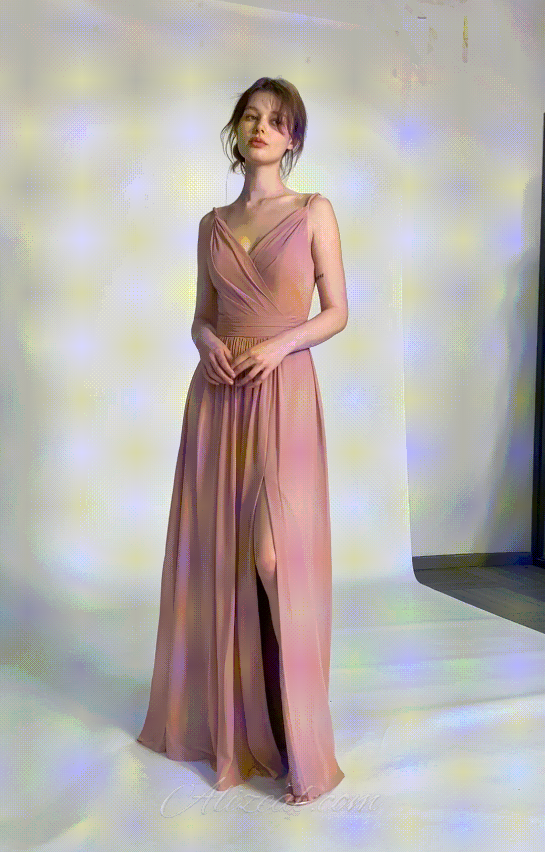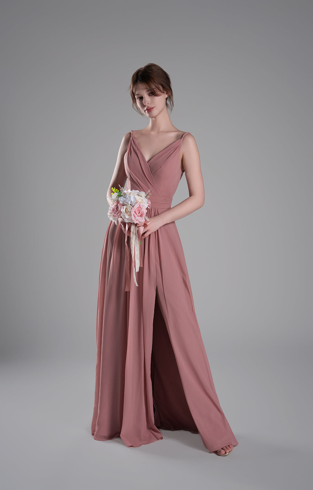 V-Neck Pleated Split A-Line Bridesmaid Dresses