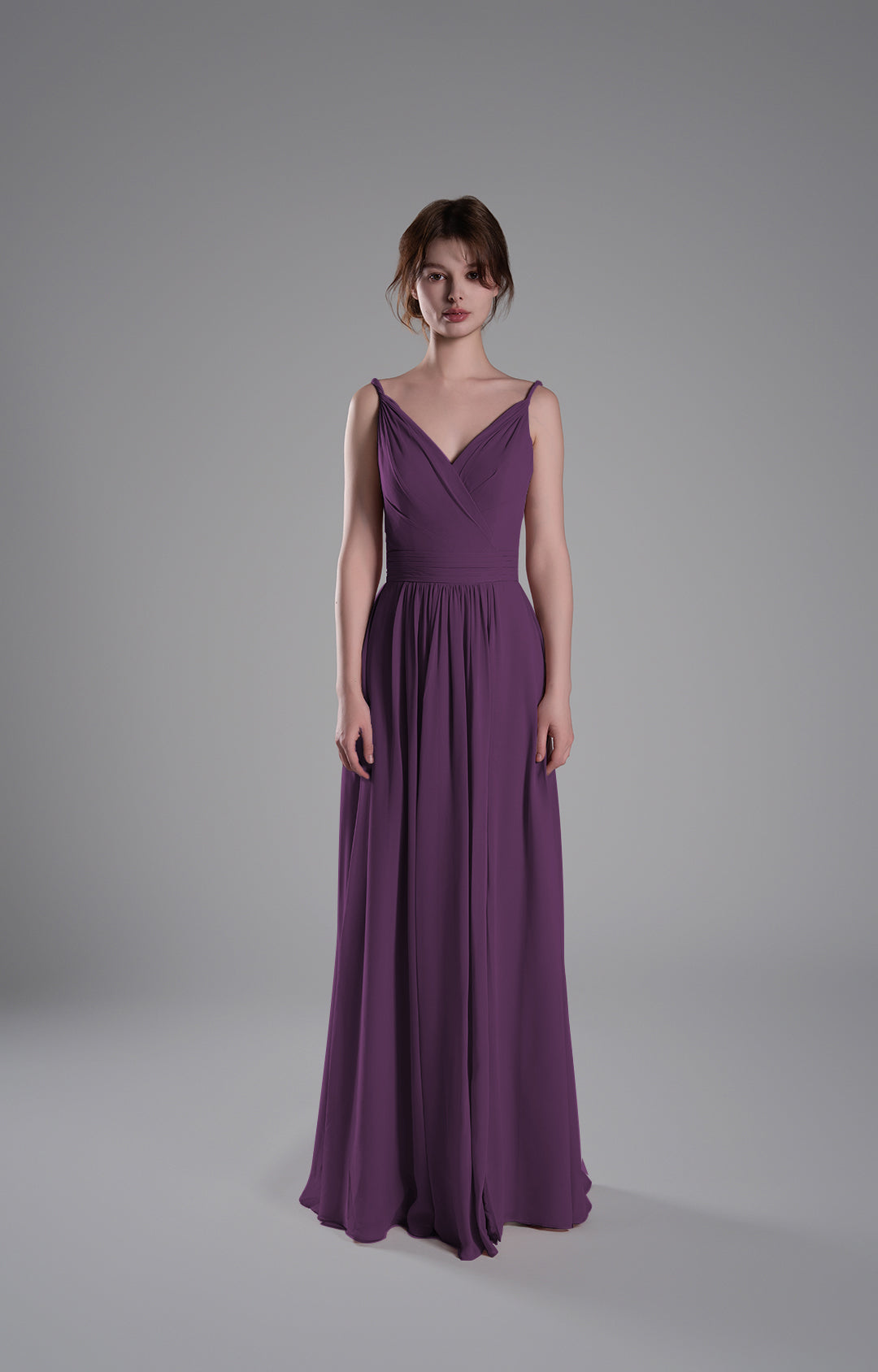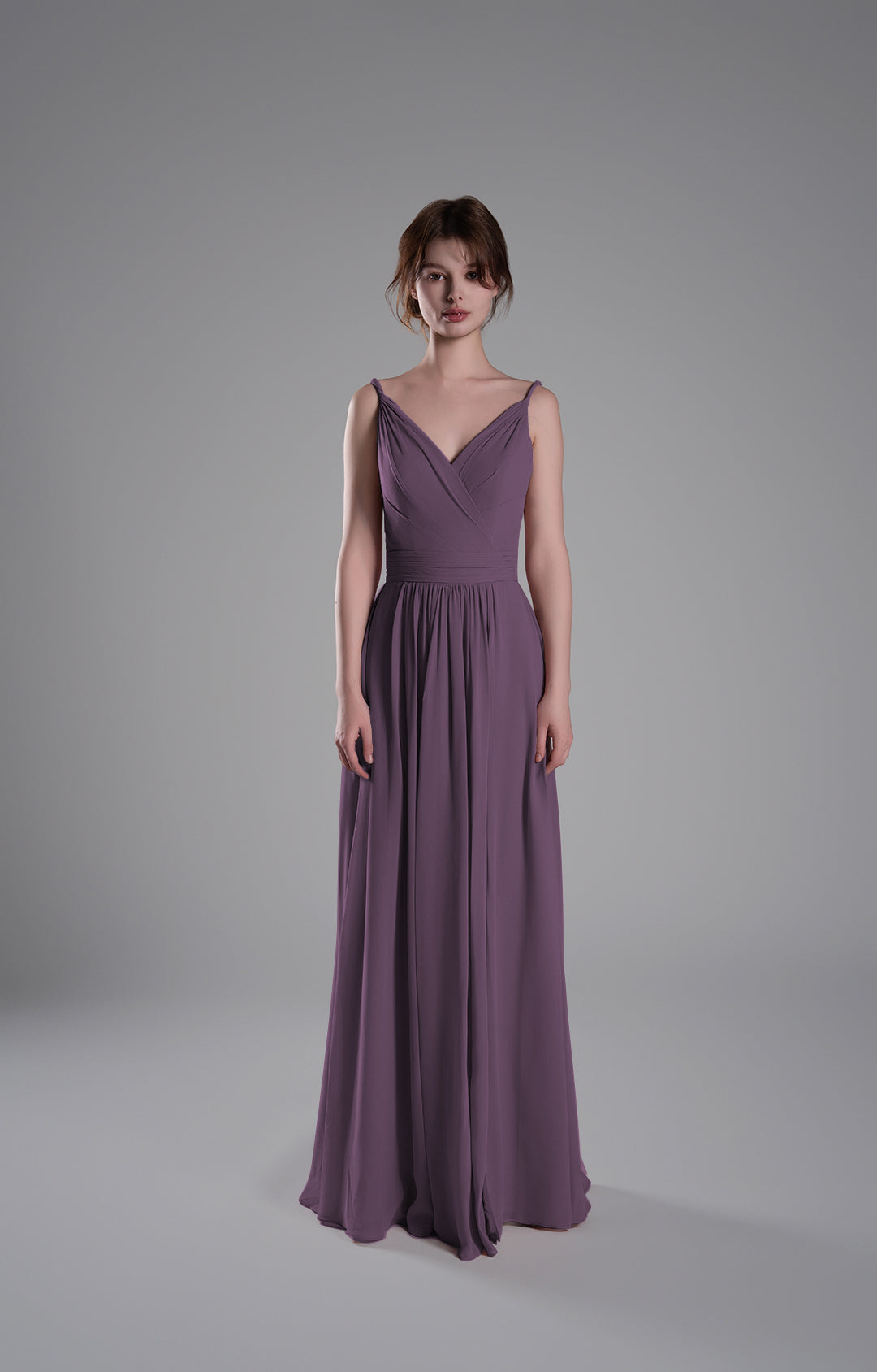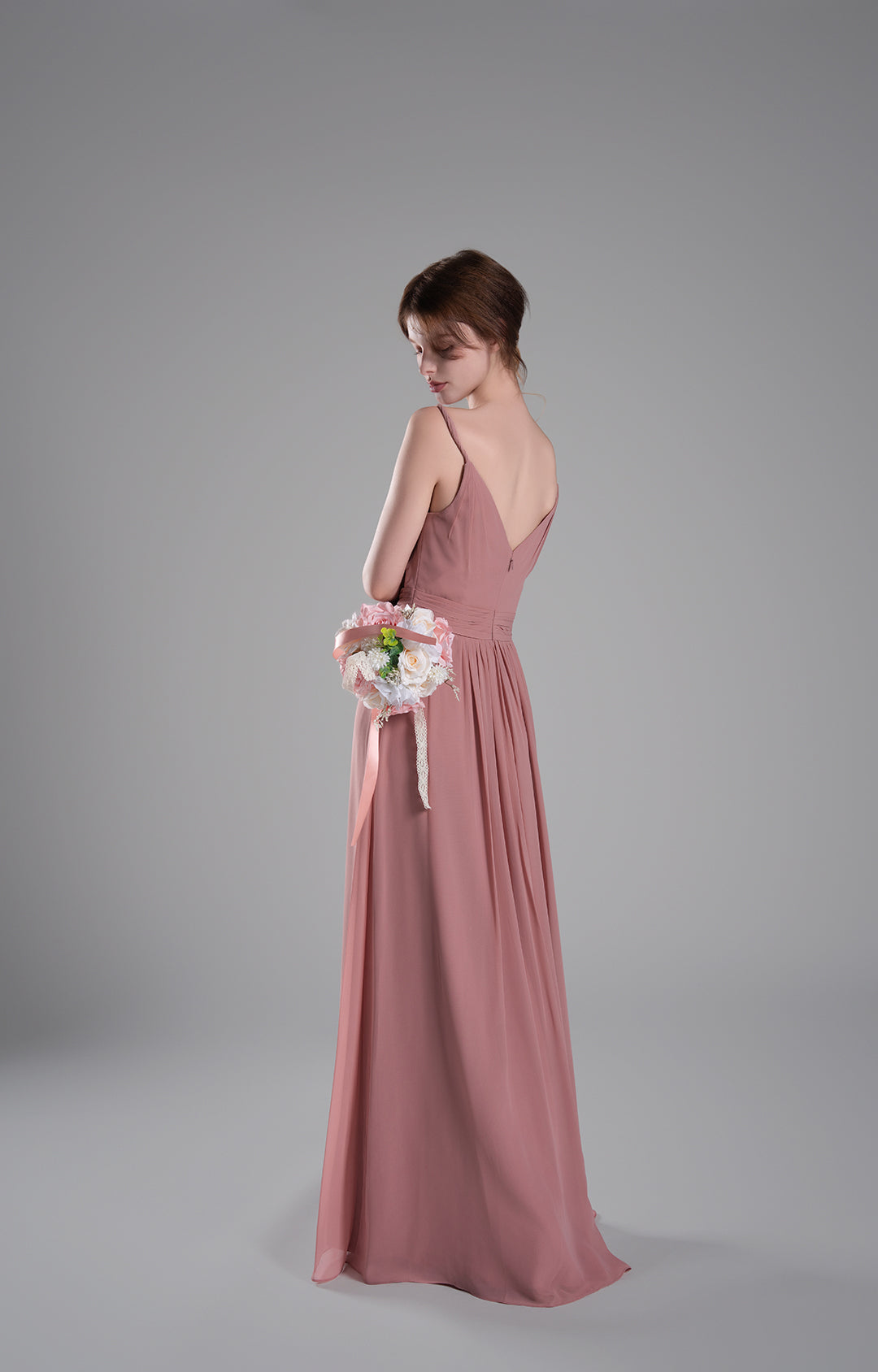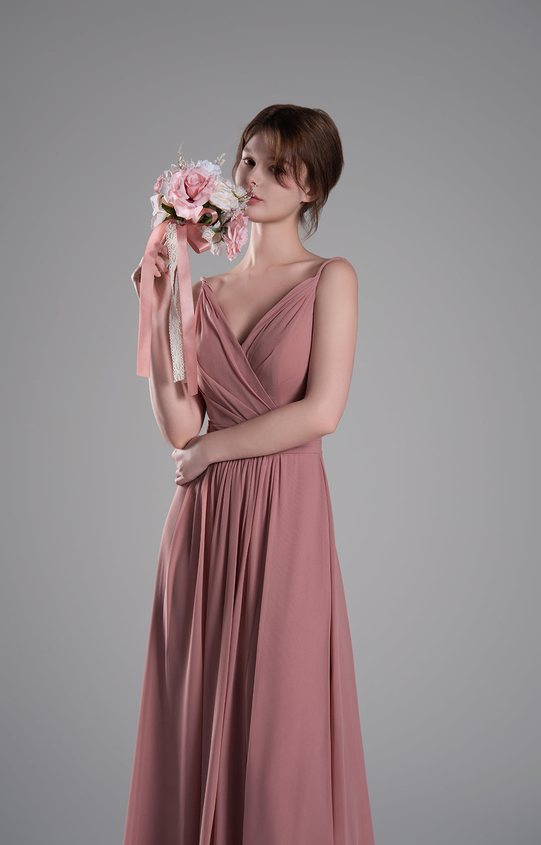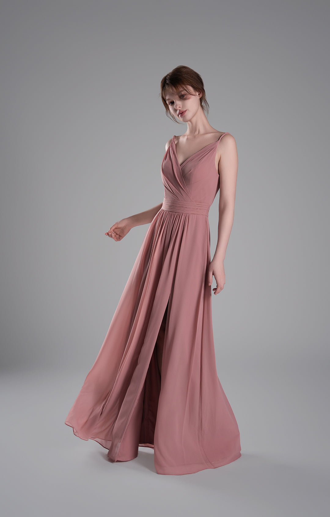 V-Neck Pleated Split A-Line Bridesmaid Dresses