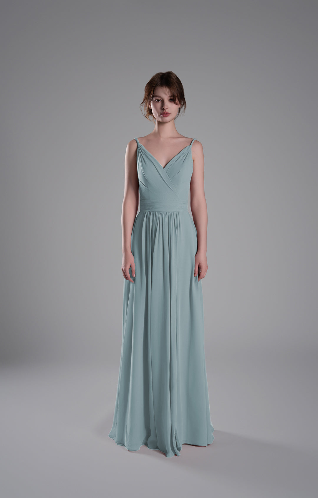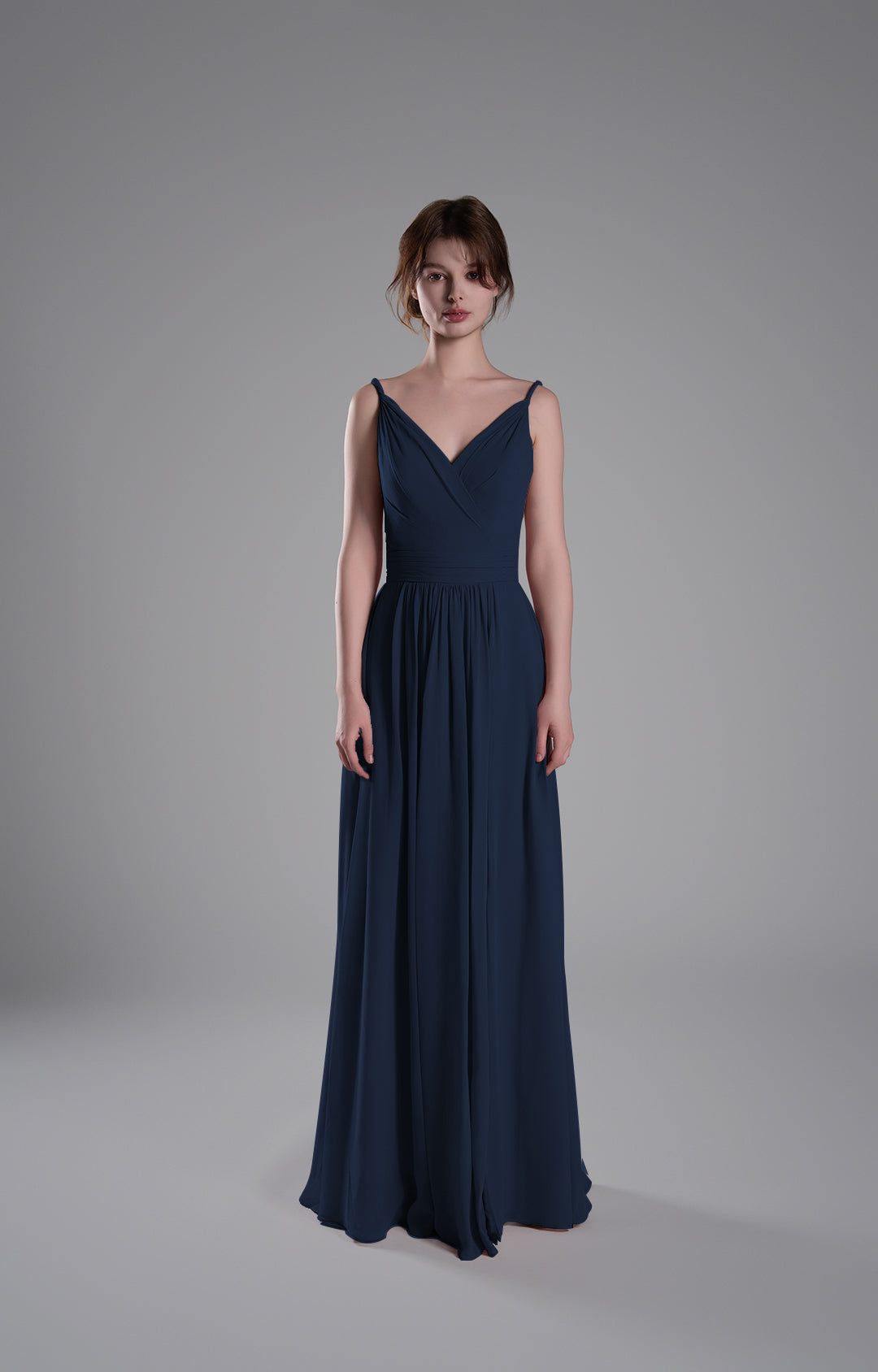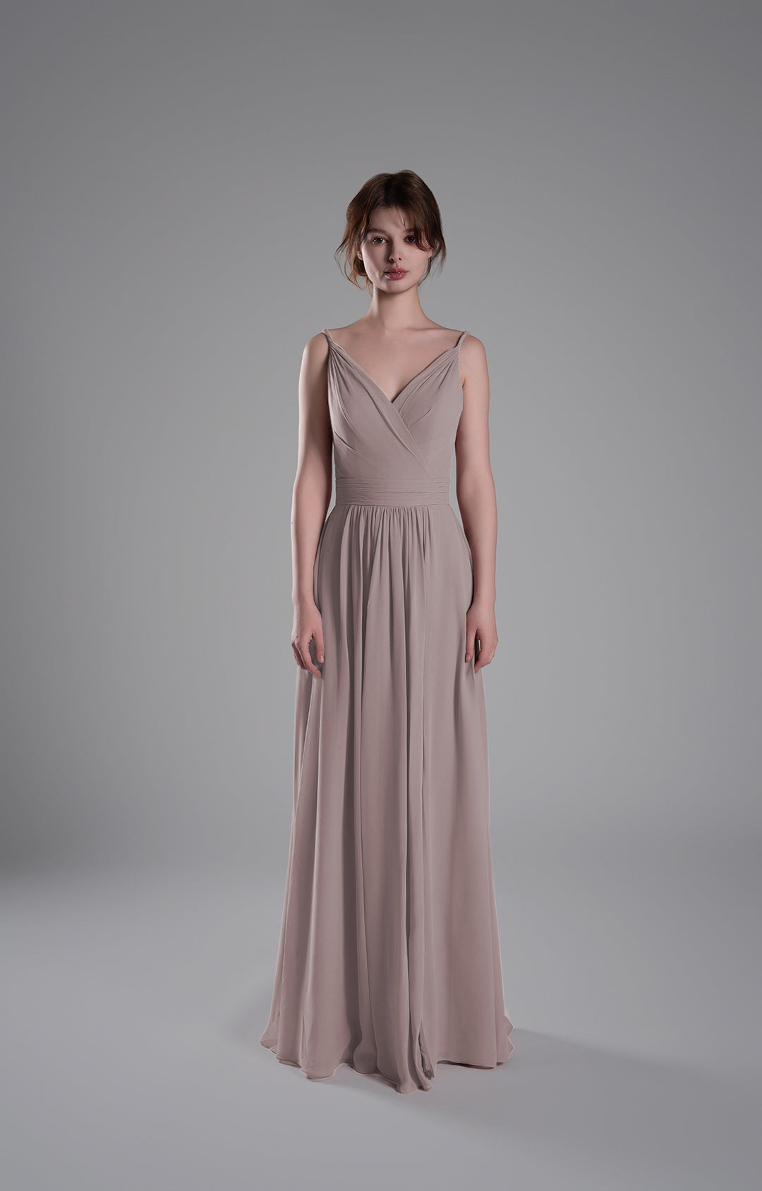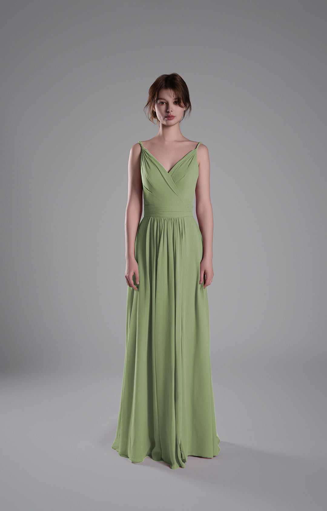 V-Neck Pleated Split A-Line Bridesmaid Dresses