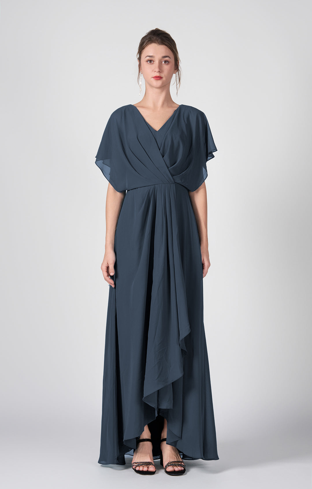 V-neck Ruched  A-Line Chiffon Dresses with Cape