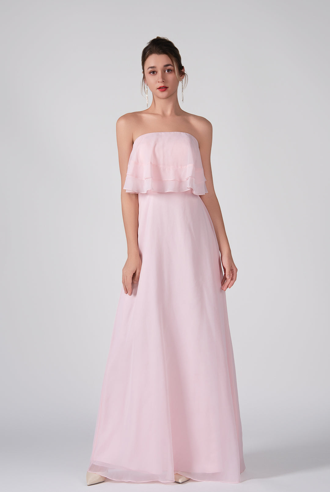 Strapless Ruffles A-Line Floor-Length Chiffon Dress