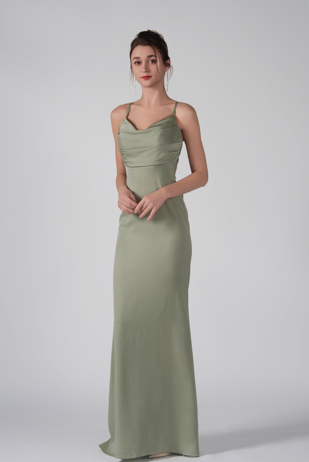 Spaghetti Straps Cowl Neck Ruffles Sheath Maxi Dress