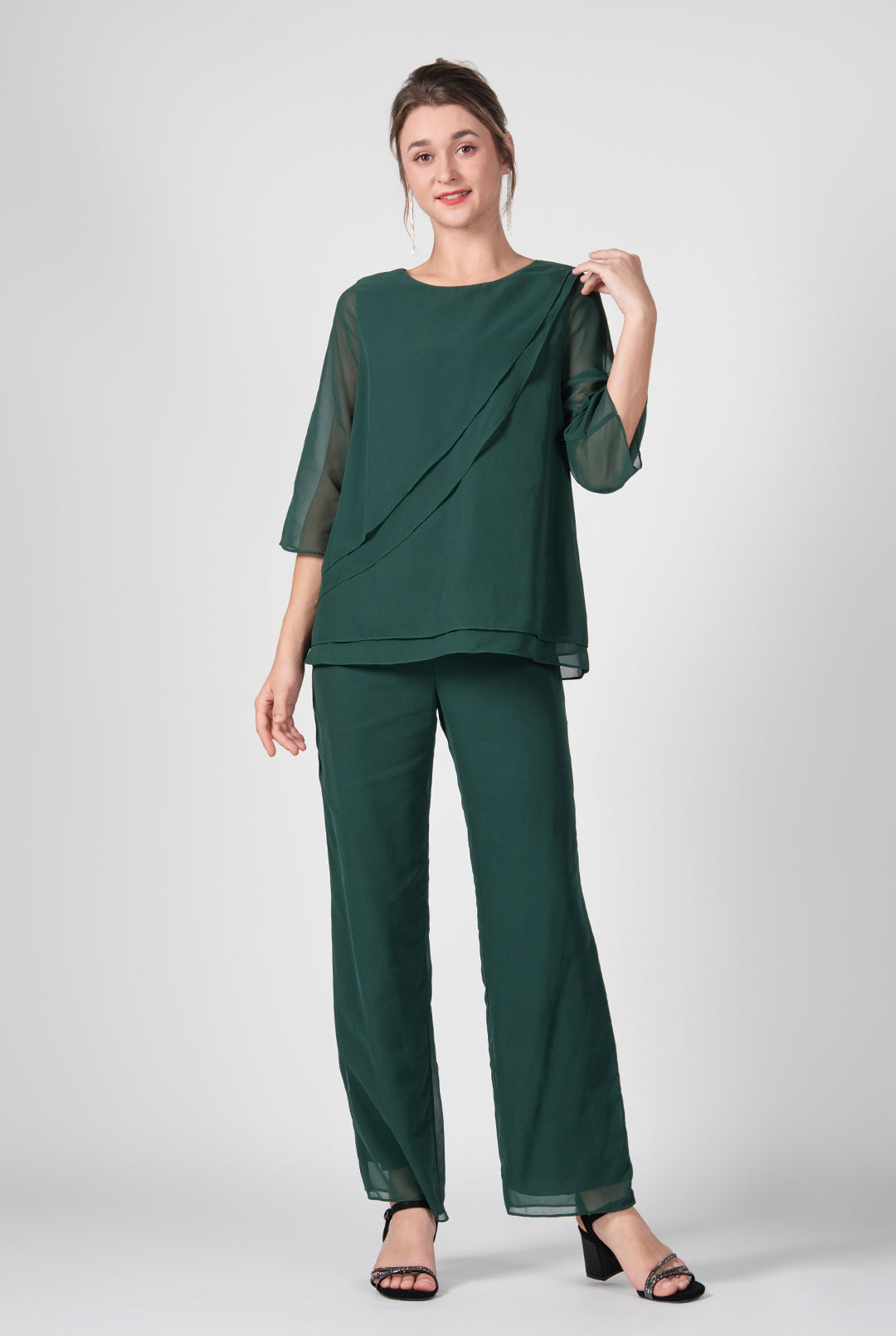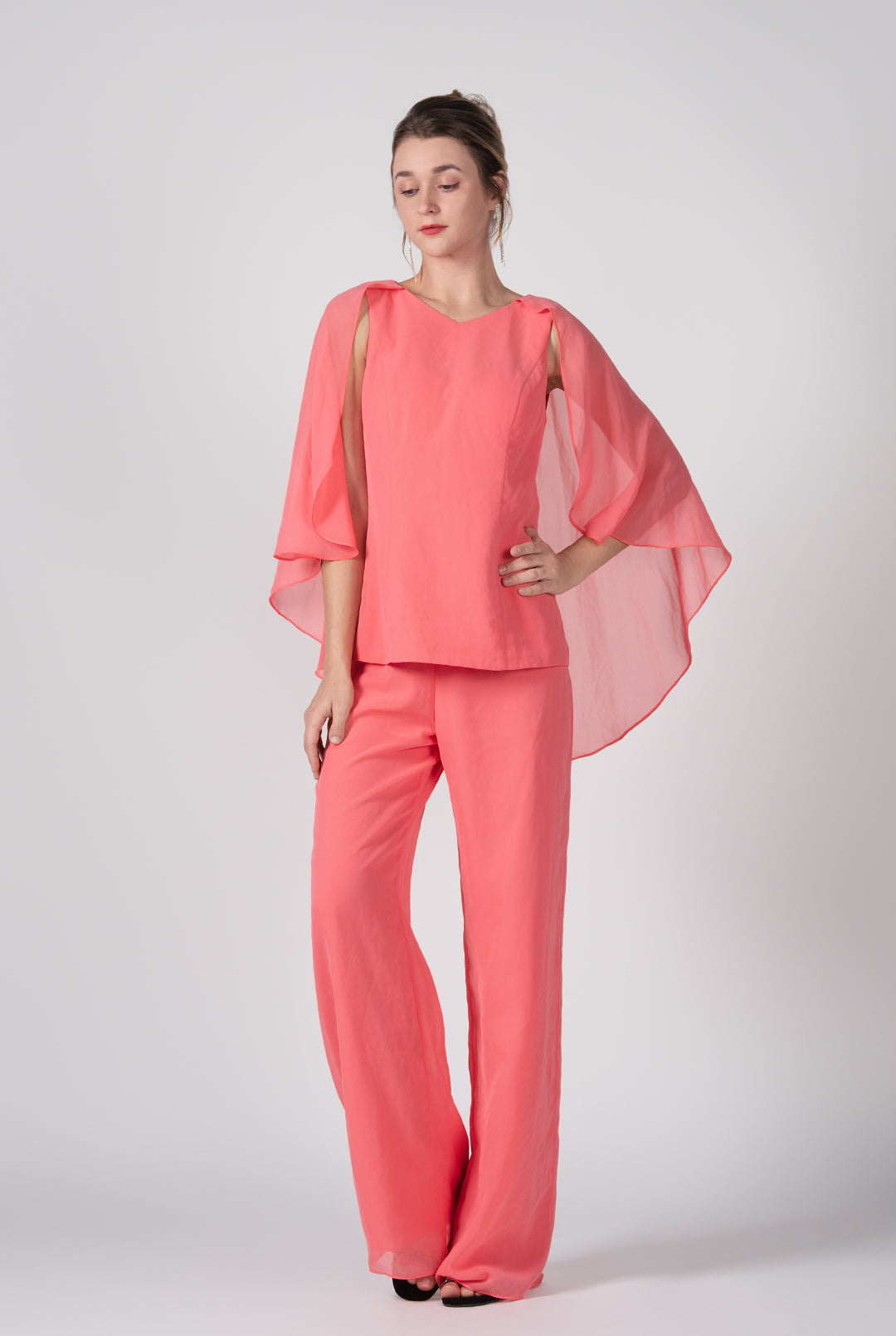 2-Piece Mother of the Bride Chiffon Pant Suits with Cape