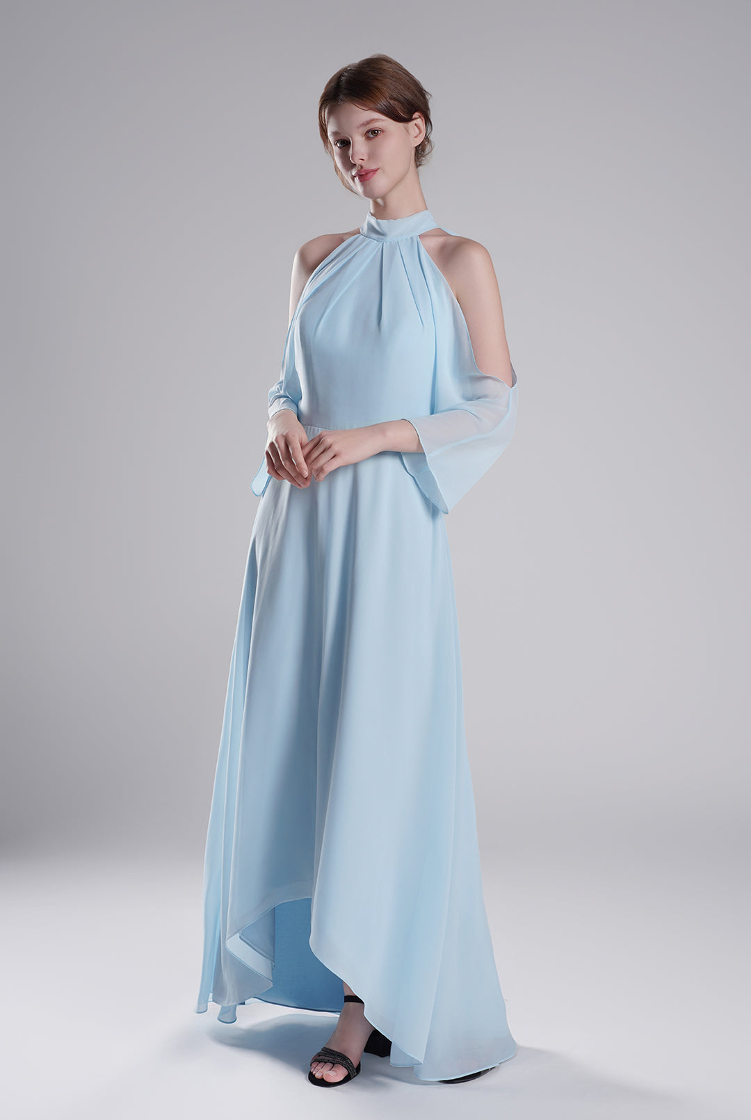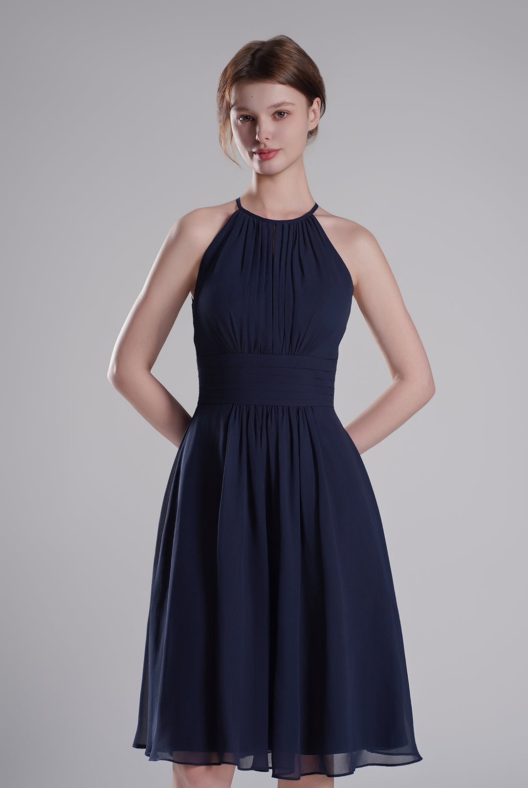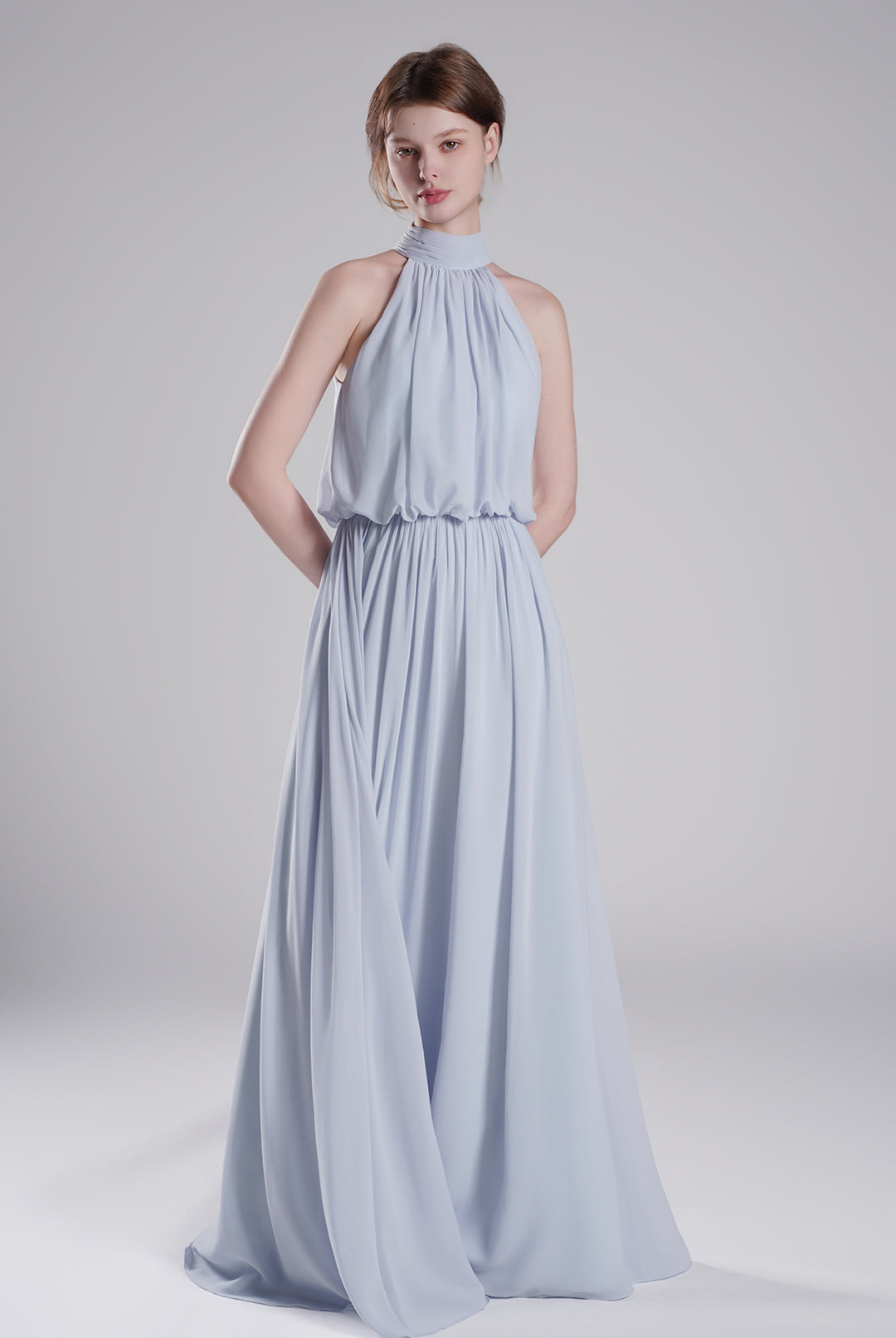 High Halter Neck Pleated Flowing A-Line Dresses