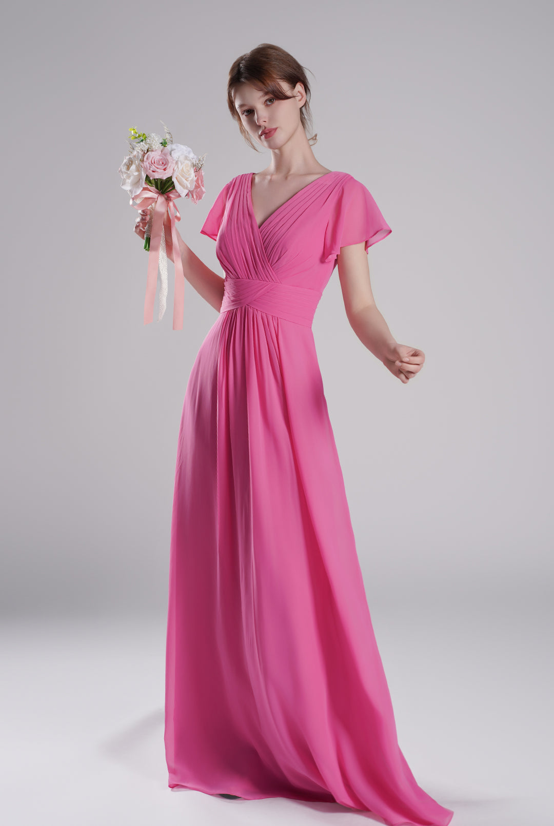 Pleated V-Neck Flutter Sleeves Flowy A-Line Dresses