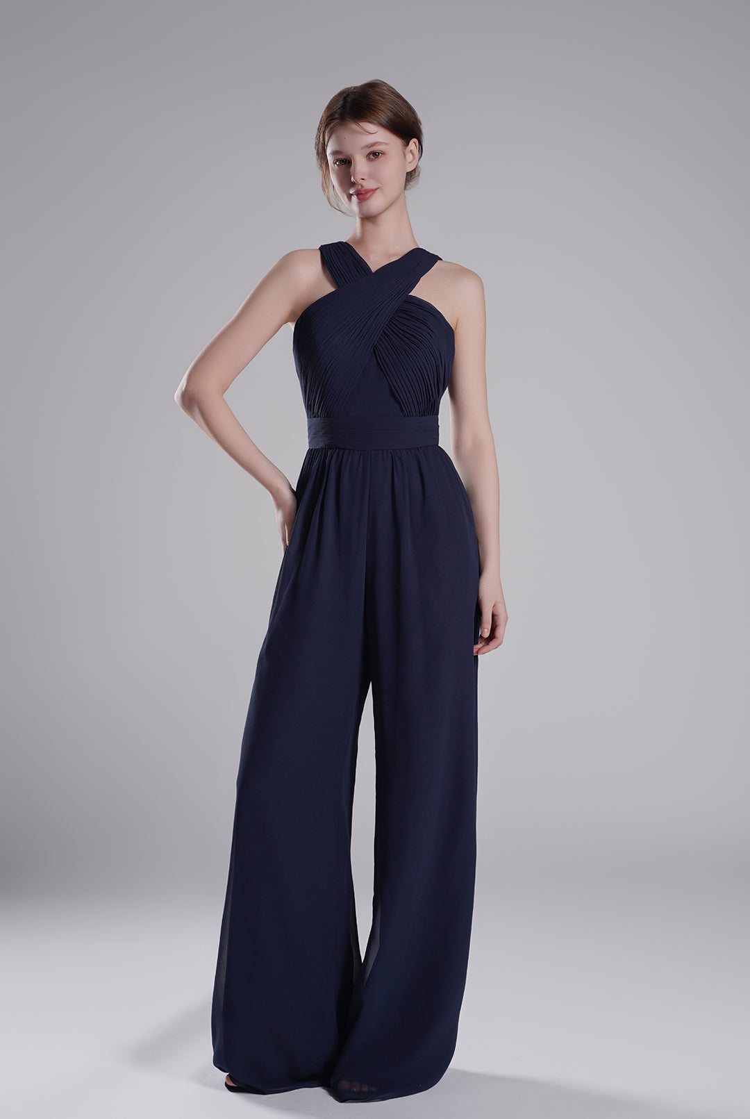 Cross-Halter Neckline Pleated Palazzo Pants