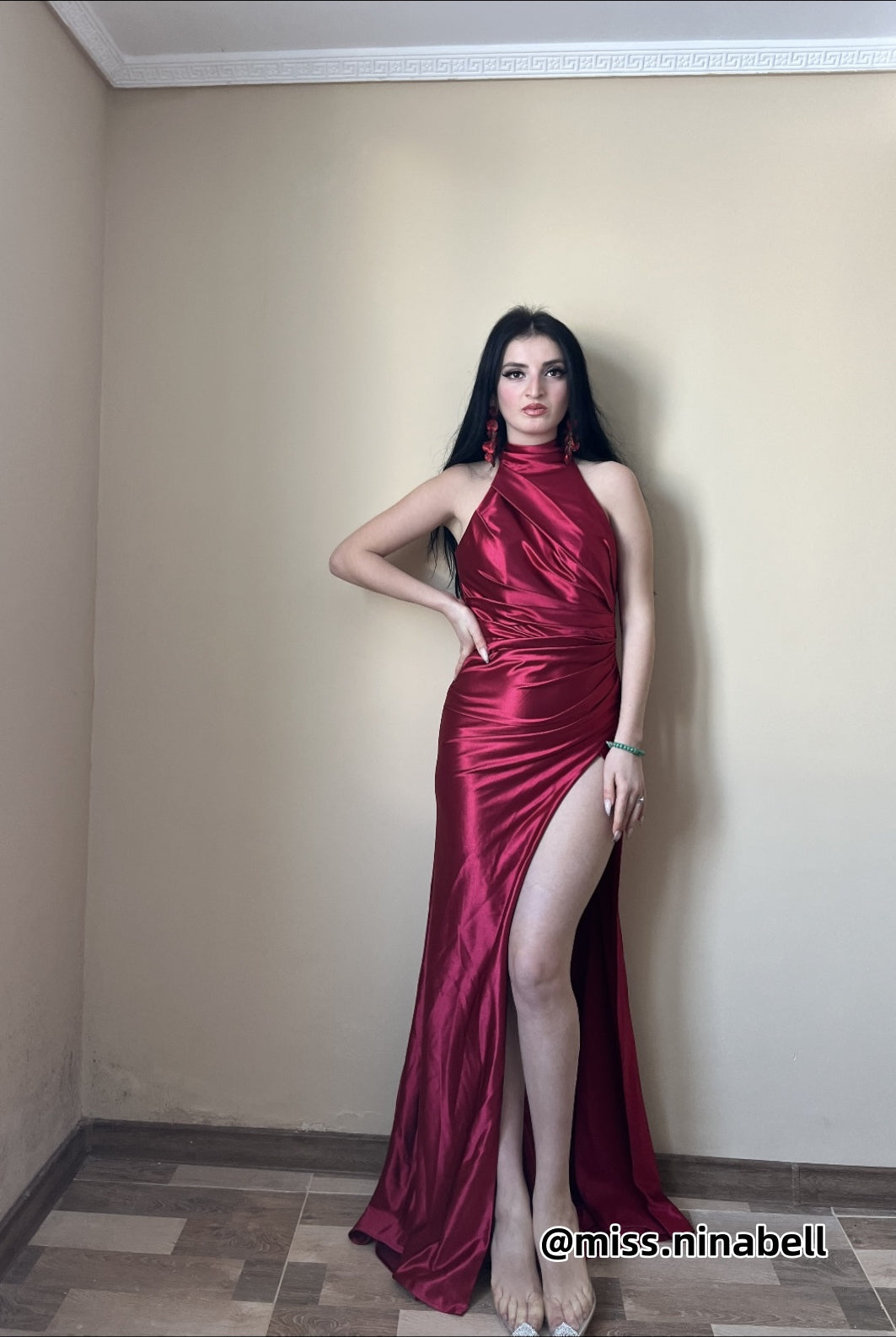 Halter Neck Pleated Bodice Flared Dresses