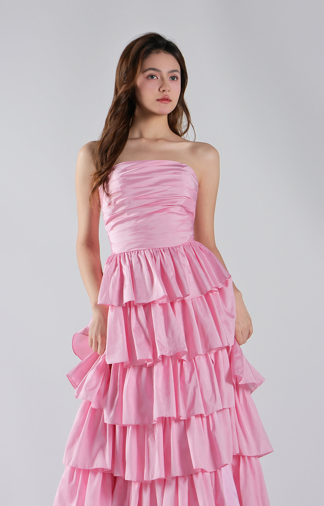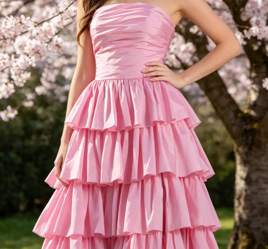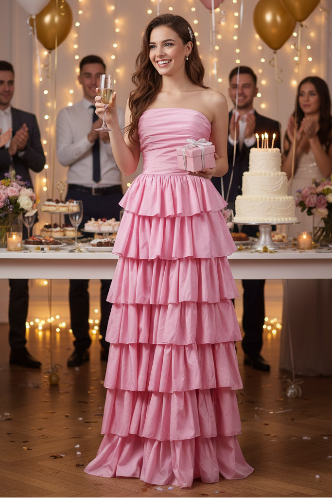 Strapless Bodice Multi-Tiered Hem Puffy Dresses