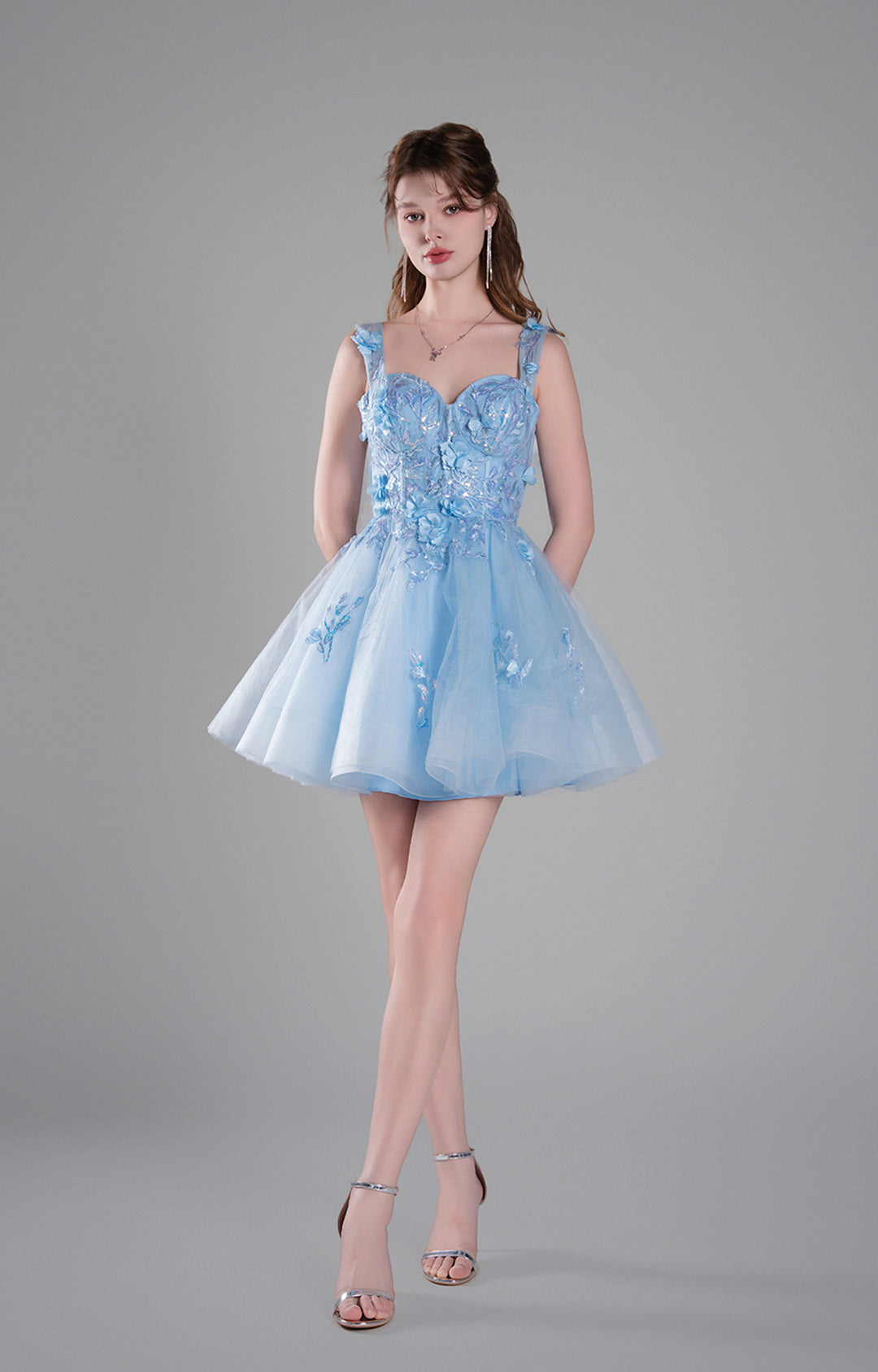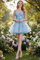 Sweetheart Neck Strapds Appliqued Mini Dress