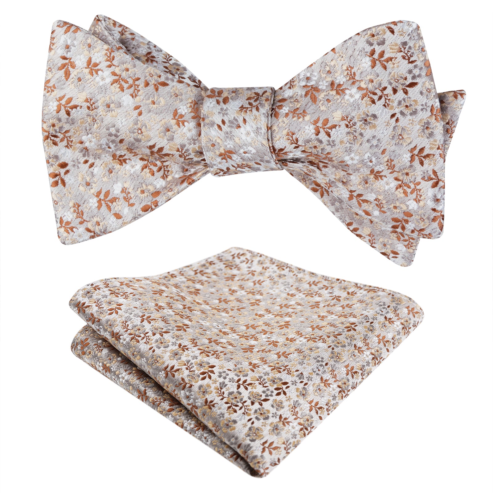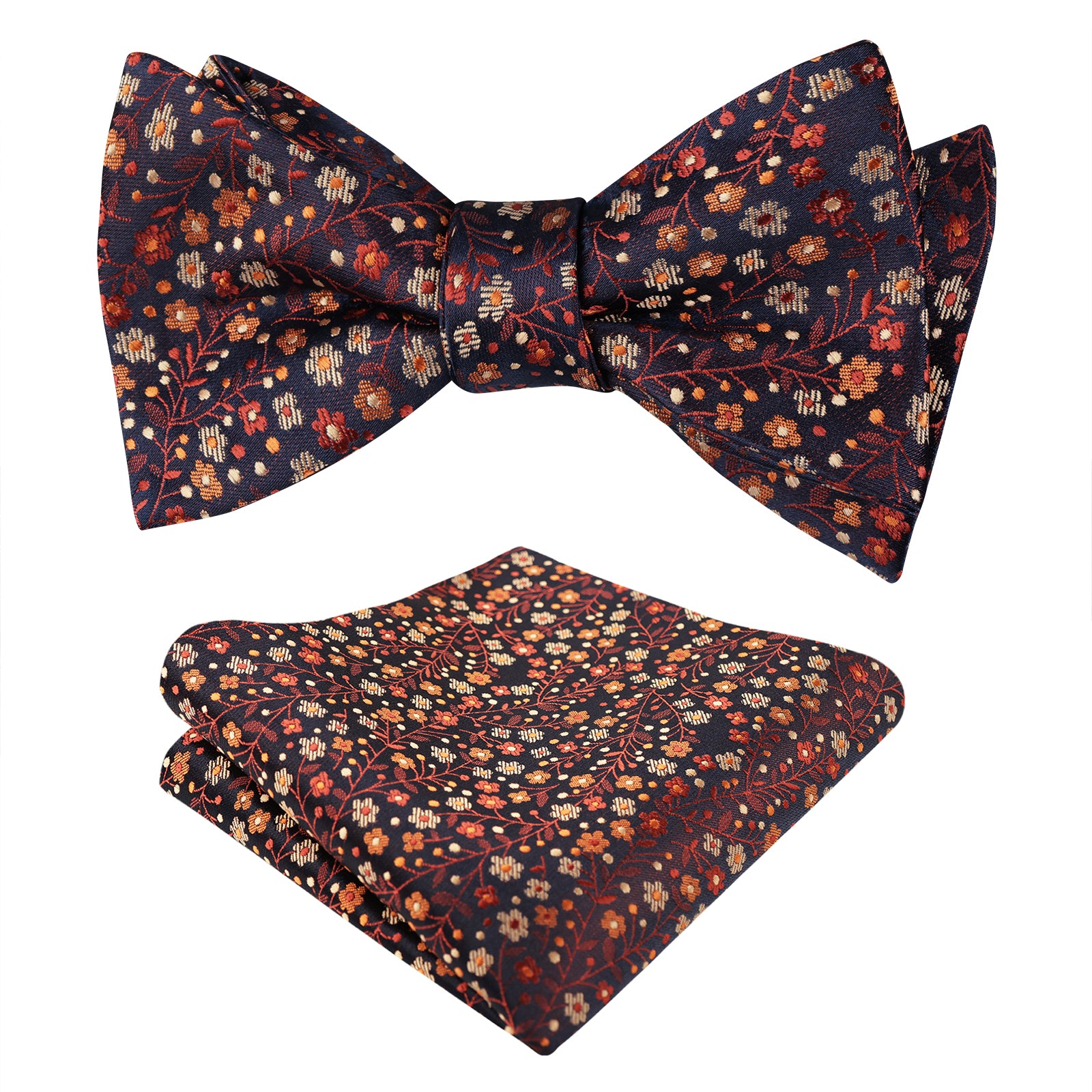 Men's Self-tied Floral Pattern Bow Tie with Colorful Pocket Square Tie Set-045