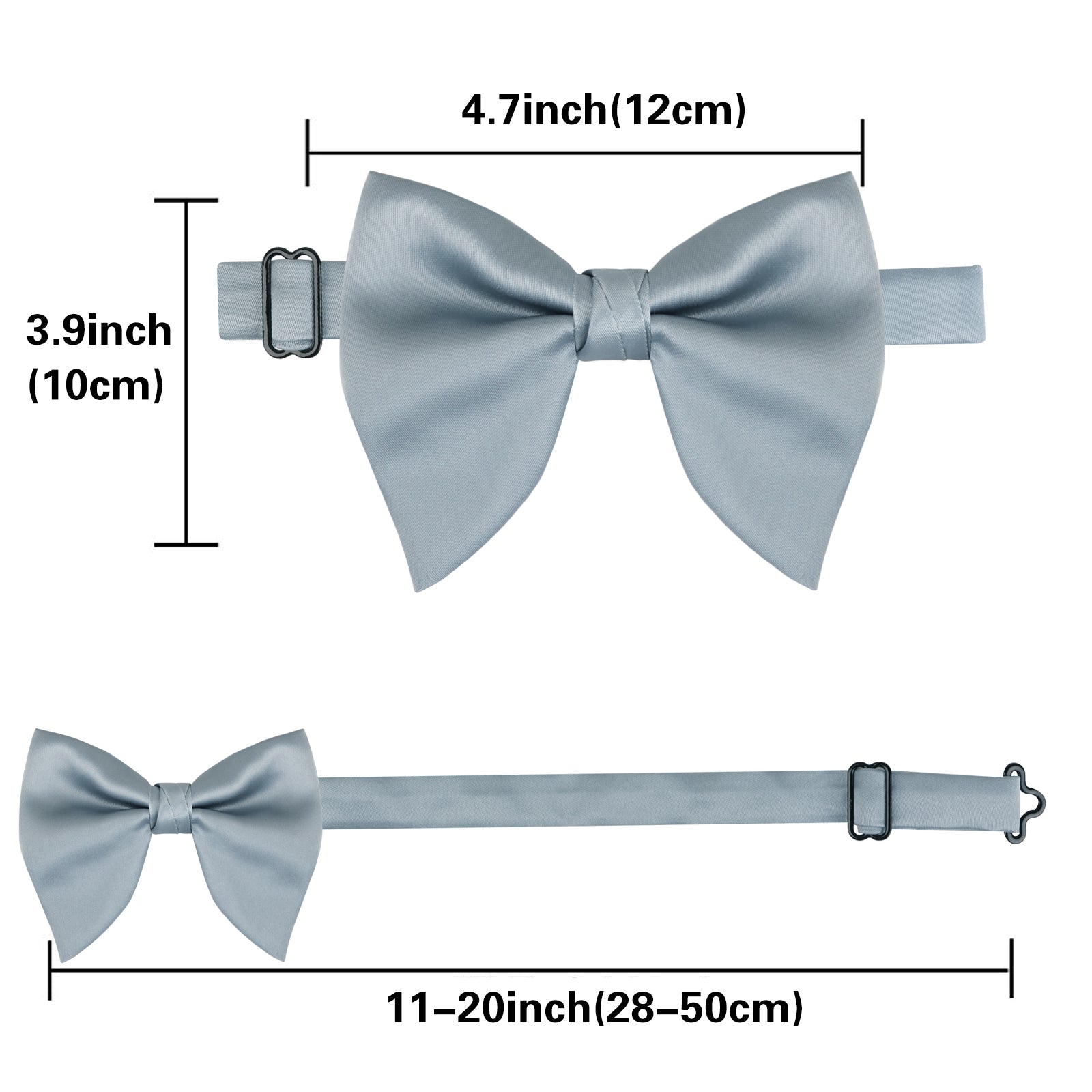 - Size: Oversized Tuxedo Bowtie for Men: Approx 4.73"x3.93"(12cm x 10cm). Adjustable neck size from 11"to 20",Easy to Adjust the Elasticity, suitable for most Men/Boys