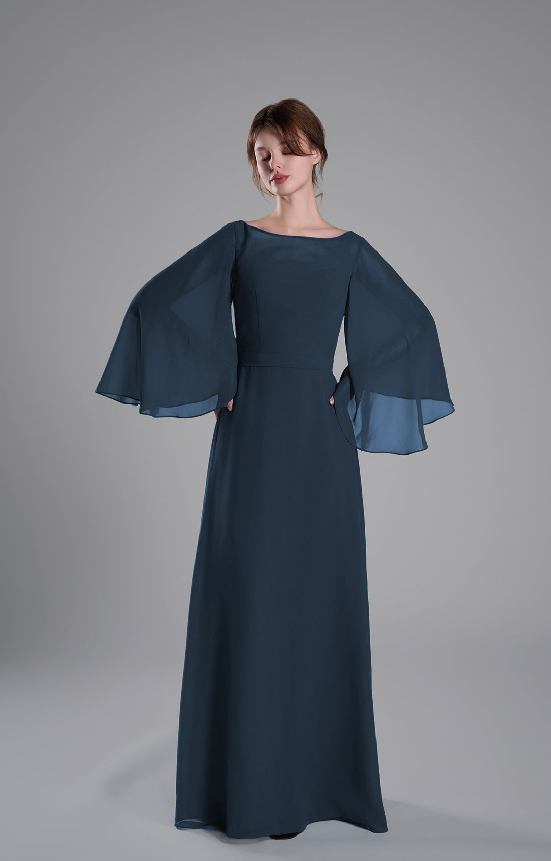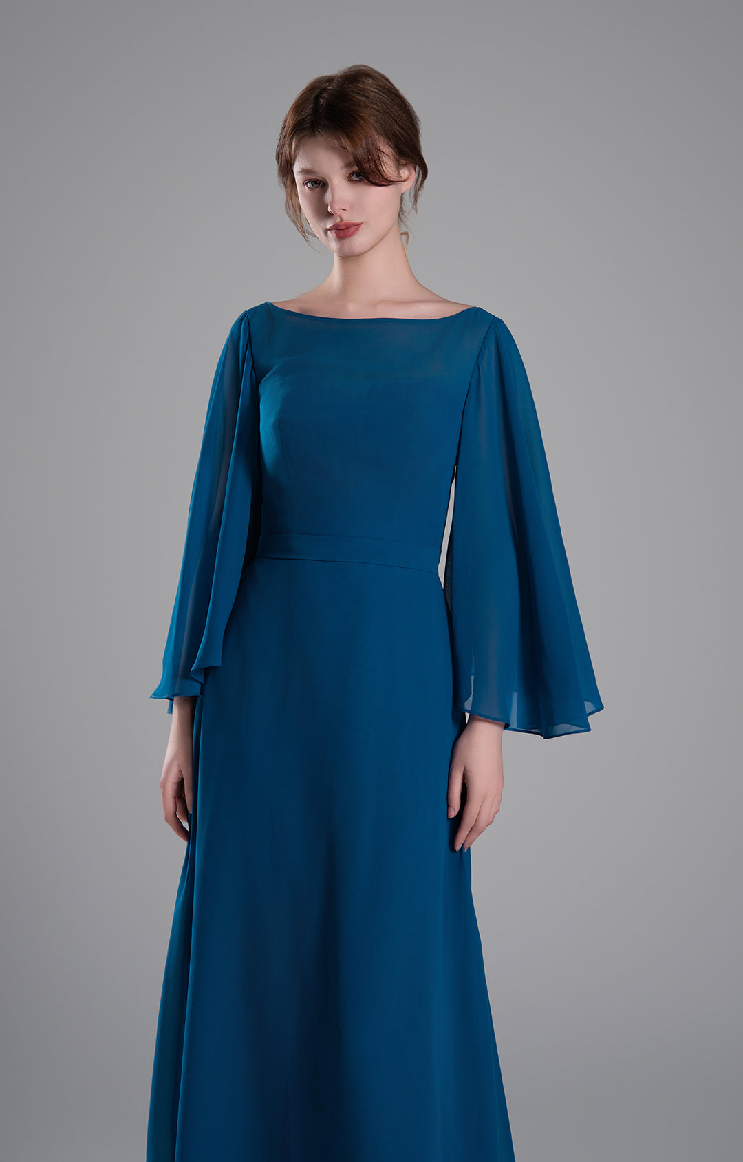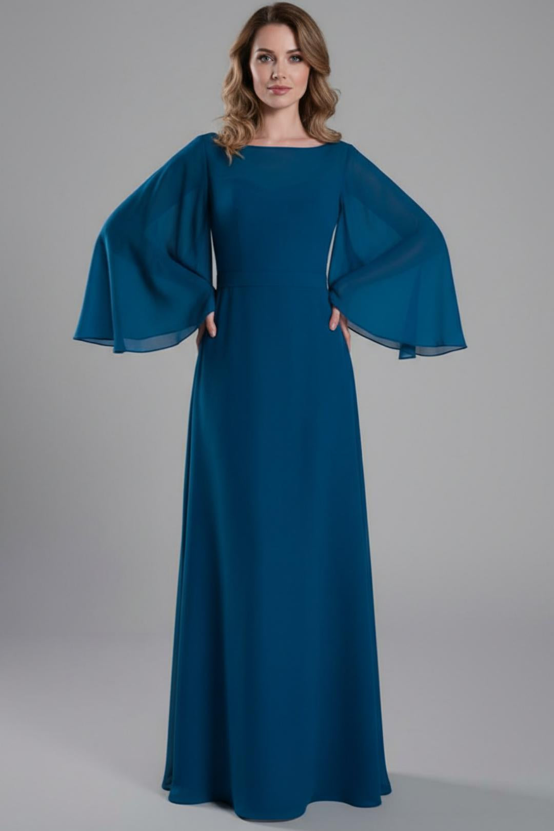 Boat Neckline Bell Sleeves Floor-Length A-Line Dresses