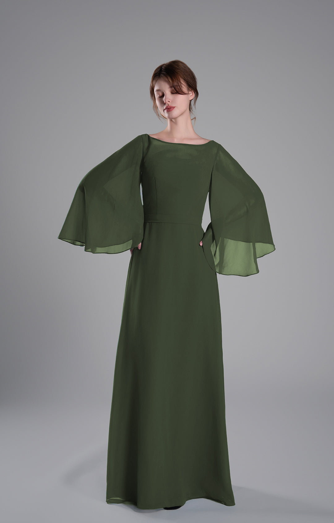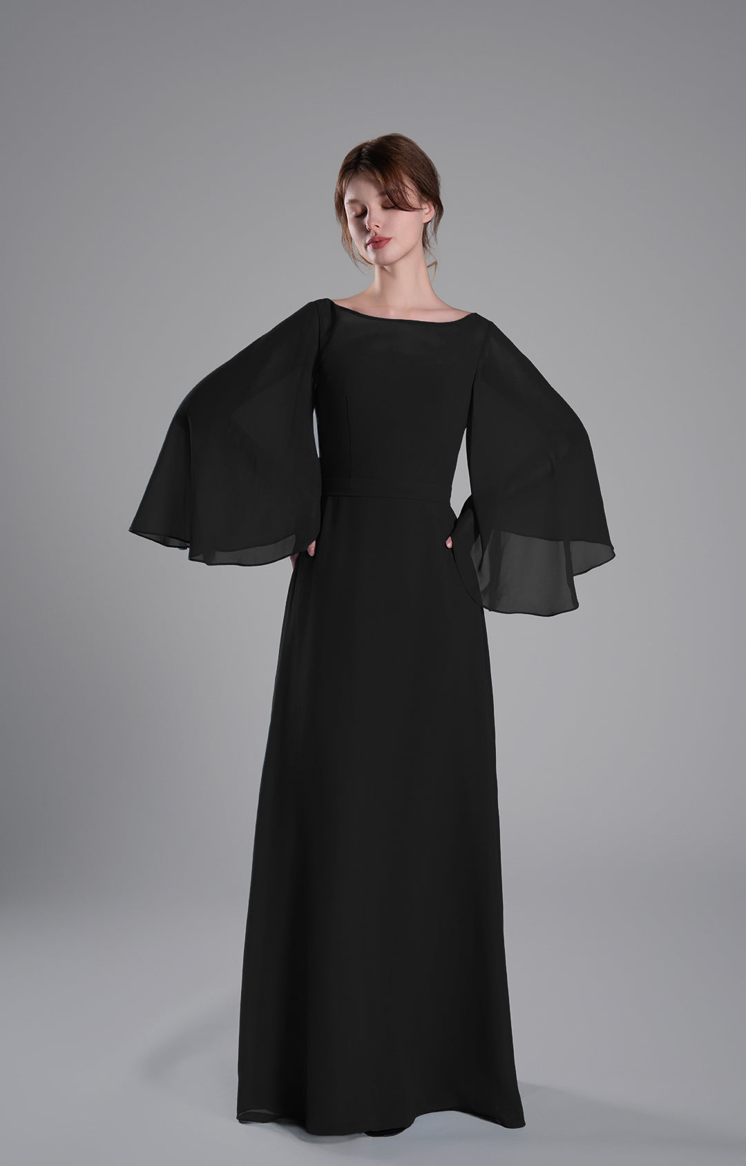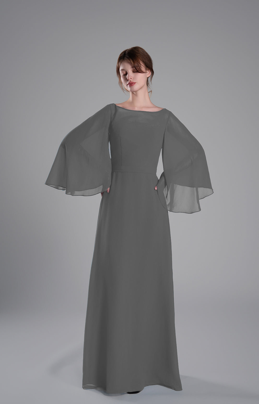 Boat Neckline Bell Sleeves Floor-Length A-Line Dresses