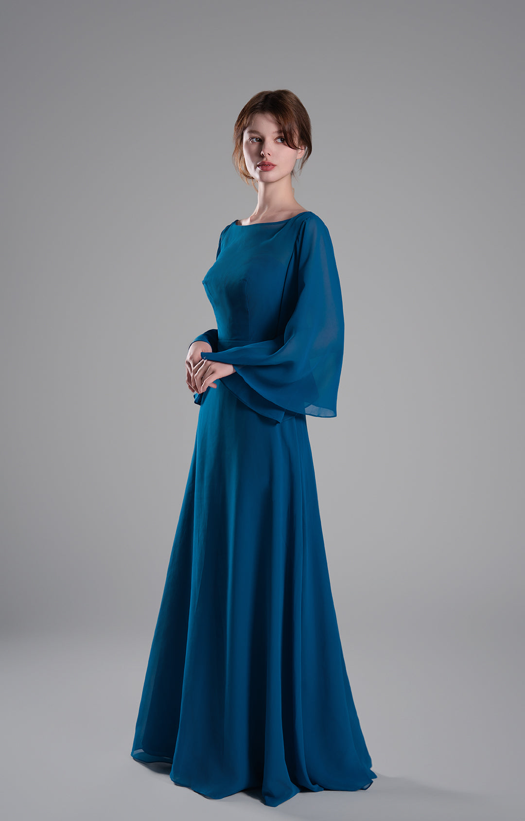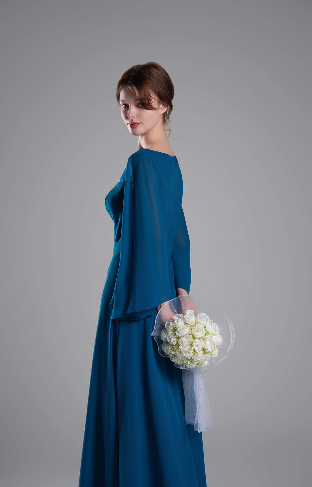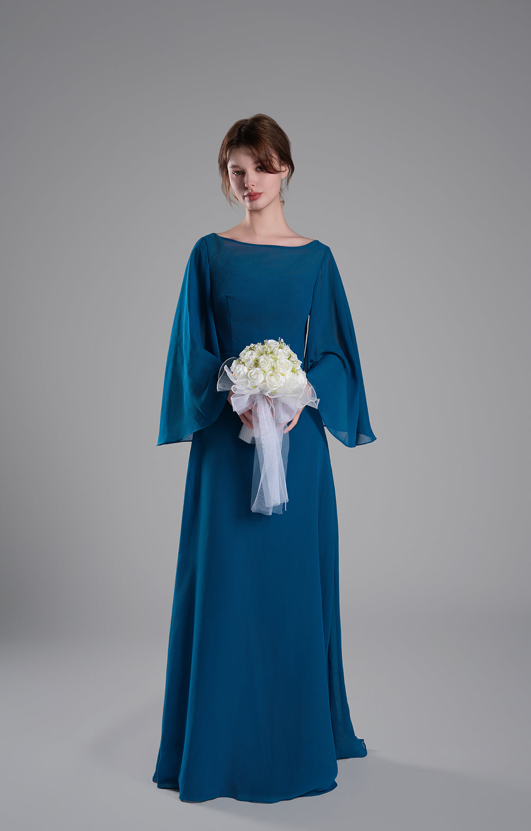 This chiffon gown is perfect for weddings, galas, formal dinners, and other special events where you want to exude timeless elegance.