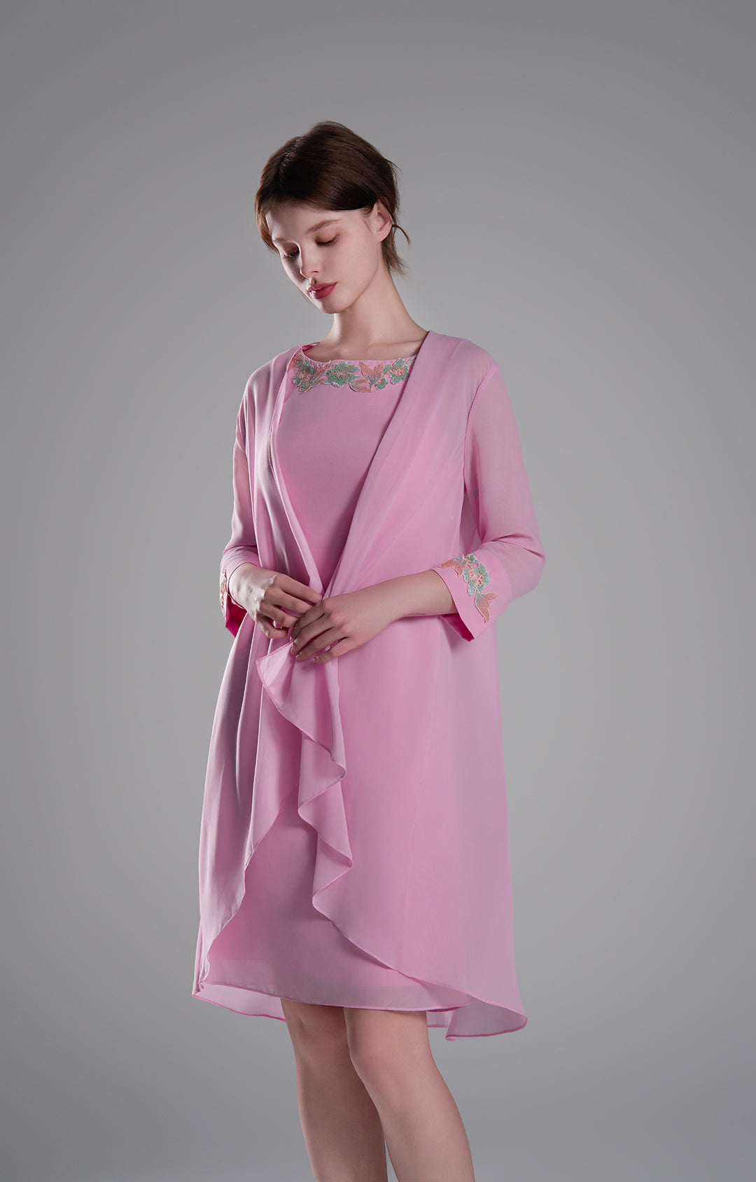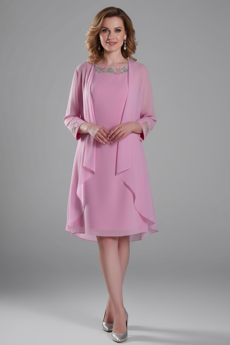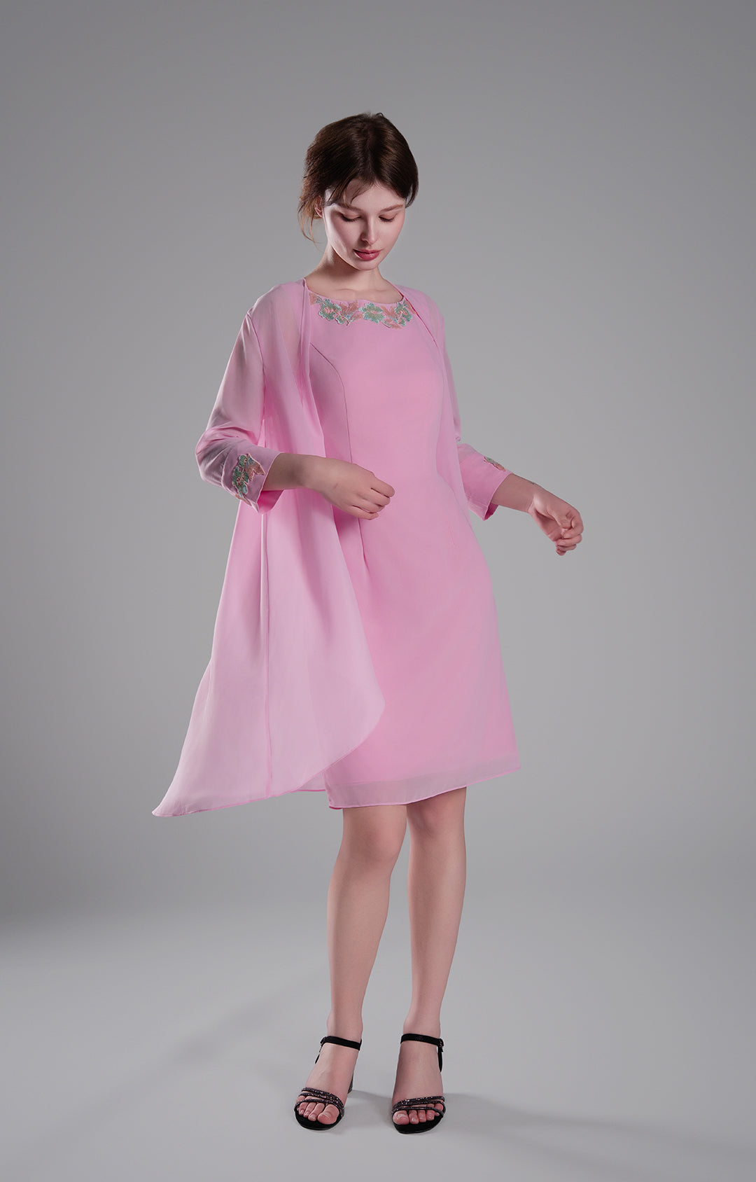 Round Neck Embroidered Straight-Fit Mini Dresses Set