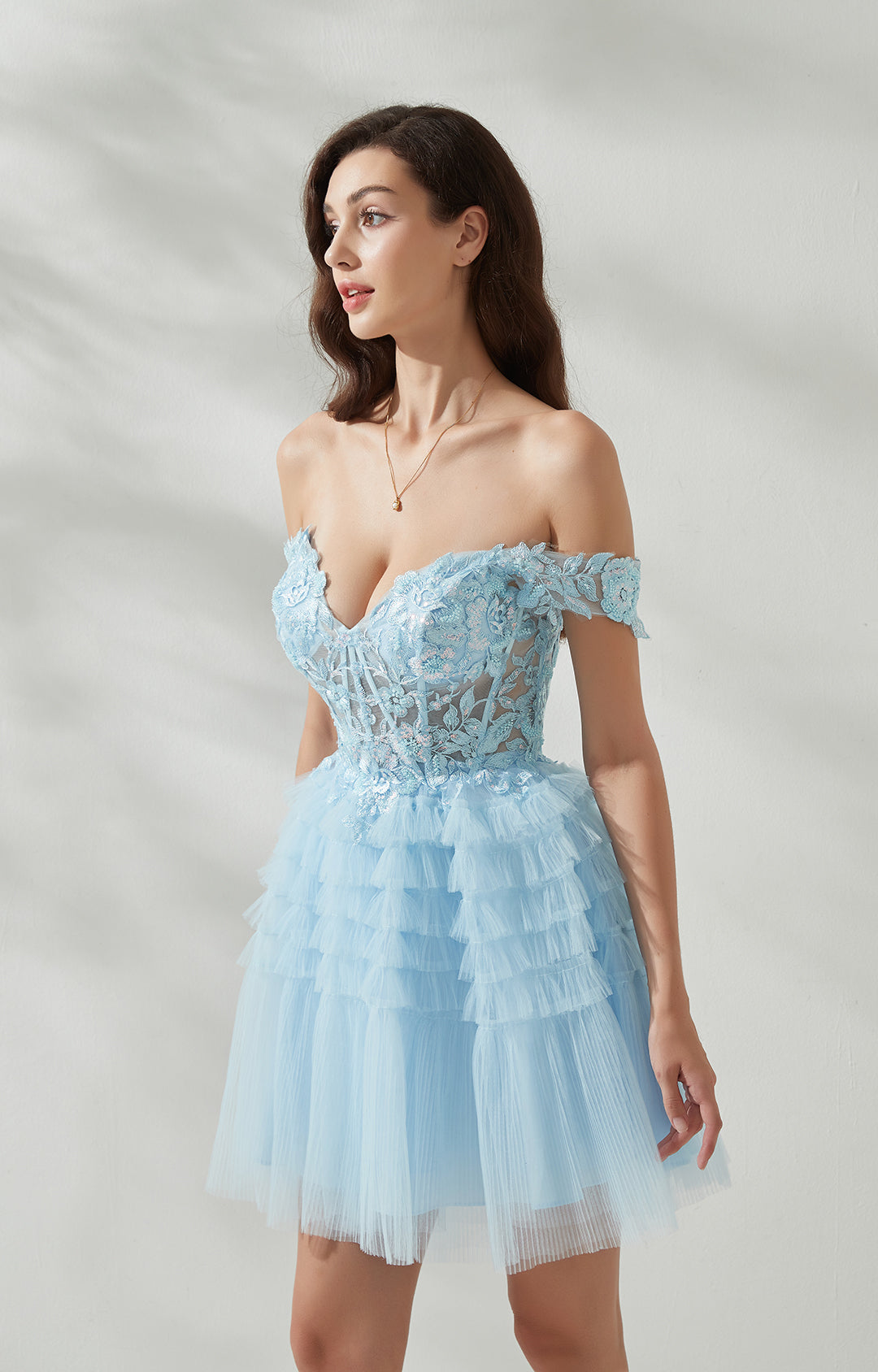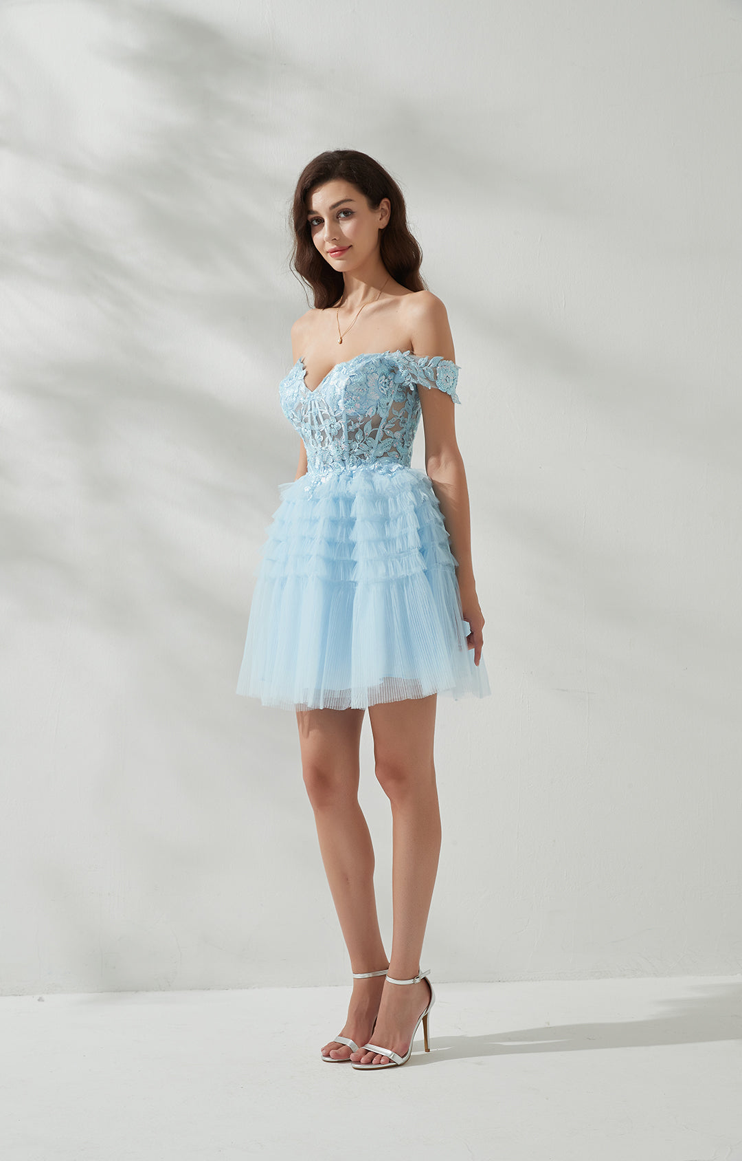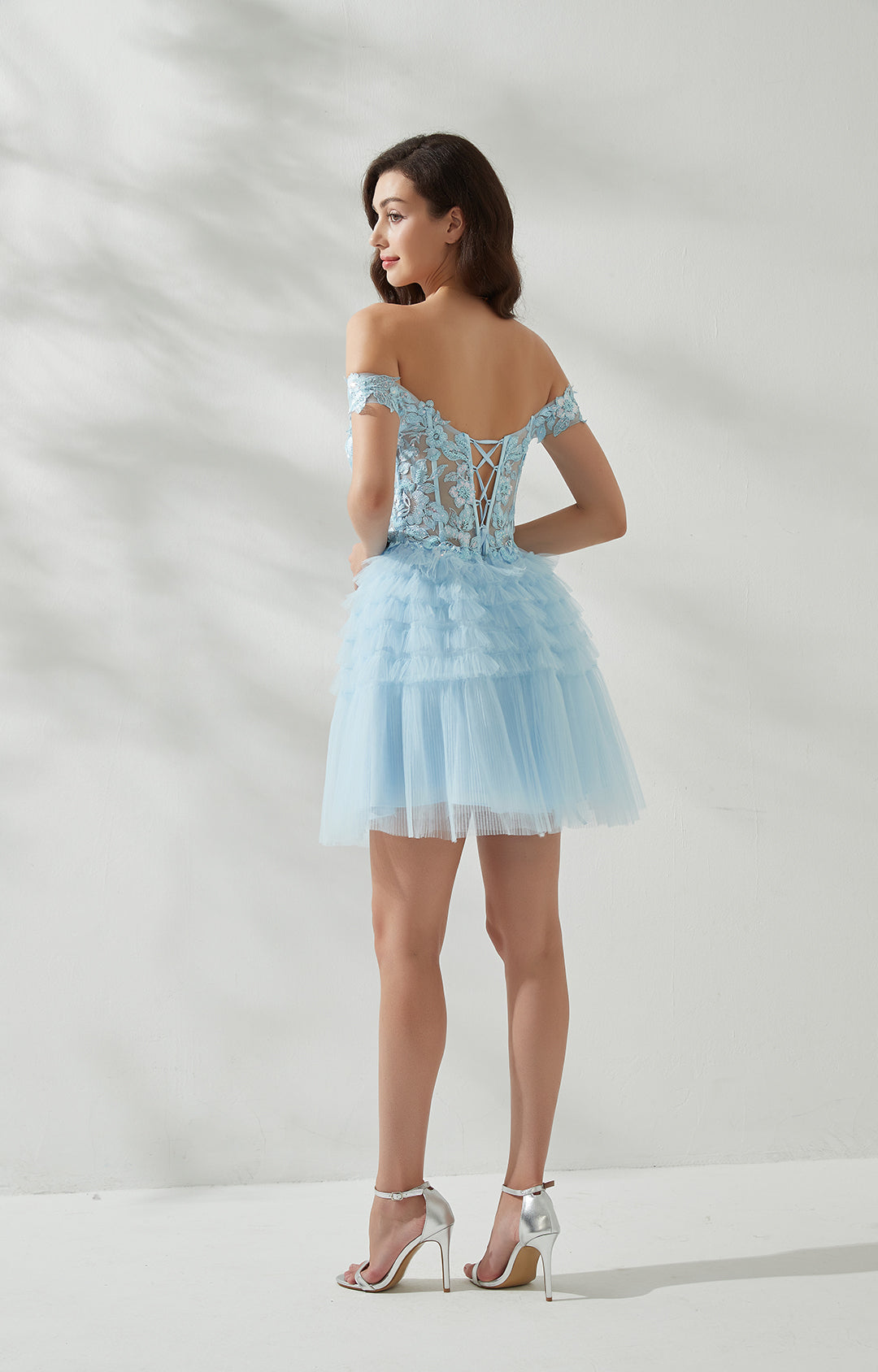 Sweetheart-Neck Off Shoulder Sleeve Sequins Appliquéd Cross Strap Cake Mini Dresses