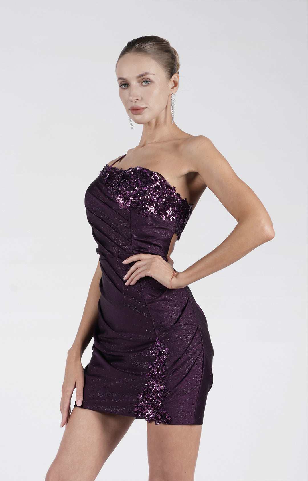 One-Shoulder Spaghetti Strap Sheath Sequins Pleated Mini Dresses