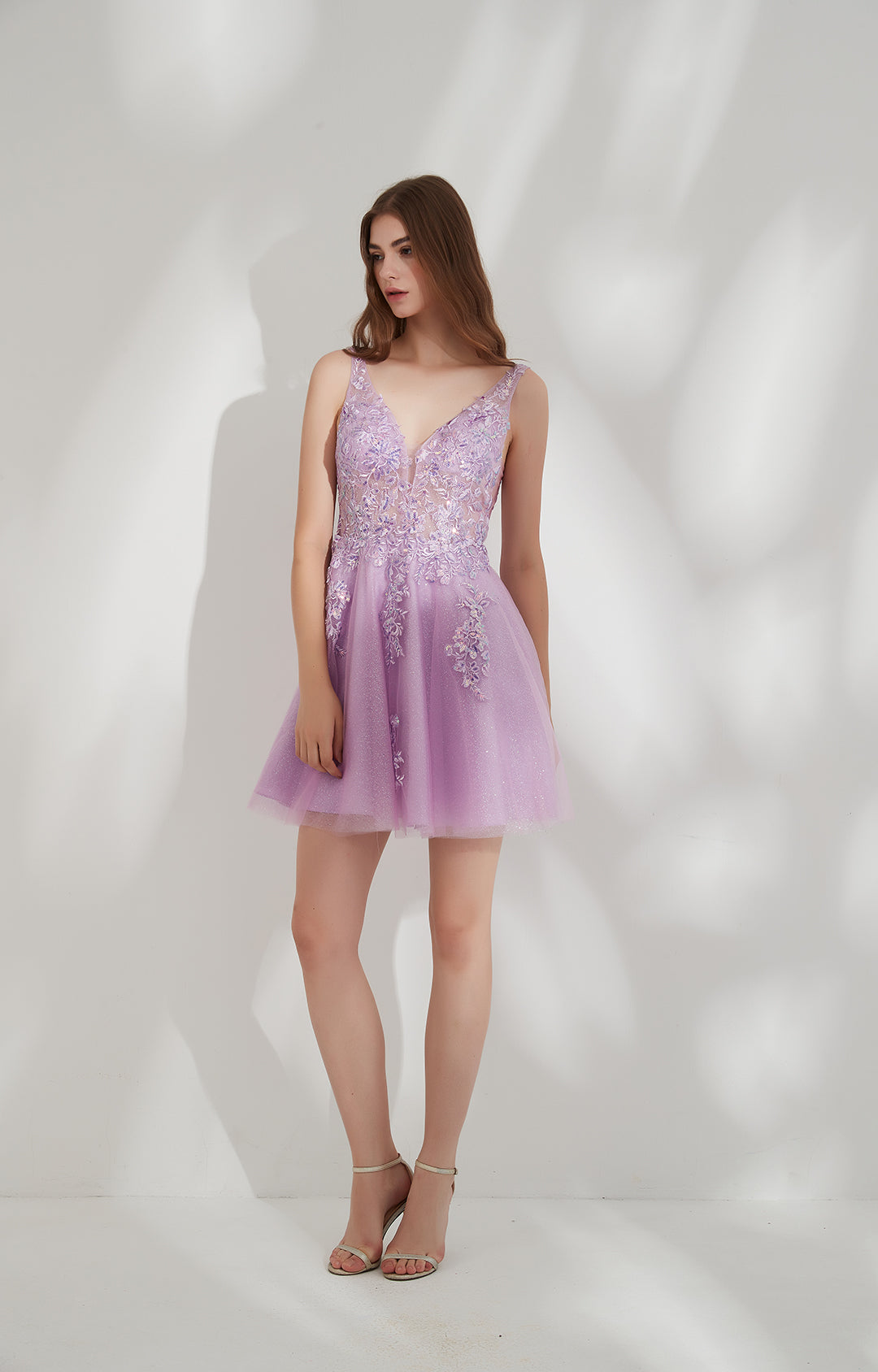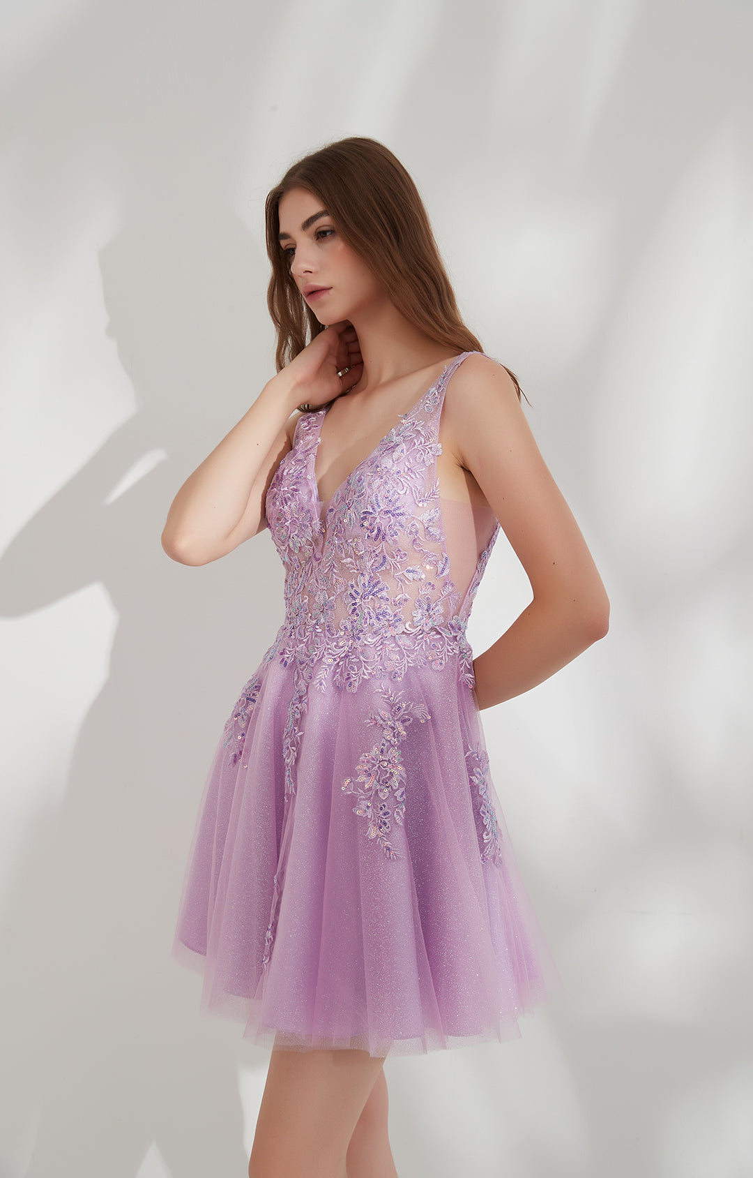 V-Neck Sleeveless Straps Appliqued Sequins Backless Short Party Dresses