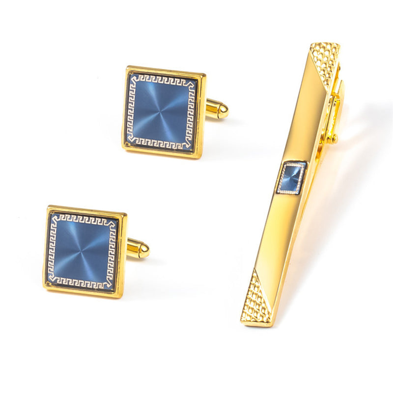 Men's Gold Square Cufflinks Tie Clip Set