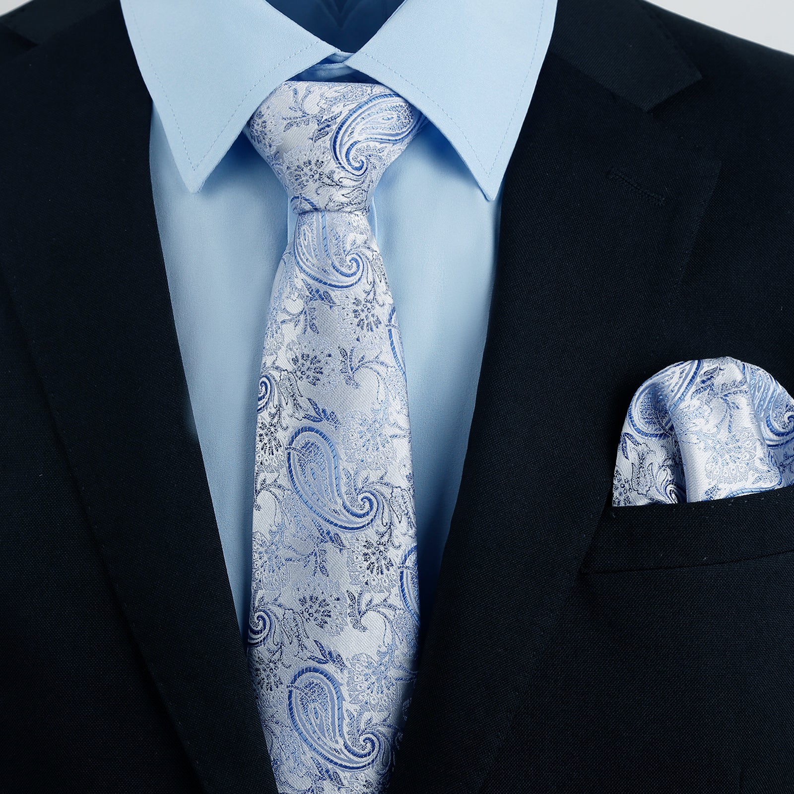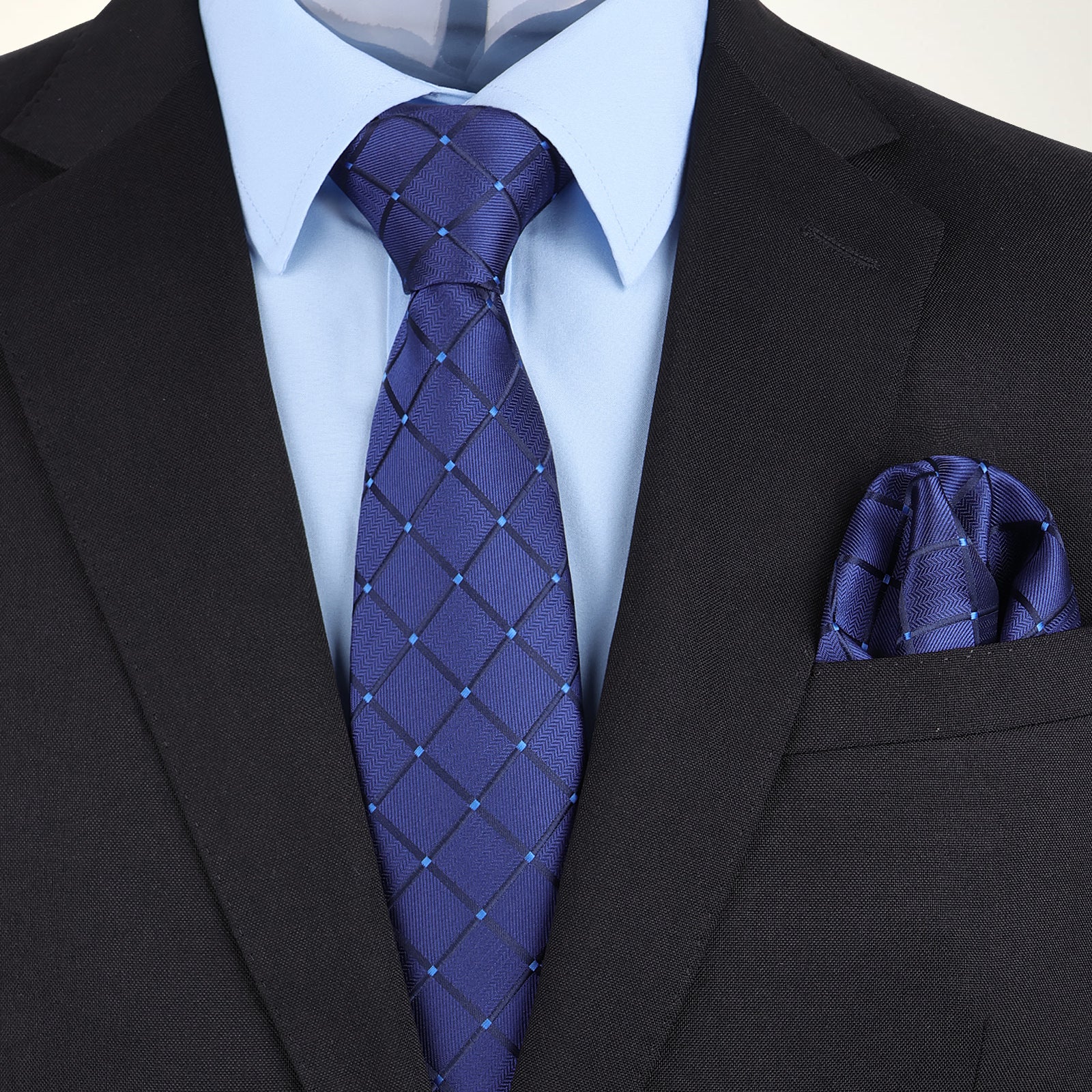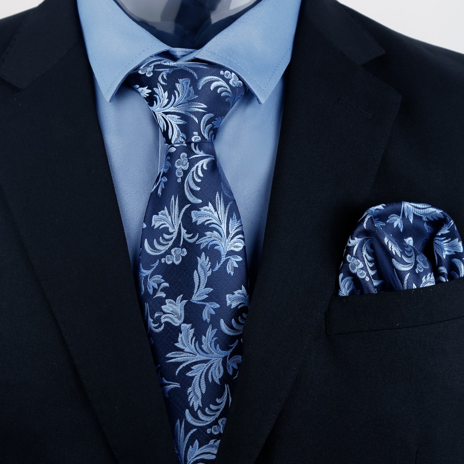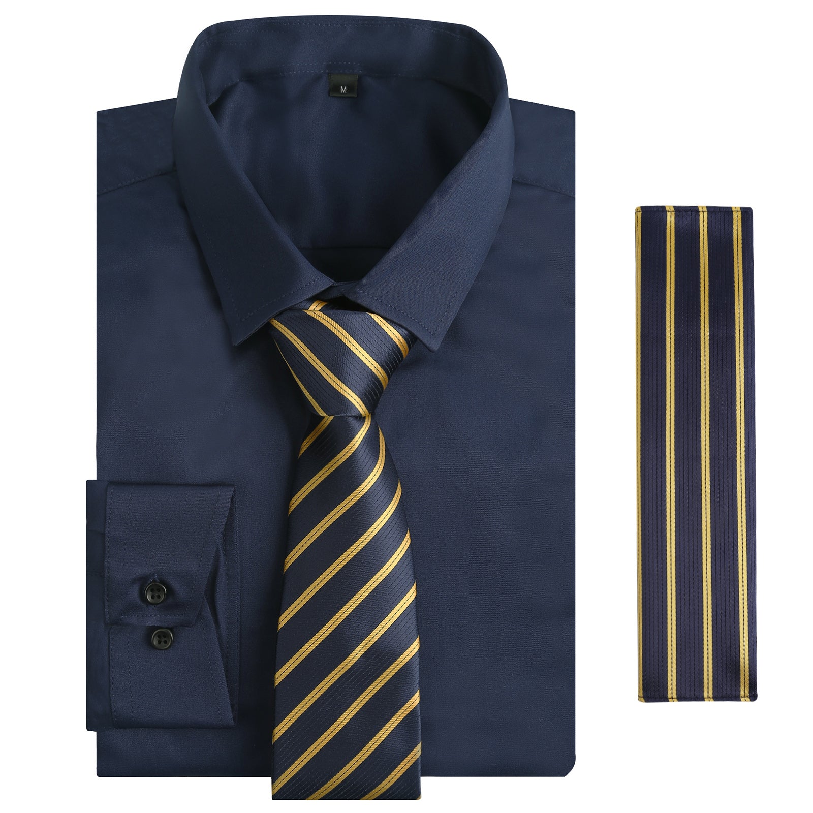 3pcs Blue Series Mens Dress Shirt with Tie Pocket Square Set