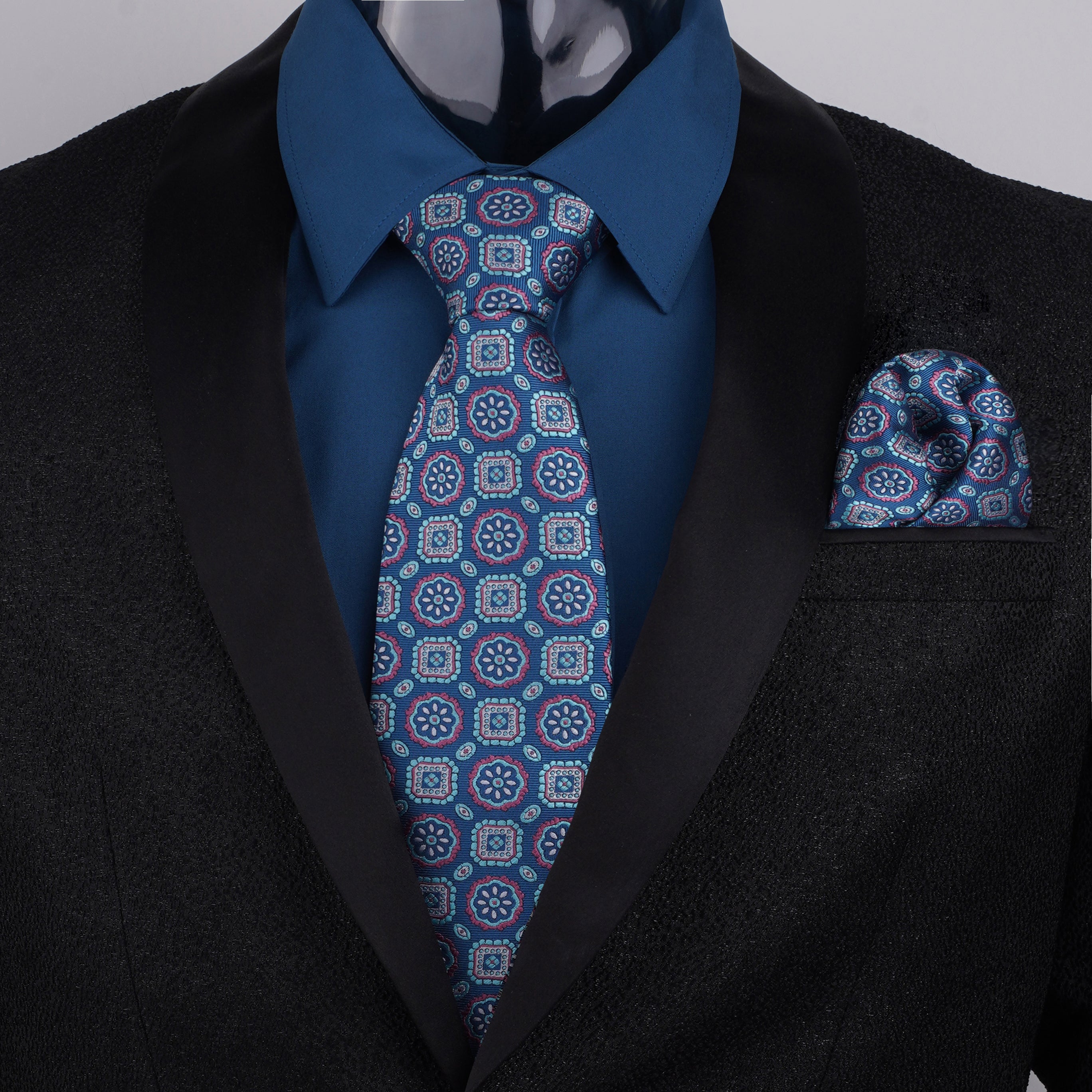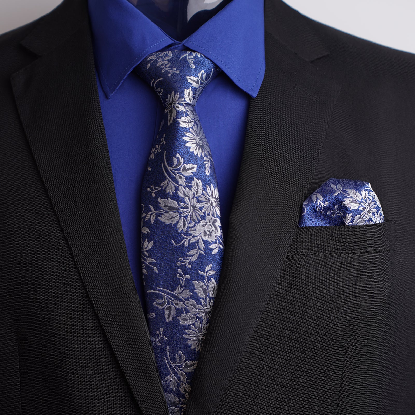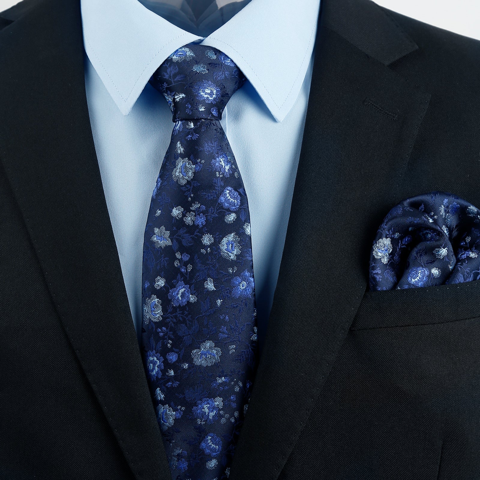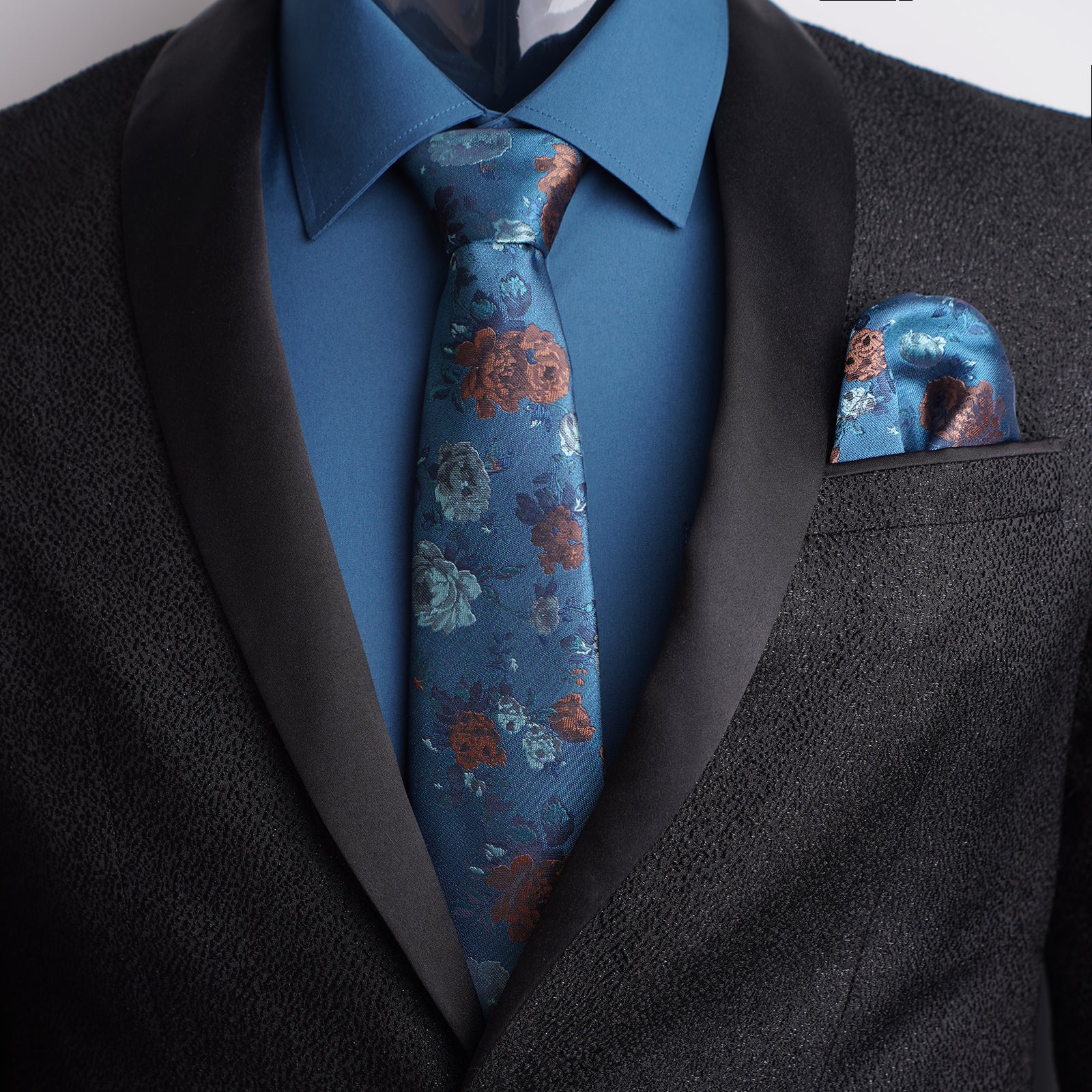 3pcs Blue Series Mens Dress Shirt with Tie Pocket Square Set