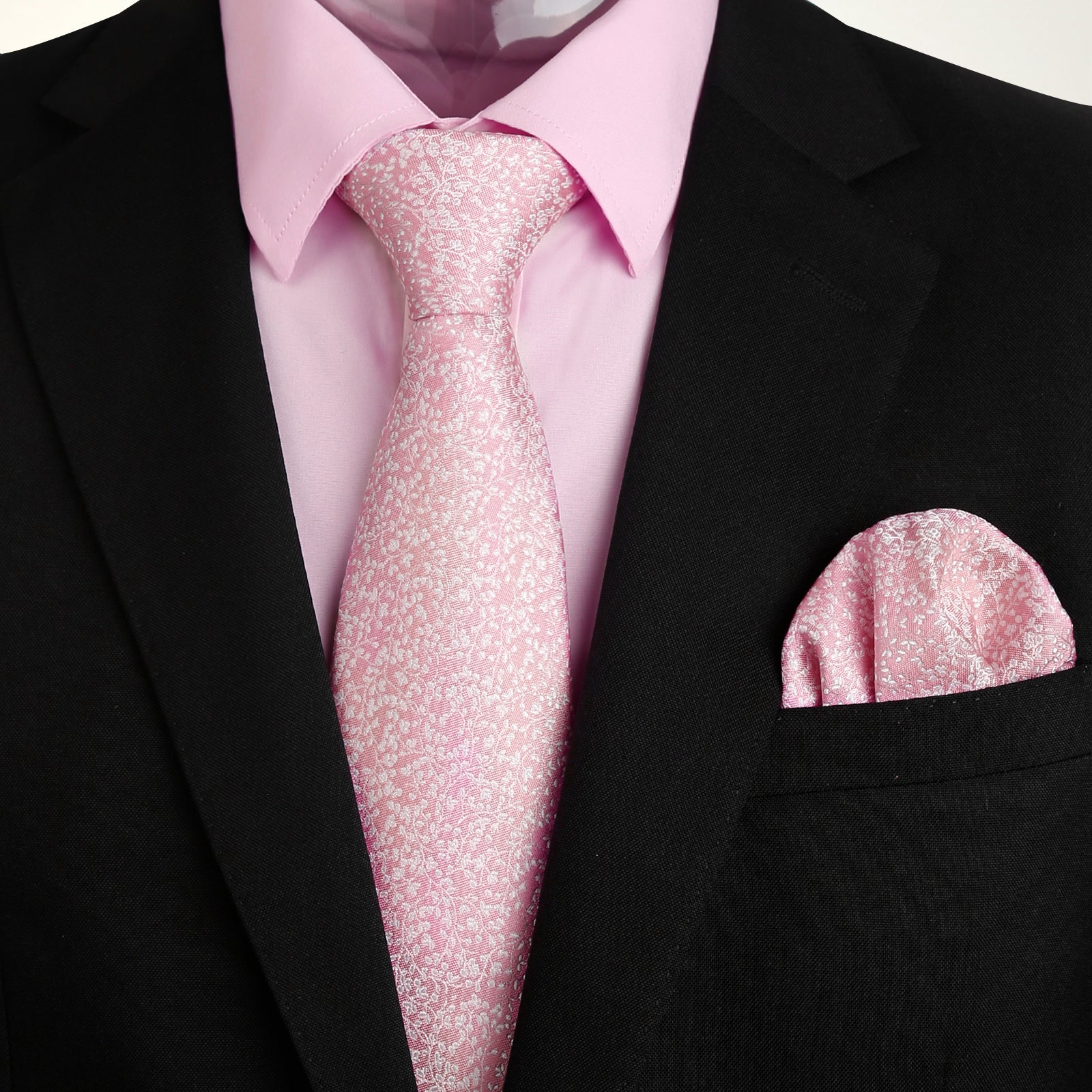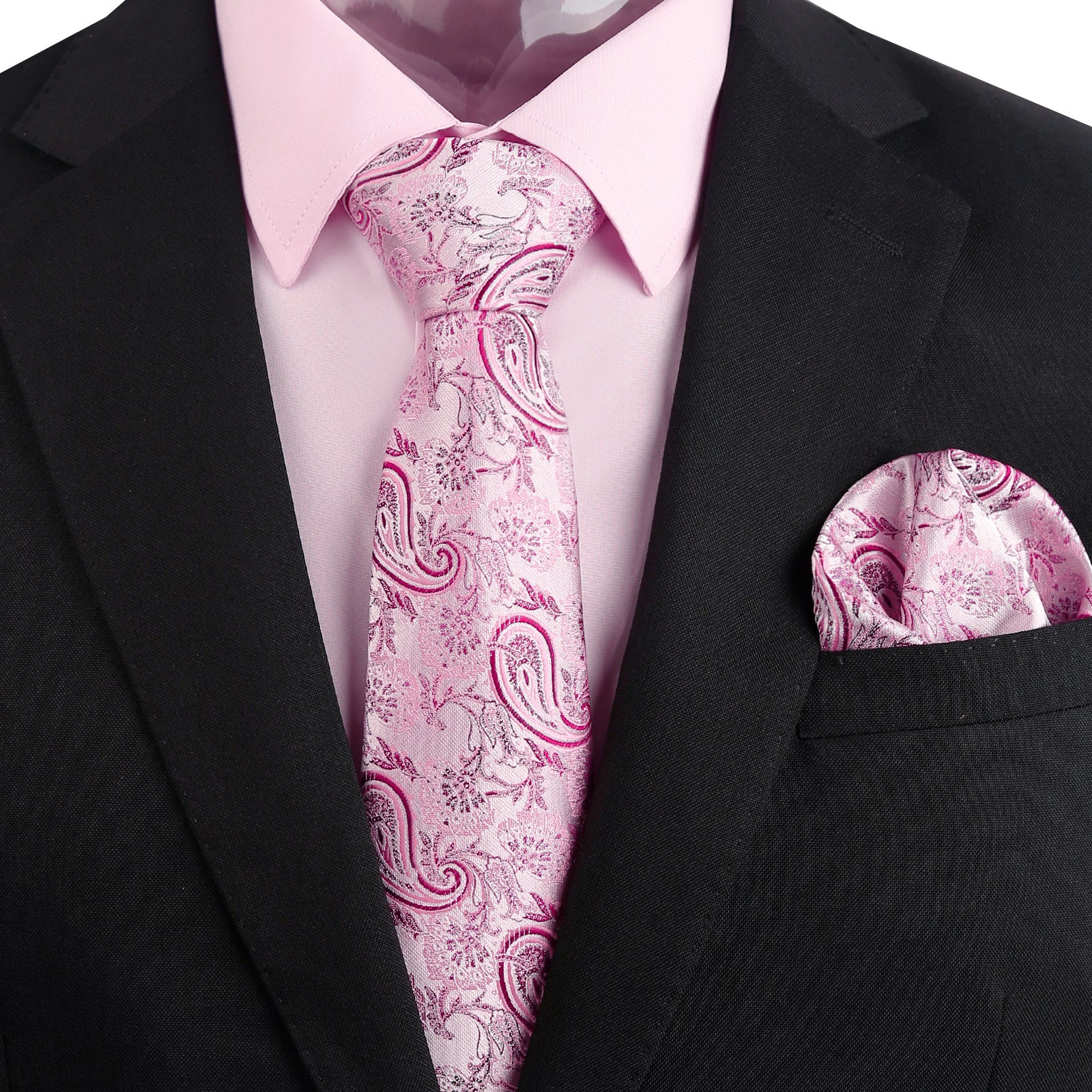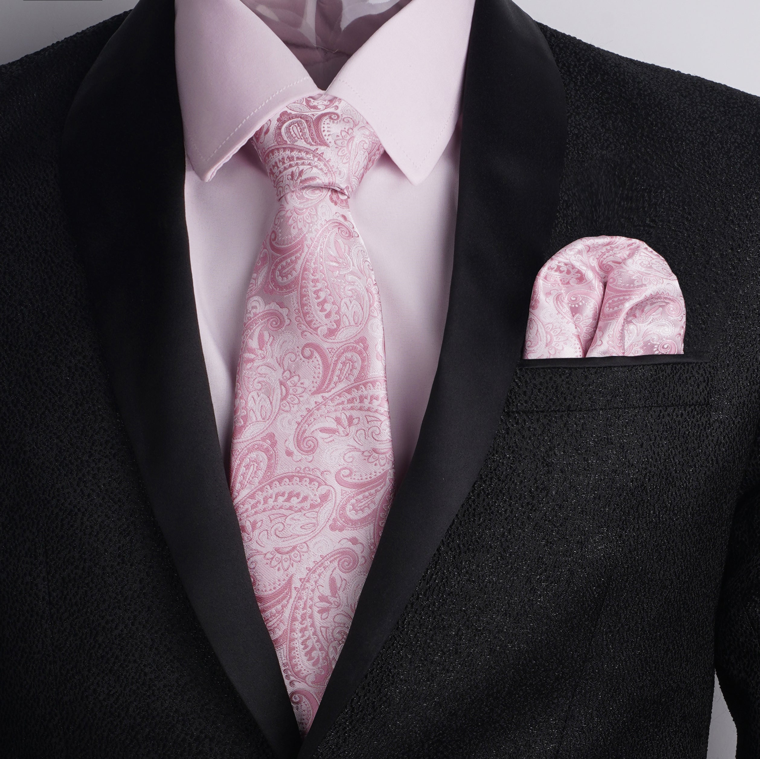 3pcs Pink Series Mens Dress Shirt with Tie Pocket Square Set