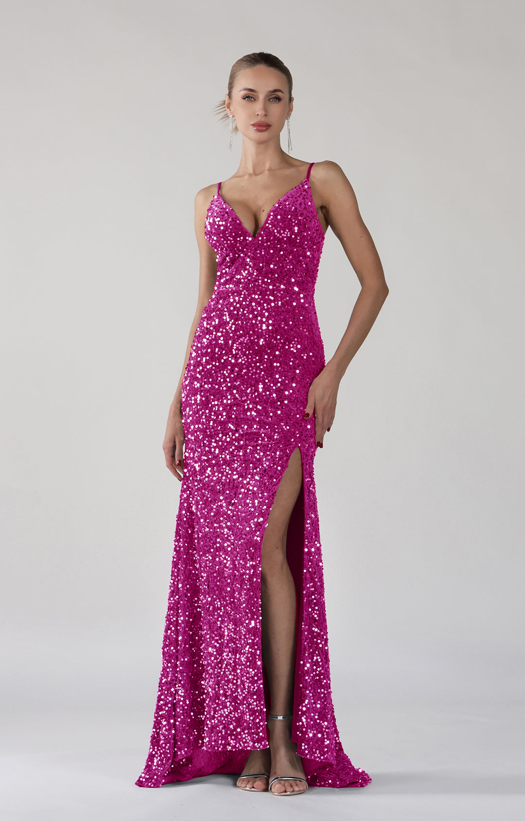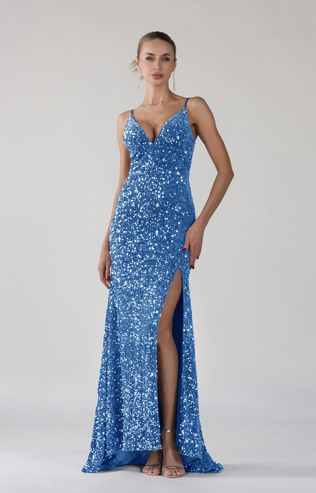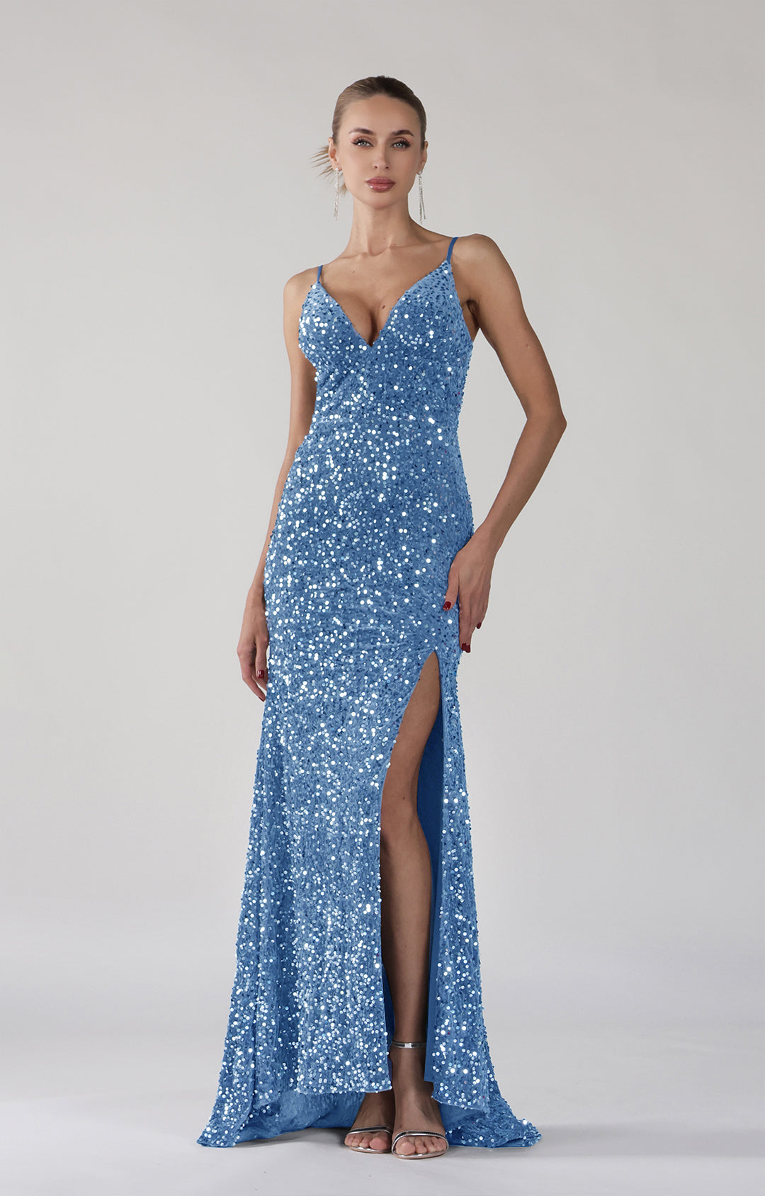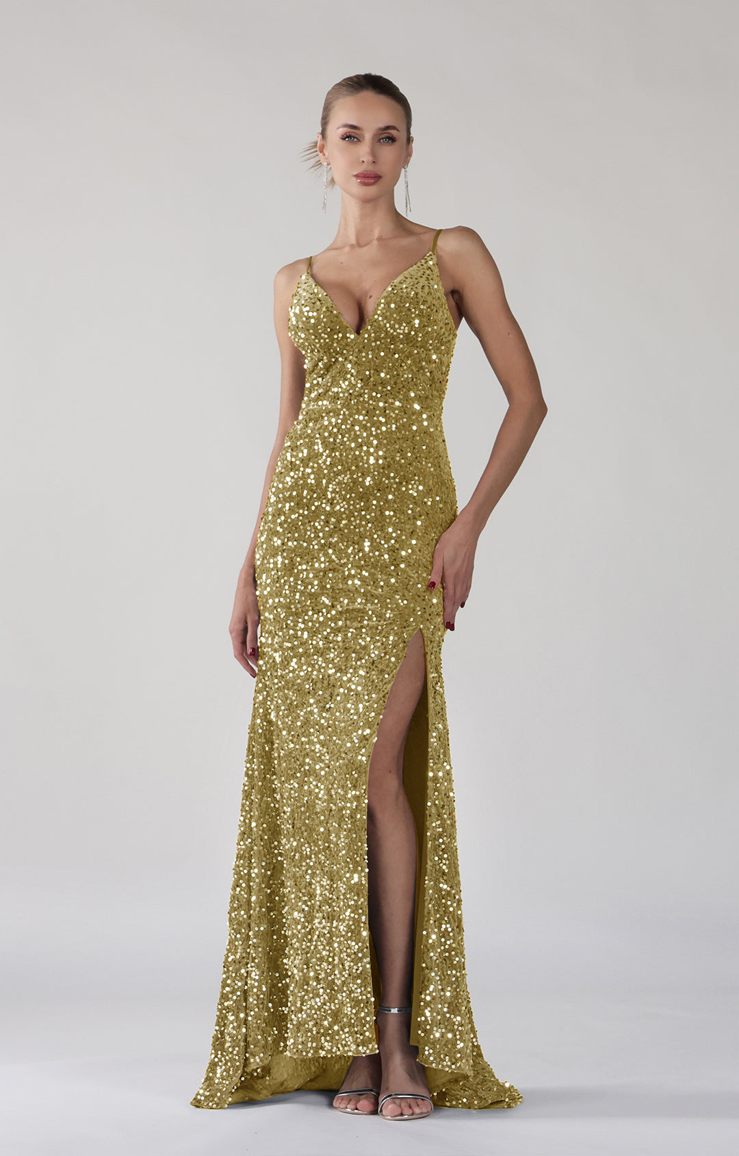 This dazzling gown is perfect for upscale events such as galas, proms, evening parties, and cocktail events. With its sparkling sequins and elegant design, it’s sure to be the center of attention at any occasion where you want to shine with confidence and style.