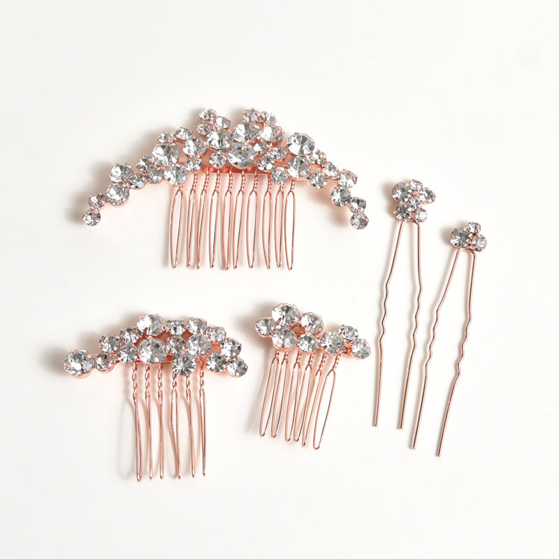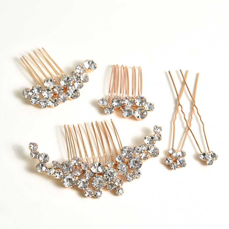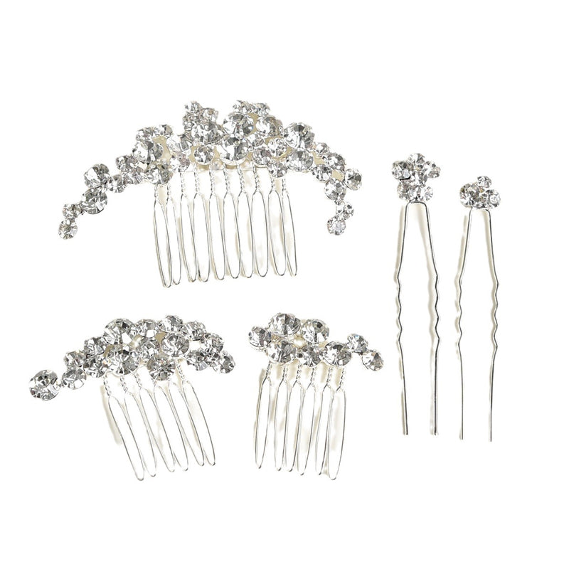 Wedding Alloy Rhinestone Hair Comb Hairpin Set