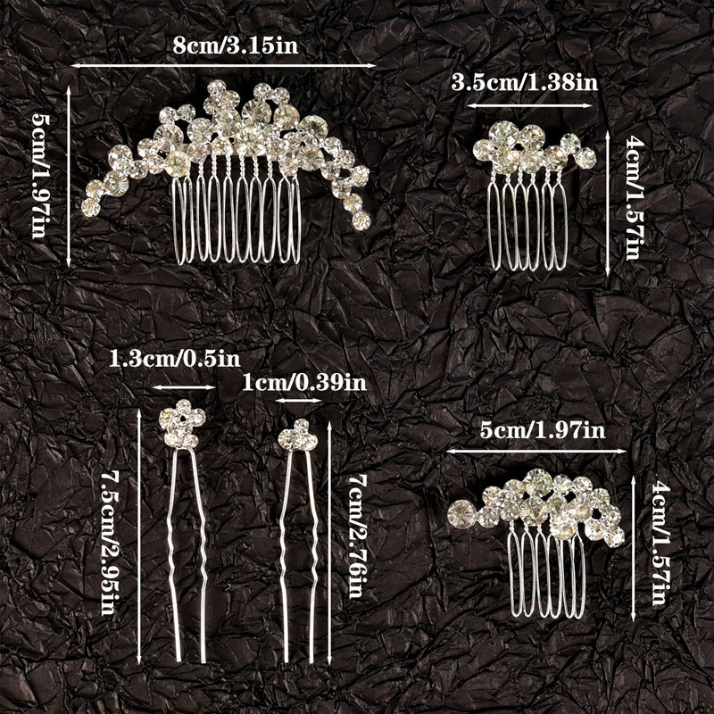 Occasions: Suitable for weddings and formal occasions. This set combines modern alloy materials with sparkling rhinestone decorations, providing the bride with an elegant and dazzling hairstyle option, adding a sense of luxury and sophistication to the overall look, and complementing the wedding atmosphere.