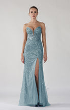 Sweetheart Neck Intricate Sequin Side Split Dresses