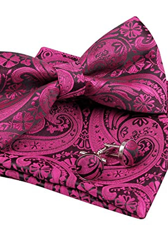 Men's Paisley Pre-tied Bow Tie, Pocket Square and Cufflinks Set-048