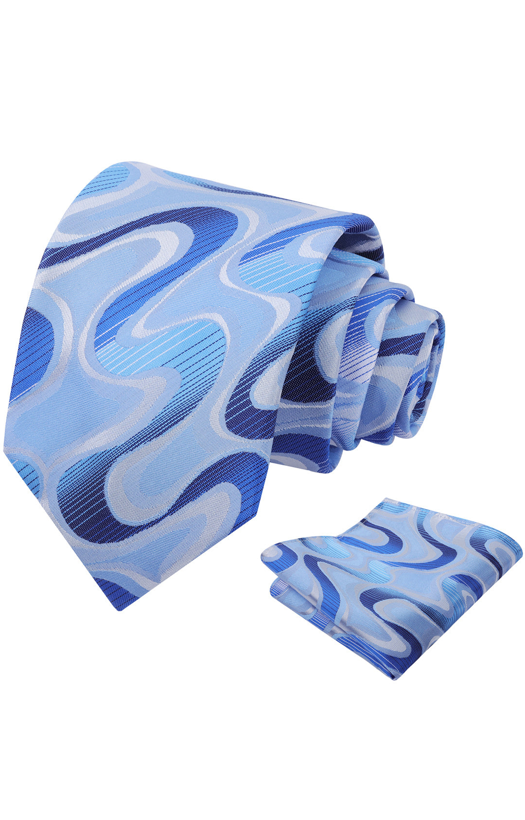 Mens 3.15inches Gradient Wave Pattern Tie Set with Pocket Square Casual Color Clash Tie Set-902