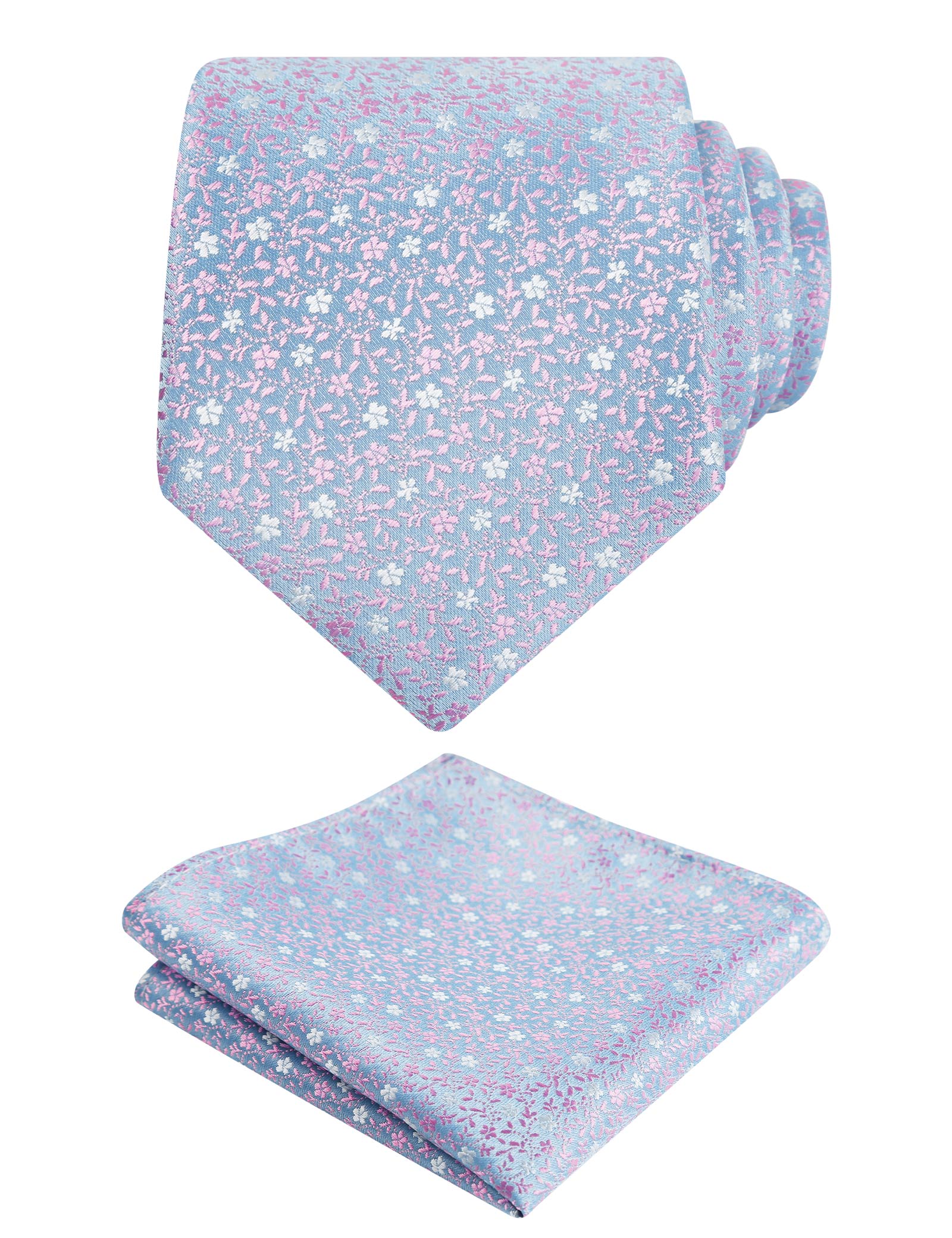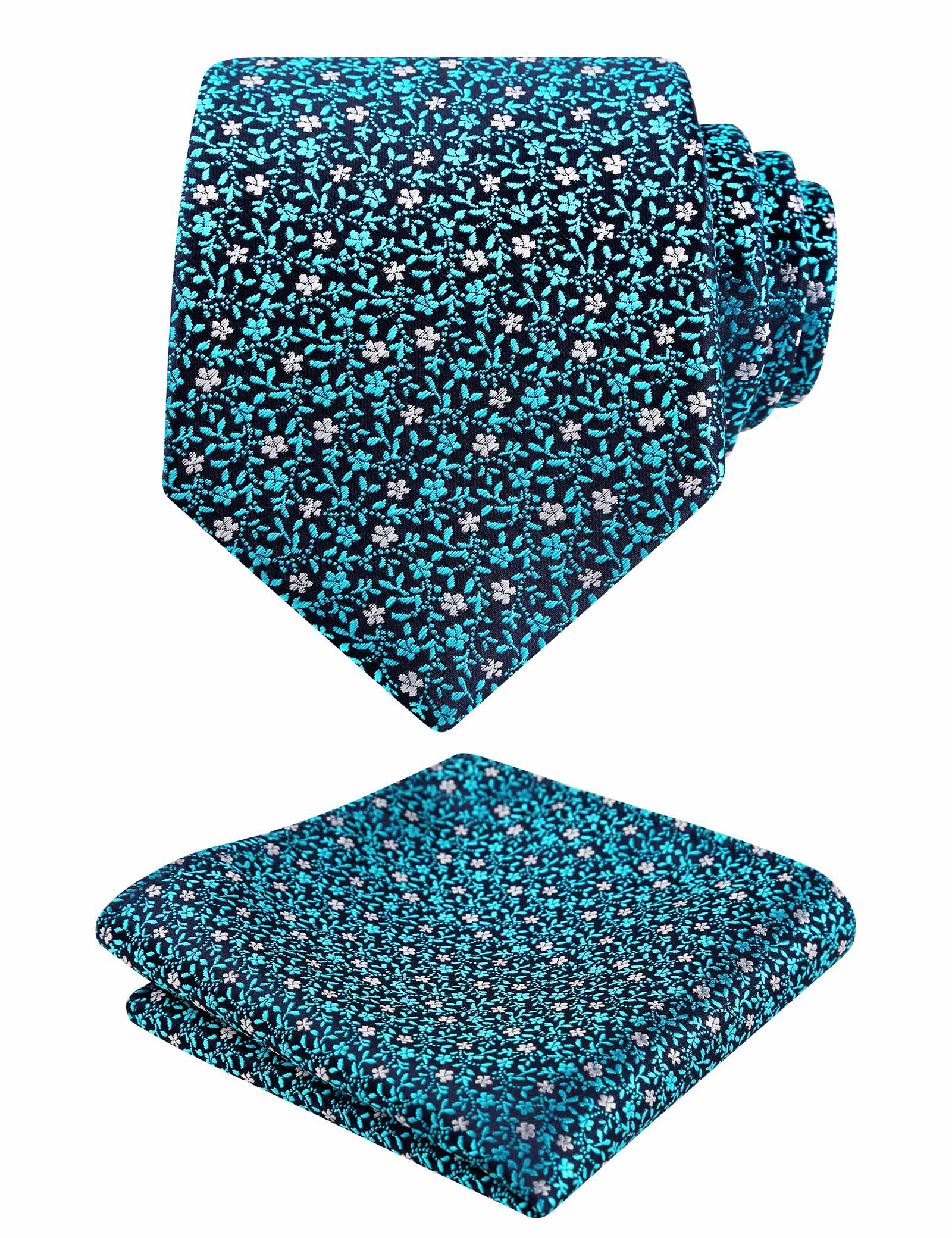 Men's 3.15'' Floral Pattern Tie with Flower Printed Pocket Square Colorful Tie Set, 152