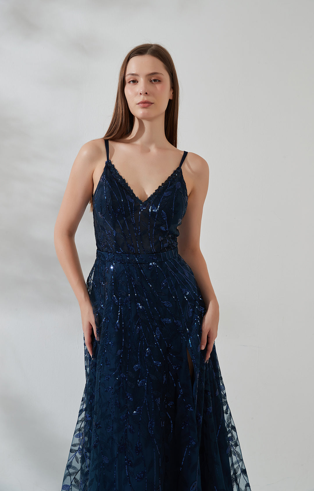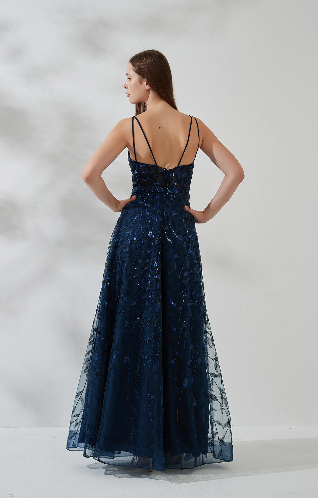 This navy floor-length gown is suitable for various formal occasions, such as weddings, dinners, proms, carpet events and formal social gatherings etc.