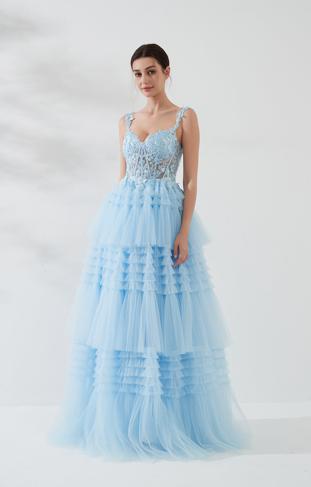 - Sweetheart Neckline with Floral Embellished Straps