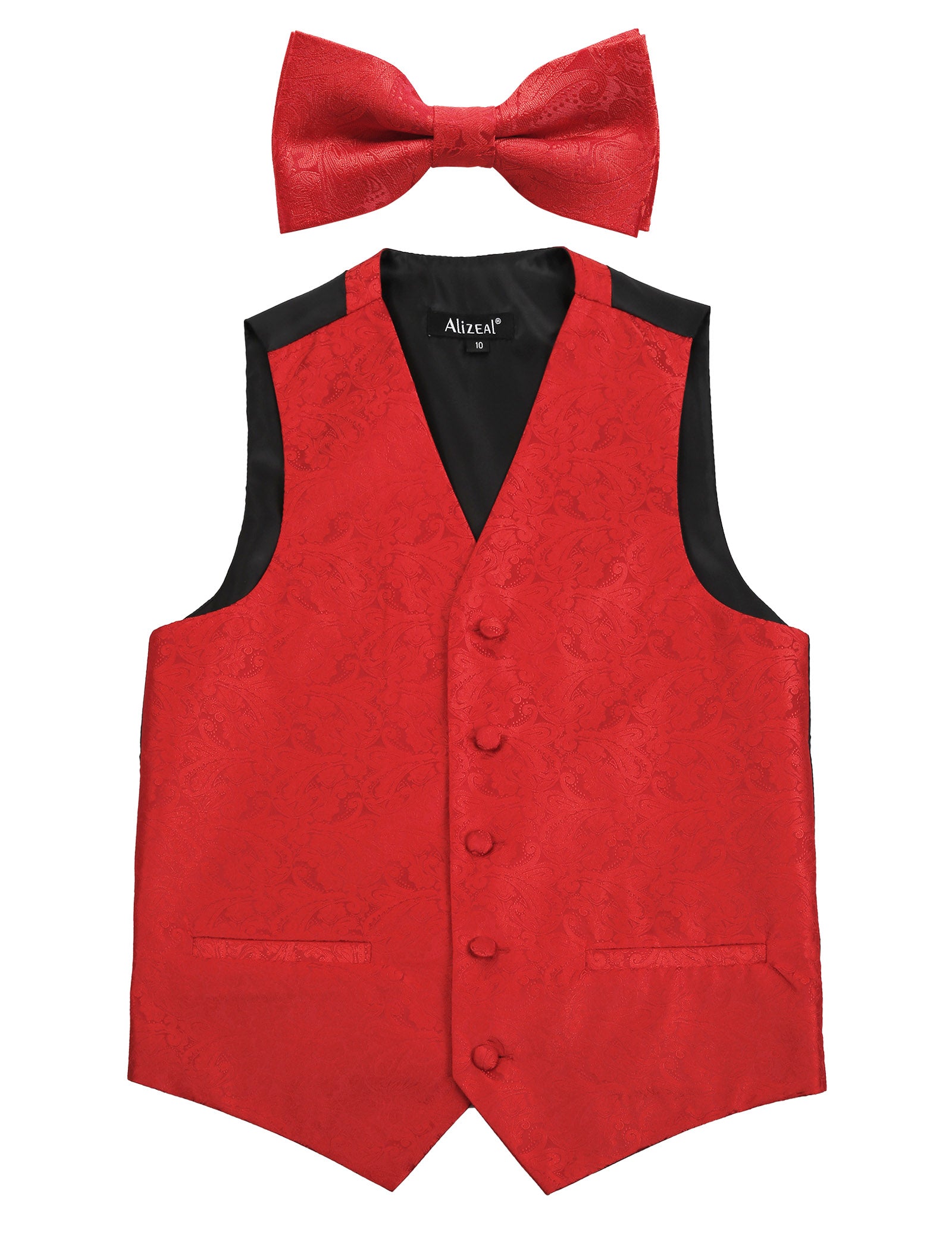 - PACKAGE: This set is for boys, not men. And the package includes a pre-tied paisley bow tie and a matched suit vest