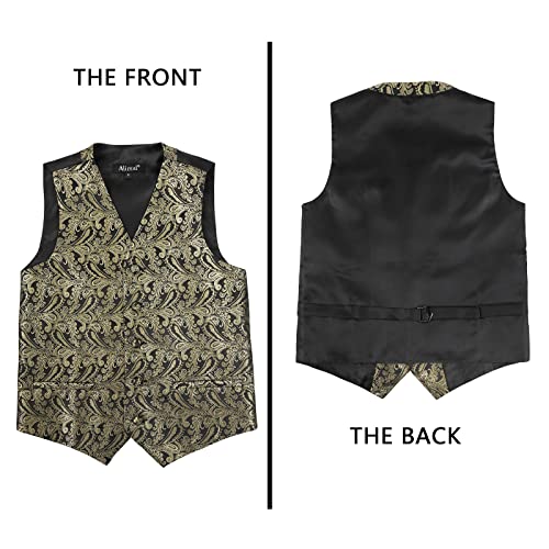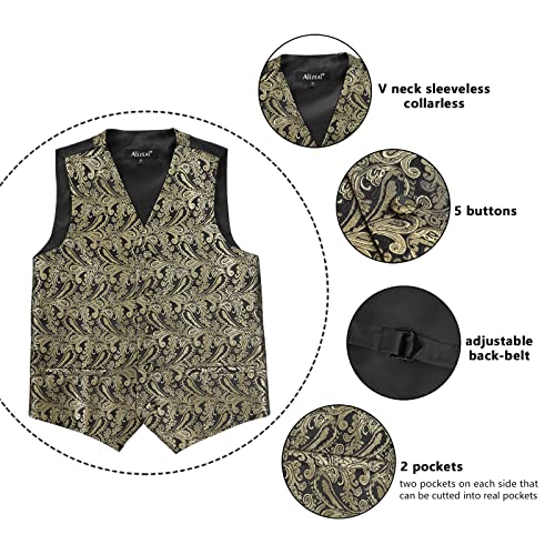 - DESIGN: The V-neck suit vest is designed with classic paisley pattern, 5 colored buttons and adjustable back buckle strap. Attention: Two pockets on each side can be cut into real pockets