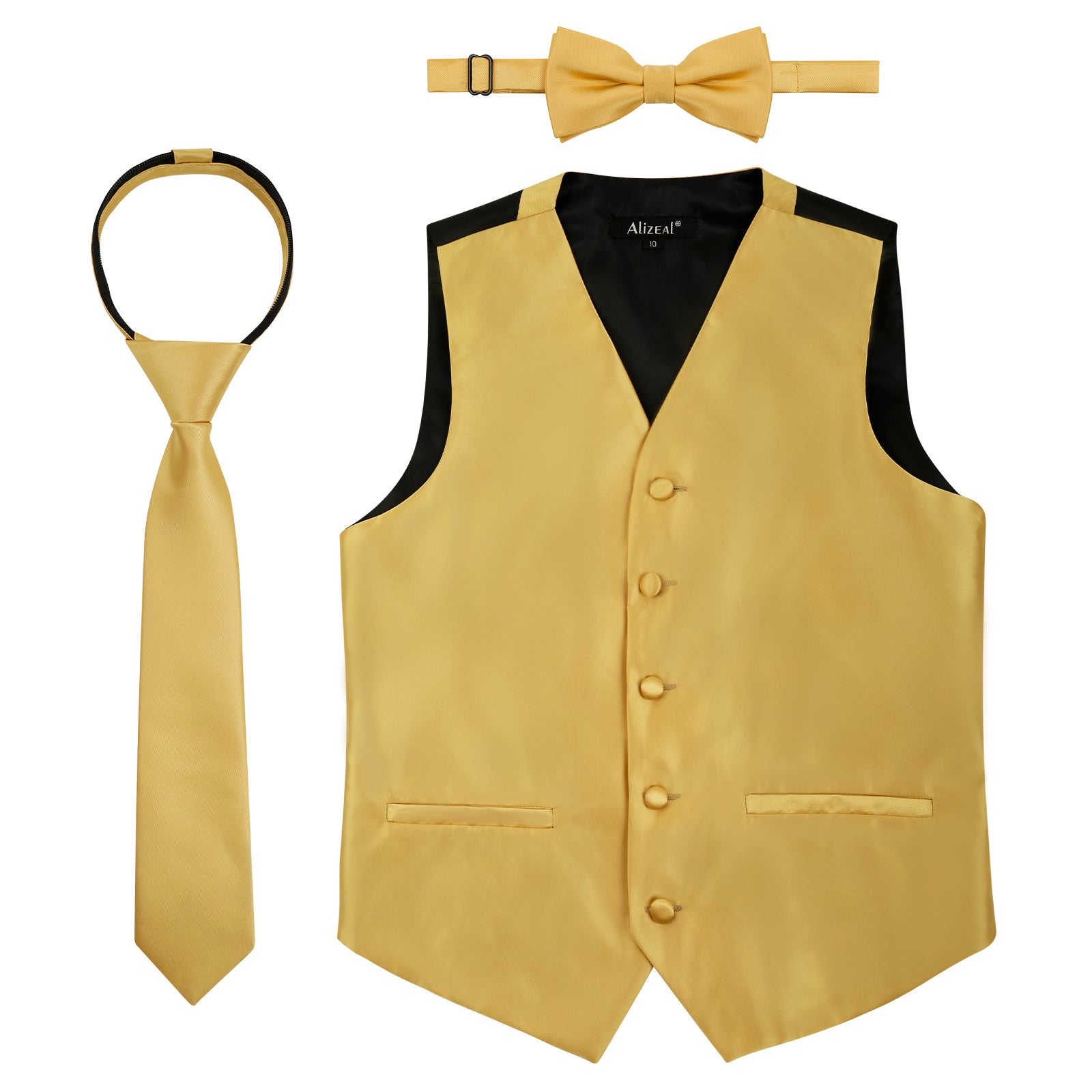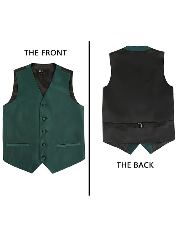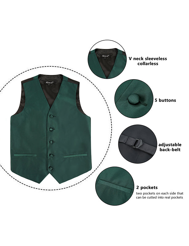 - DESIGN: The V-neck suit vest is designed with classic soild color, with two pockets on each side that can be cut into real ones. Zip up to tighten the necktie, very convenient design. Pre-tied boys bow ties with adjustable band collar are especially prepared for boys who are not familiar with how to tie or busy ones with much more works to deal with