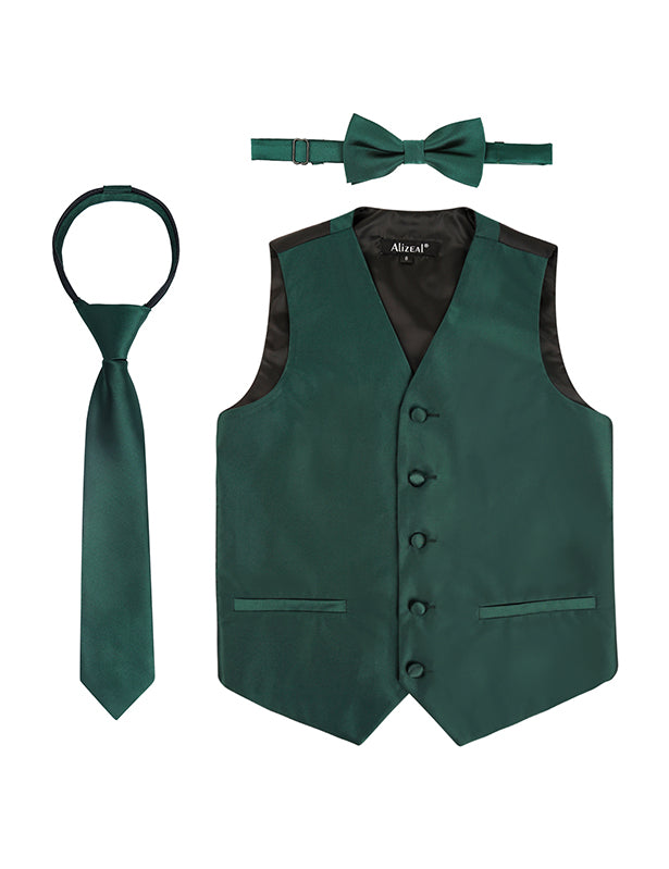 Boy's Classic Solid Bow Tie, Necktie and Suit Vest Set