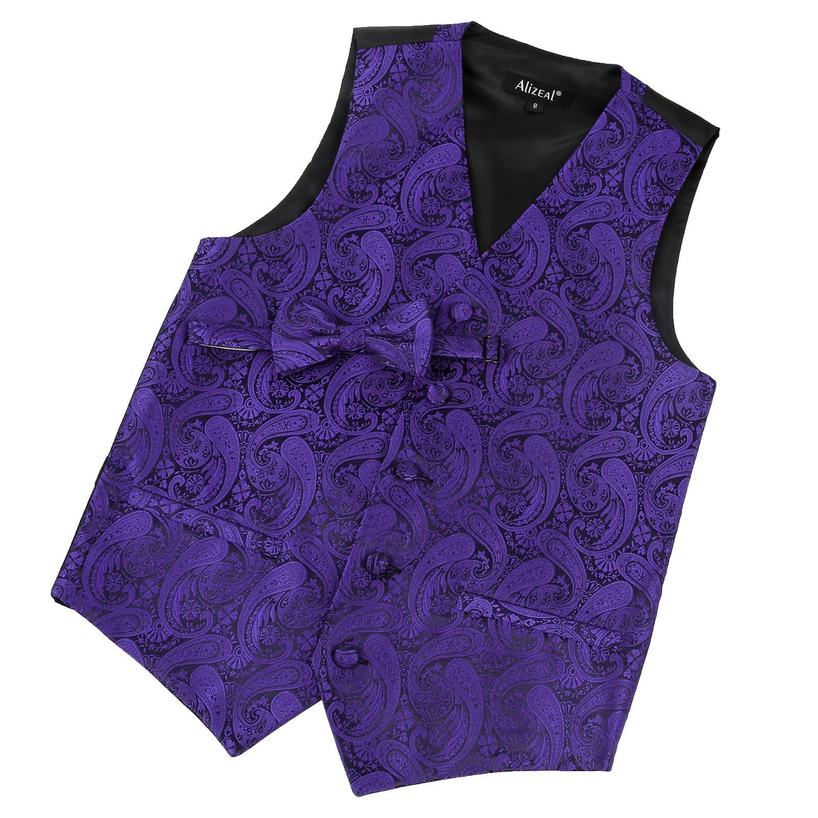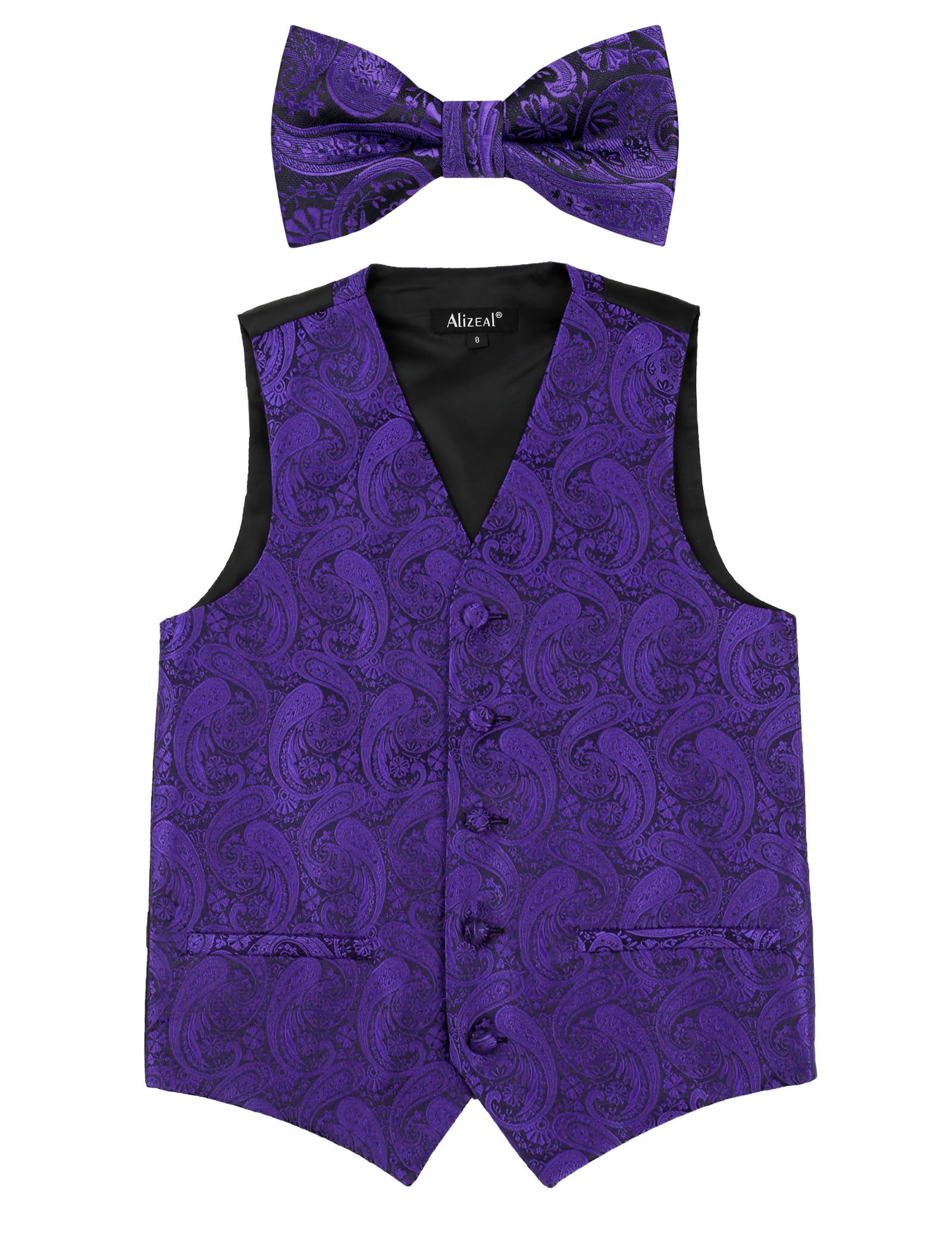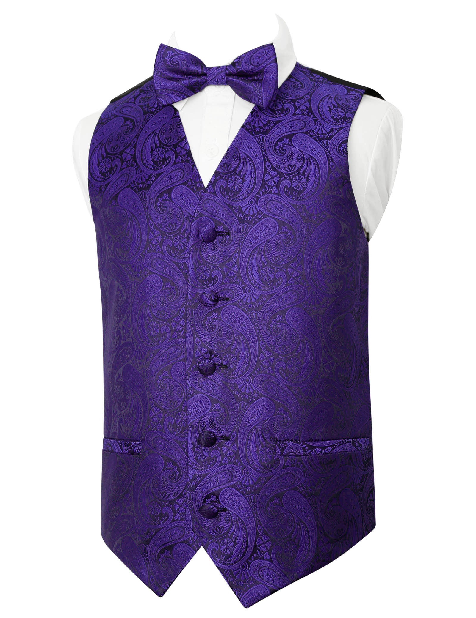 Boy's Paisley Jacquard Pre-Tied Bow Tie with Classic Floral Dress Suit Vest Set, 077-Dark Purple