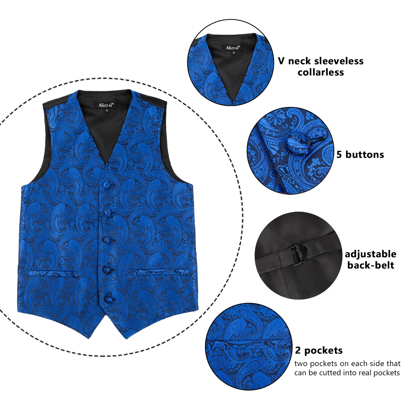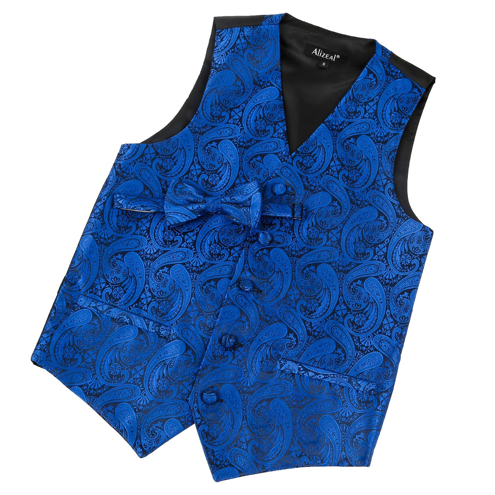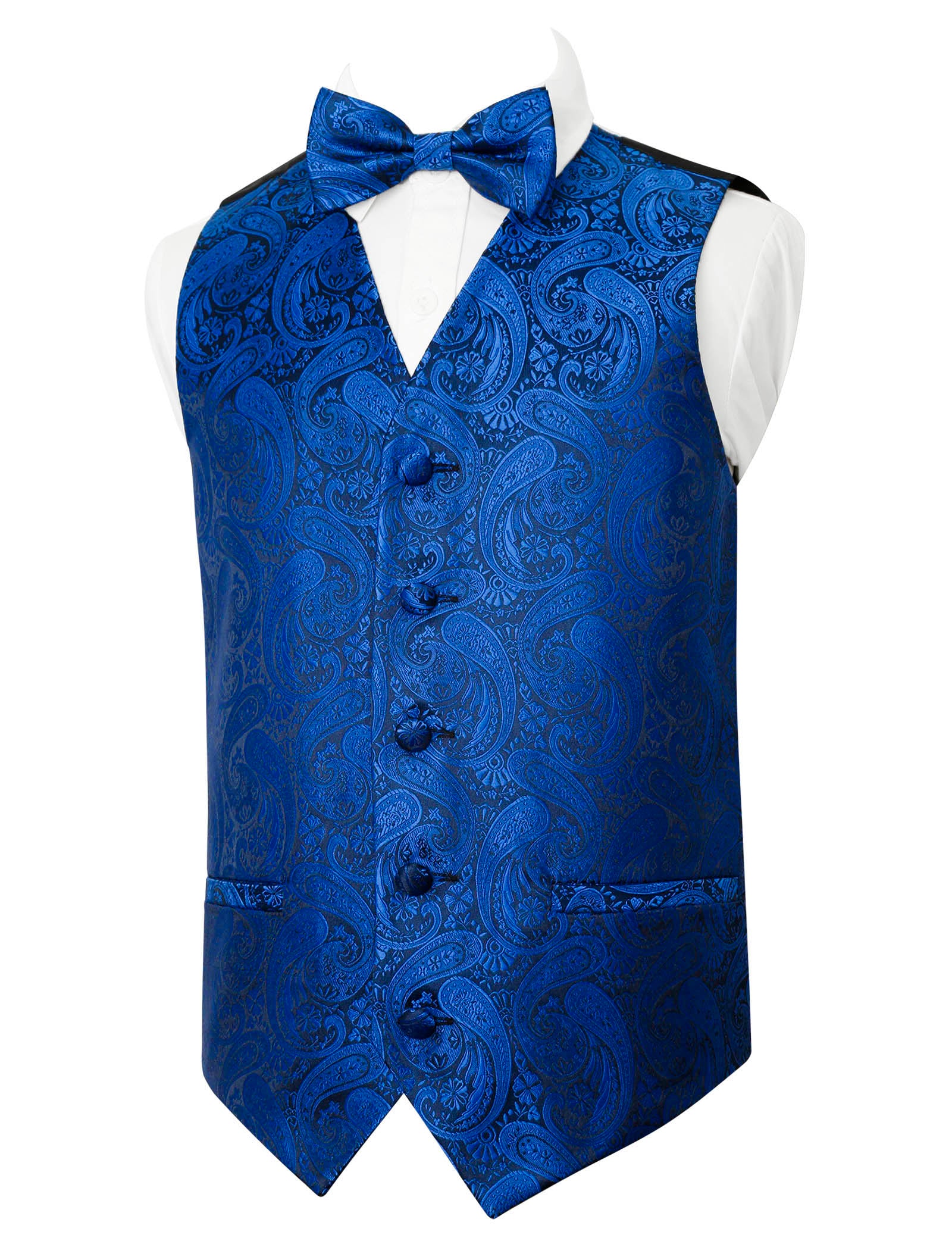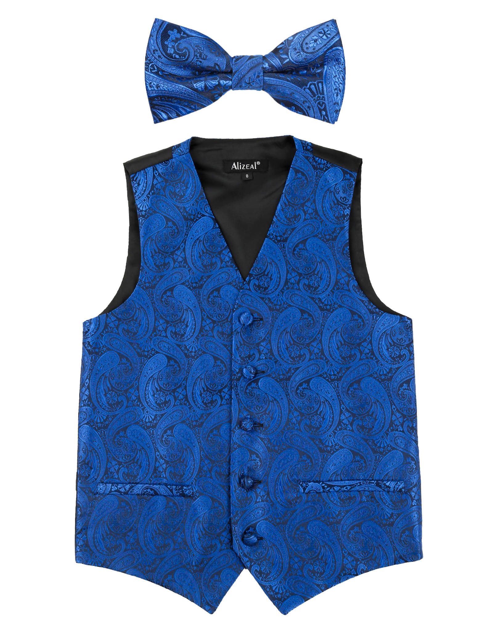 Boy's Paisley Jacquard Pre-Tied Bow Tie with Classic Floral Dress Suit Vest Set, 077-Royal Blue