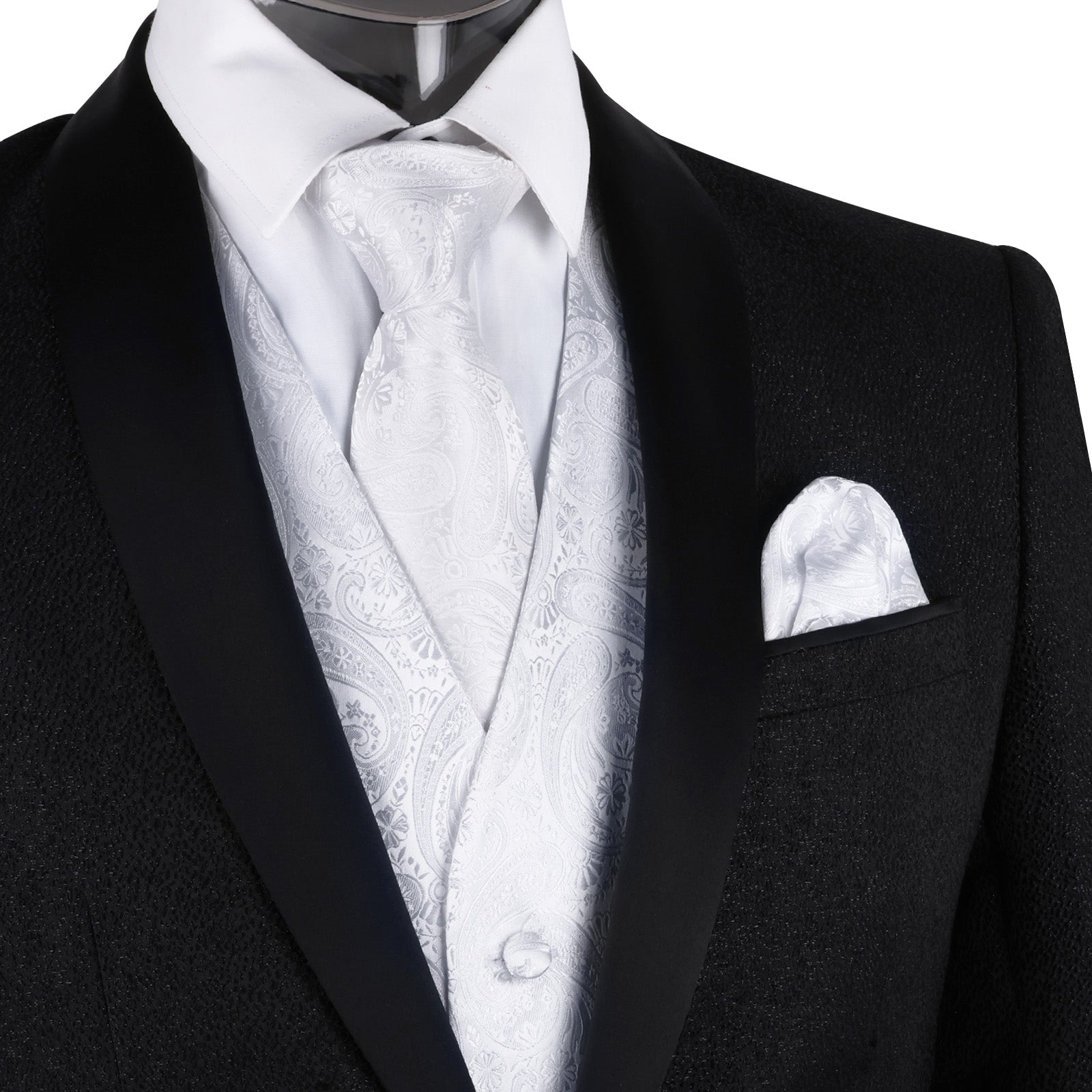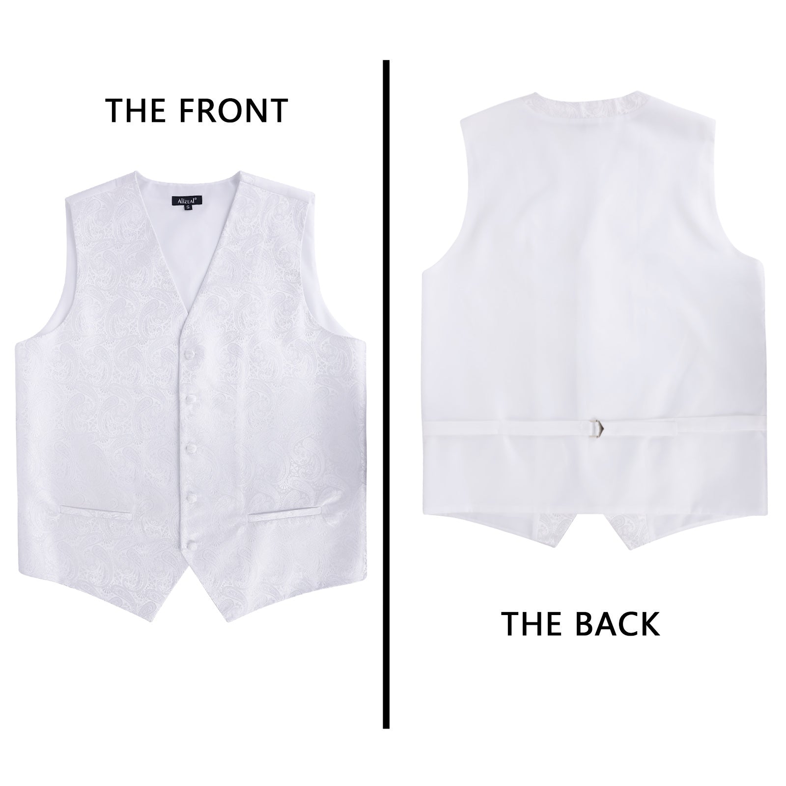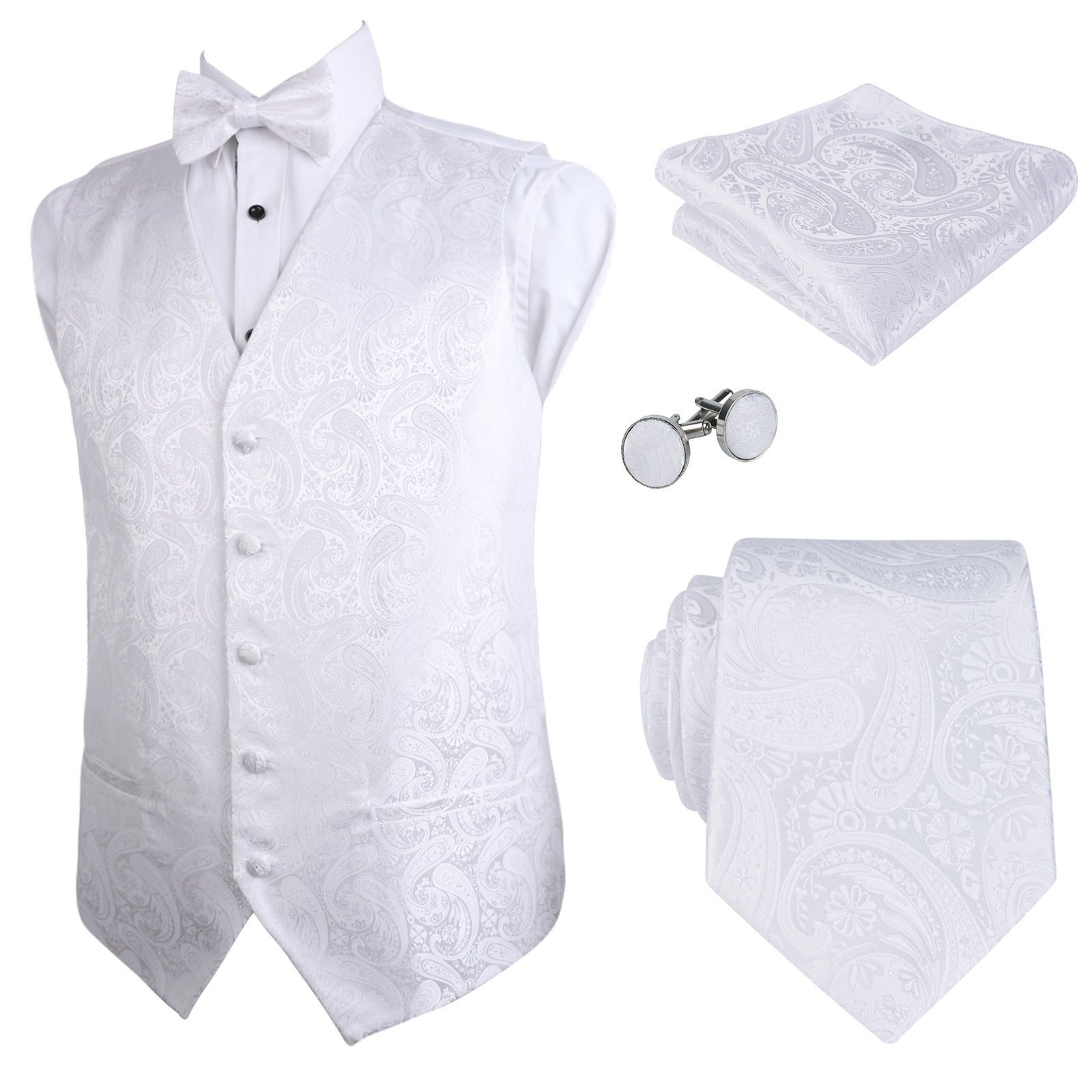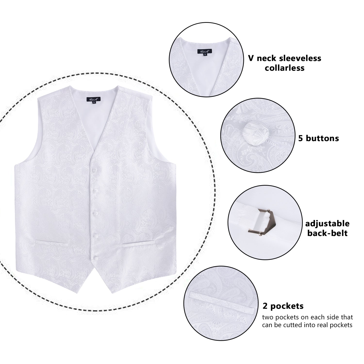 Men's 5pcs Paisley Suit Vest Classic Jacquard Button-Down Waistcoat Set, 185-White