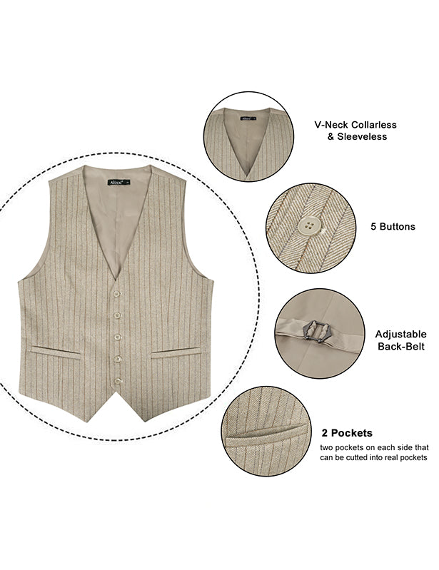 Mens Plaid Tweed Business Suit Vest Regular Fit Tuxedo Waistcoat