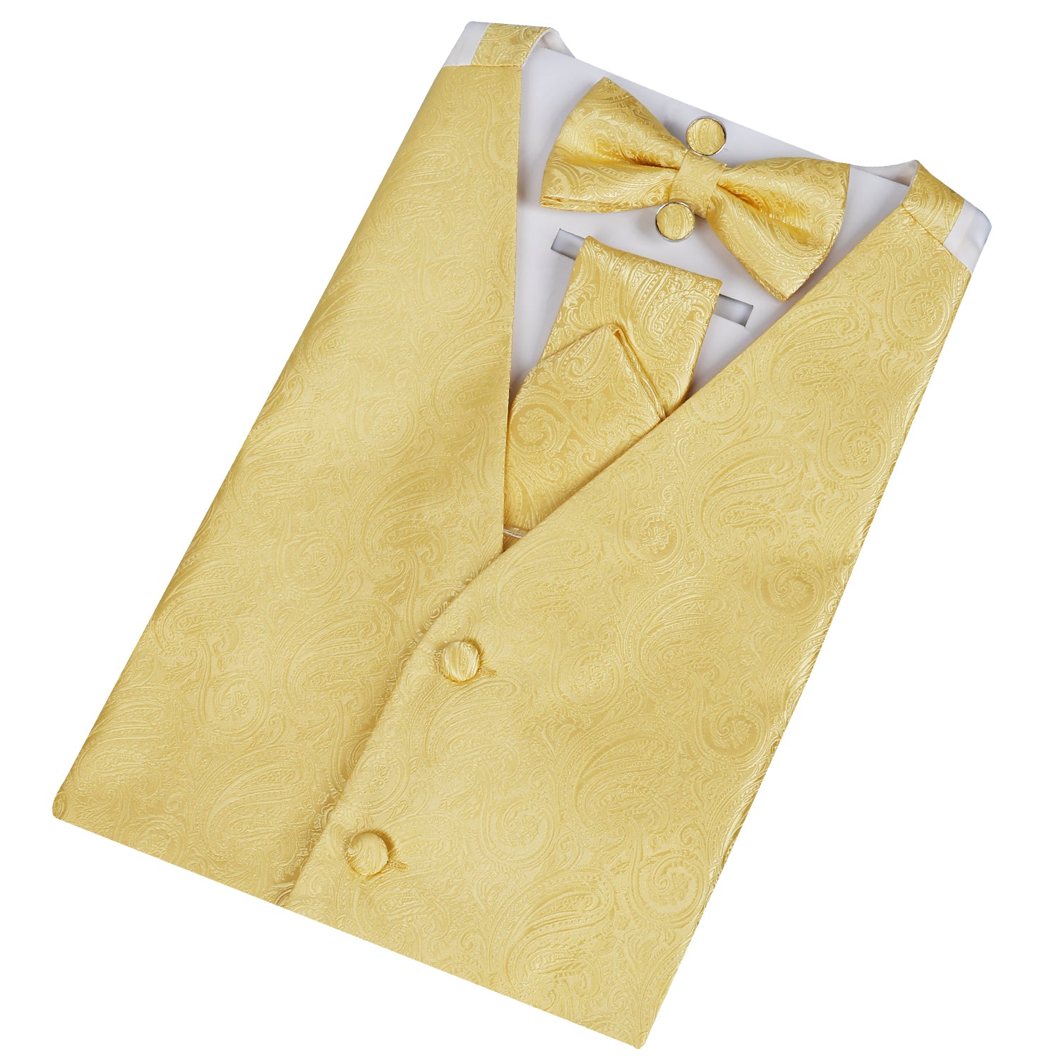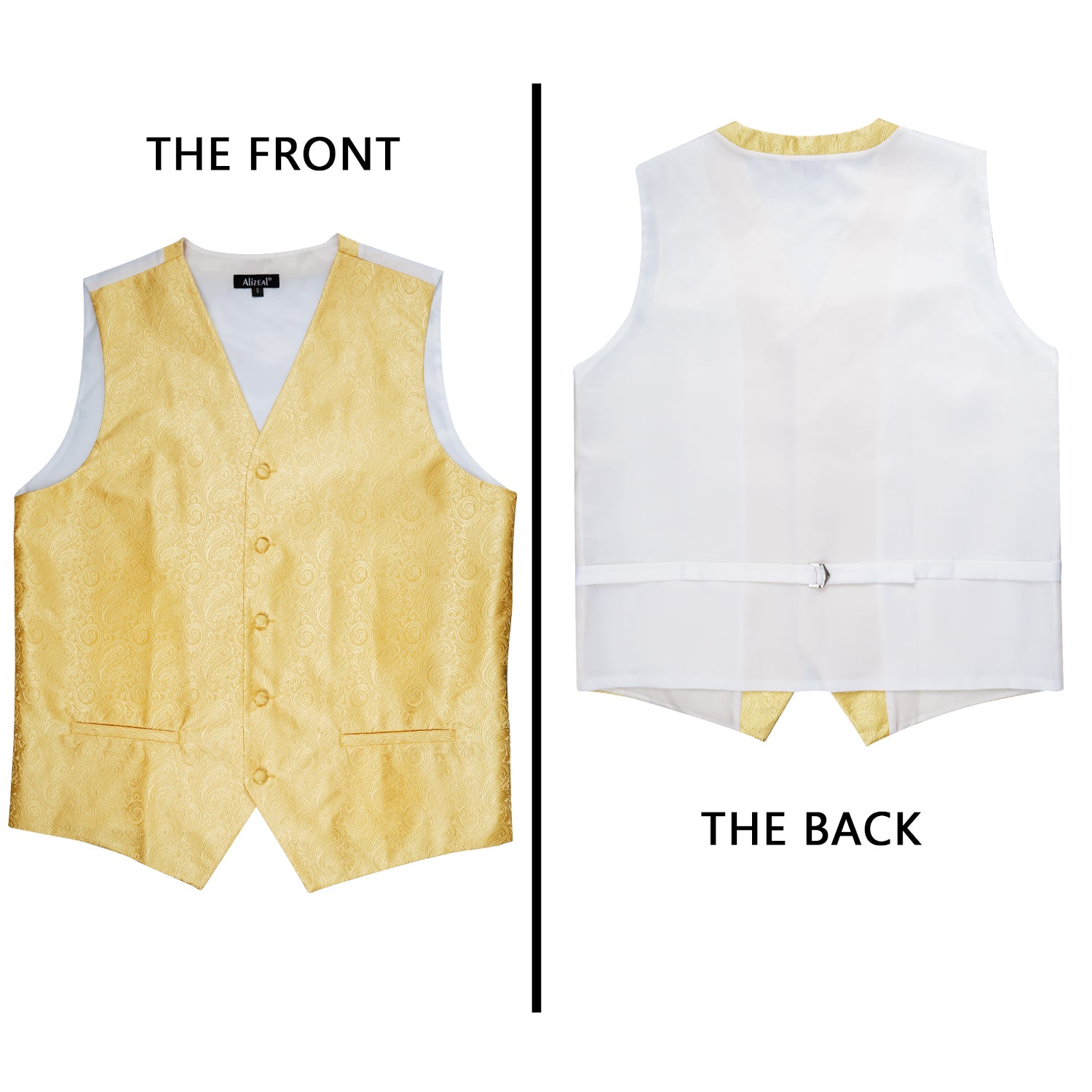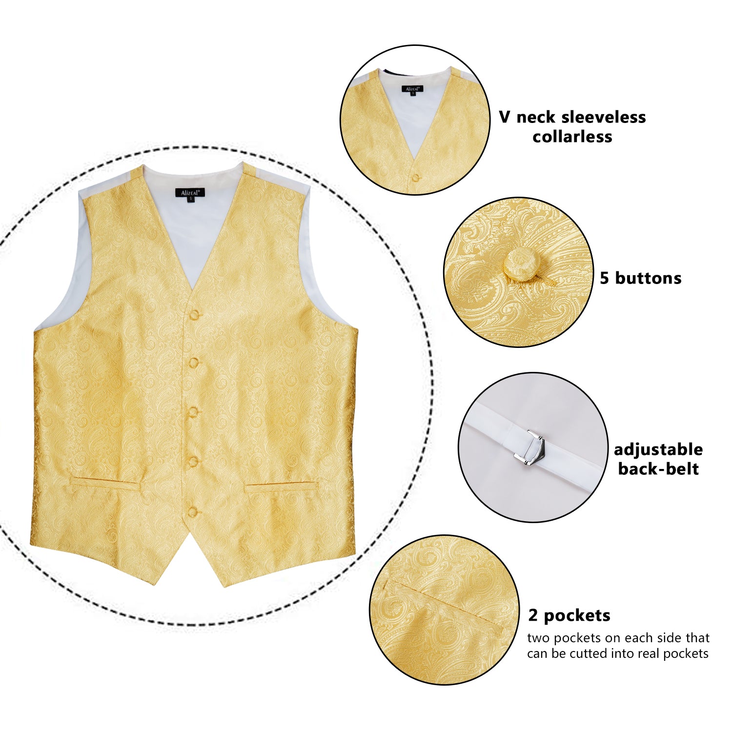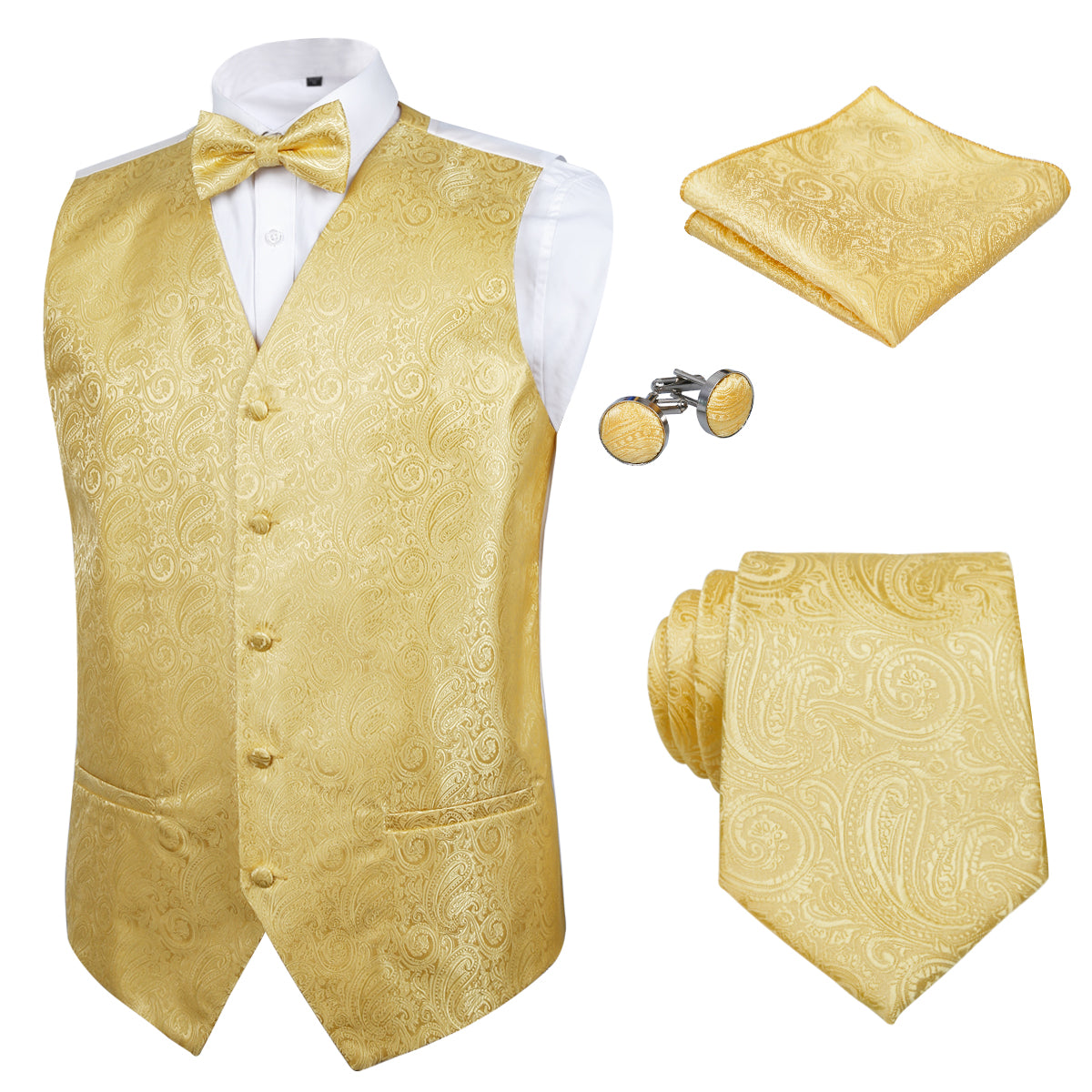 Men's Classic 5 Pcs Paisley Jacquard Suit Vest Set, 189-Golden
