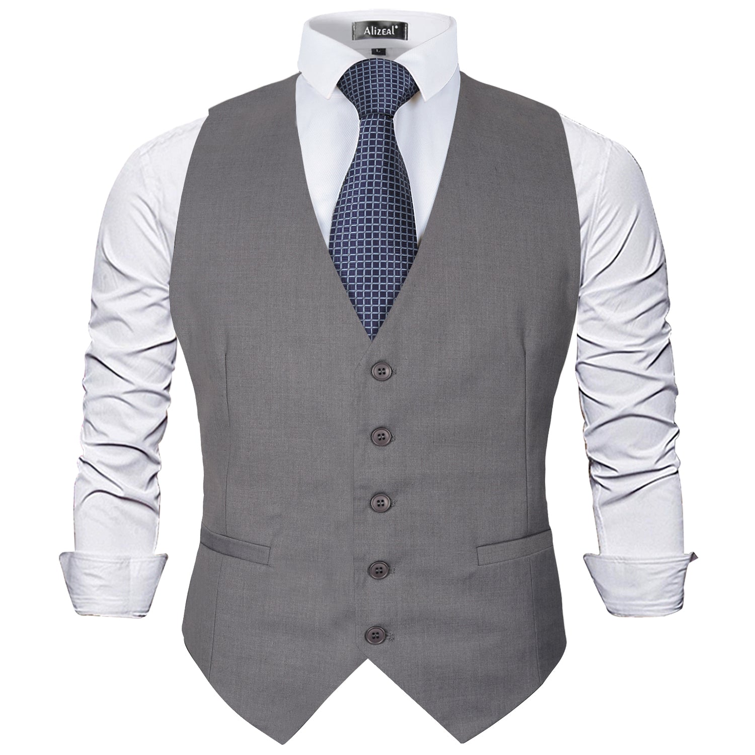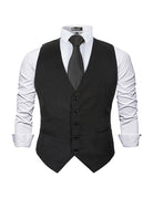 Men's Classic Solid Color Formal Business Suit Vest Regular Fit Waistcoat with 5 Buttons