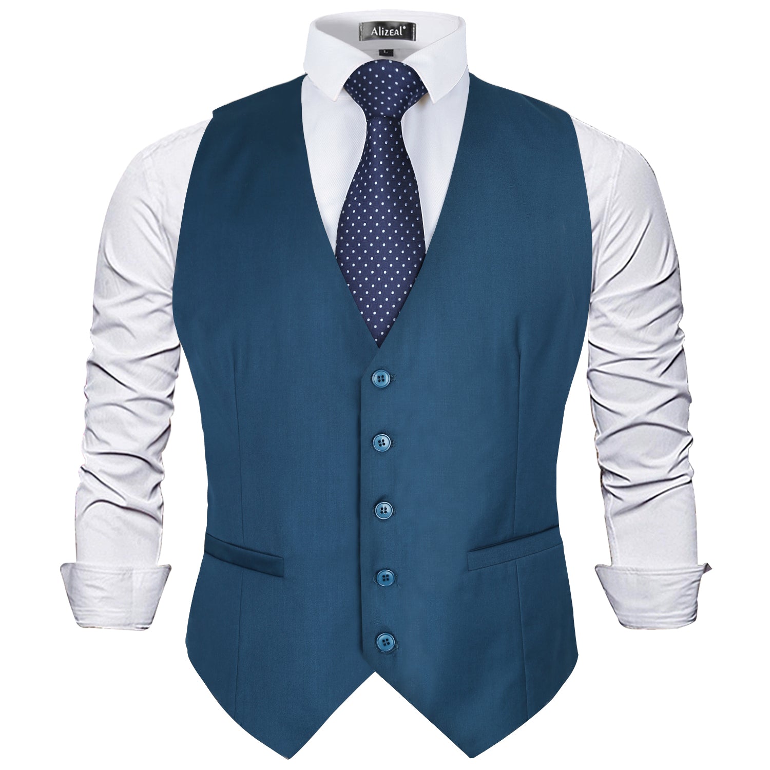- DESIGN: classic solid color, V-neck Collar, 5 buttons and adjustable back buckle strap; two pockets on each side can be cut into real pockets