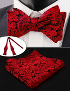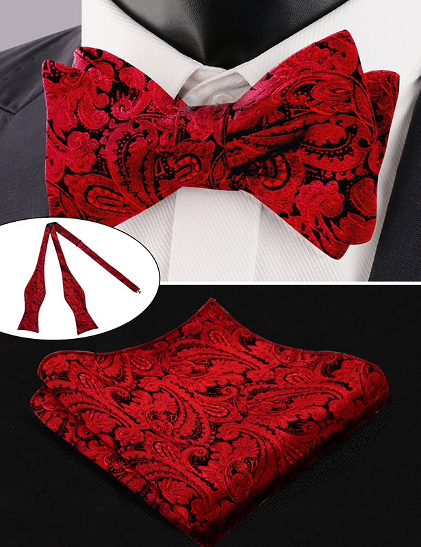 - CONTENT: A paisley waistcoat, a necktie, a self-tied (you need to tie it by yourself, not pre-tied) bow tie and a pocket square